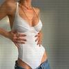 Estilo Europeo y Americano Moda Casual Americana Elegante Verano para Mujer Sexy Cuello en V Profundo Ajustado Mono Top de Tirantes