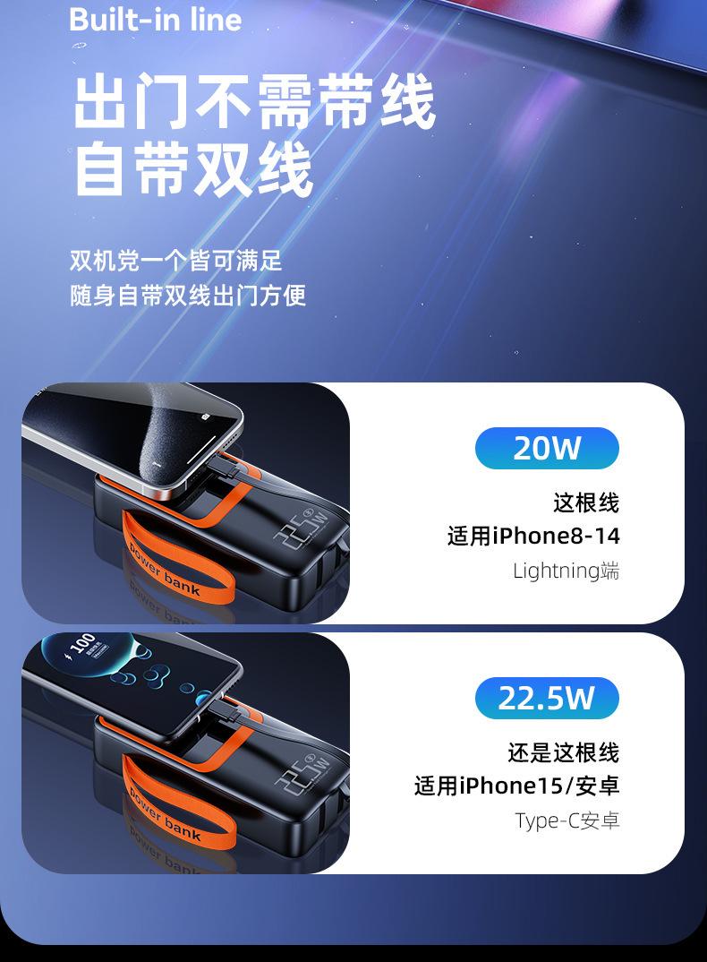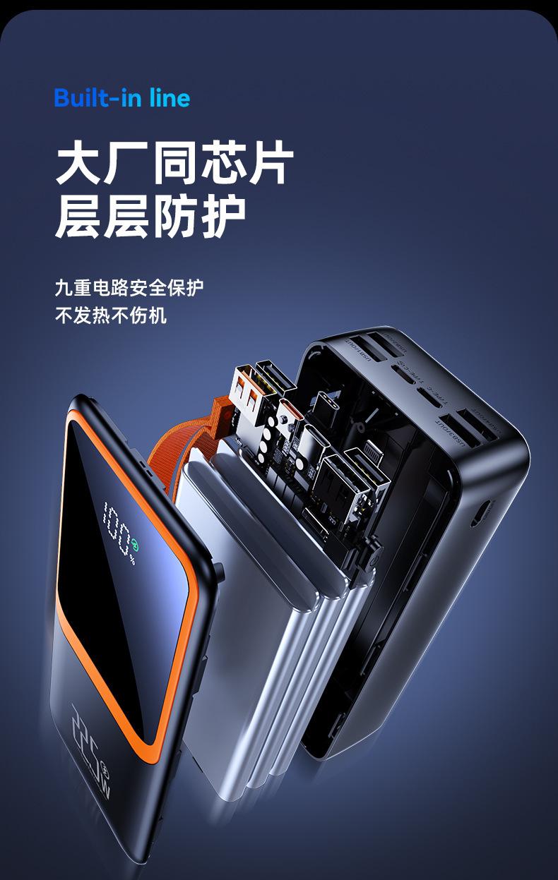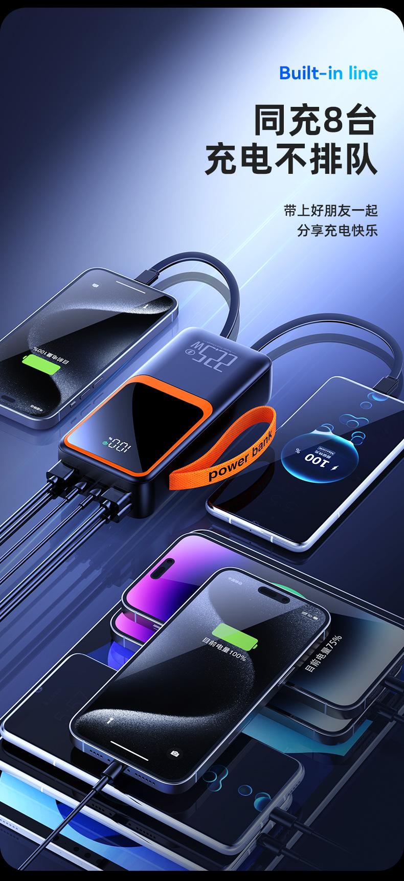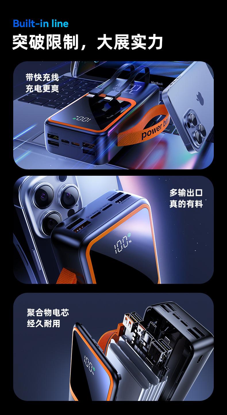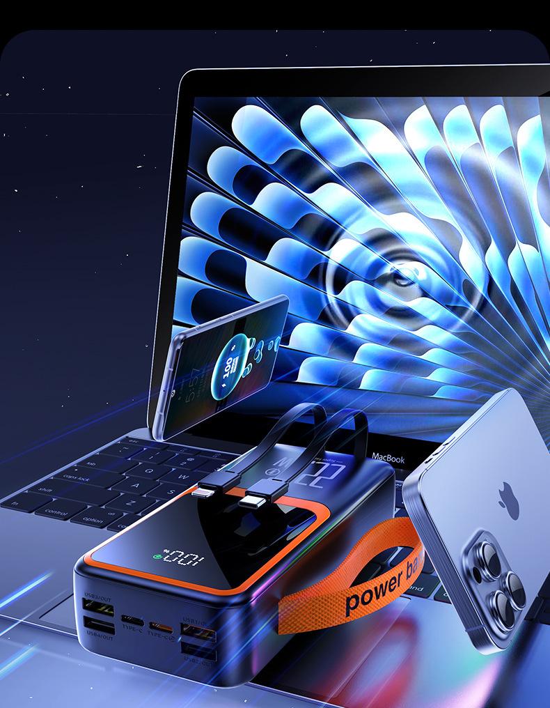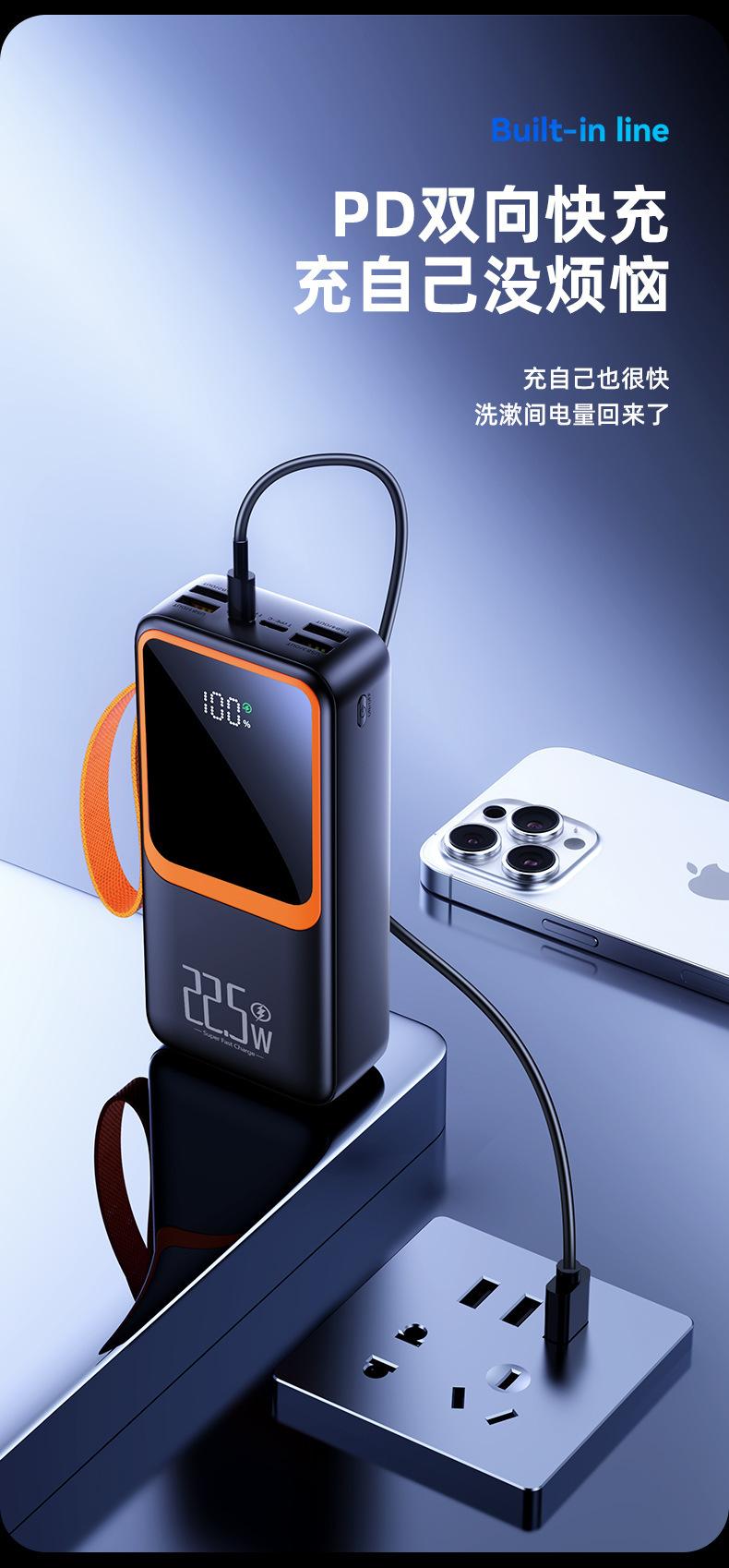 Batería Externa Certificada 3C con Capacidad Súper Grande y Cable Integrado para Transmisión en Vivo con Estilo de Camping al Aire Libre, Fuente de Alimentación Móvil Personalizada de 50000 mAh