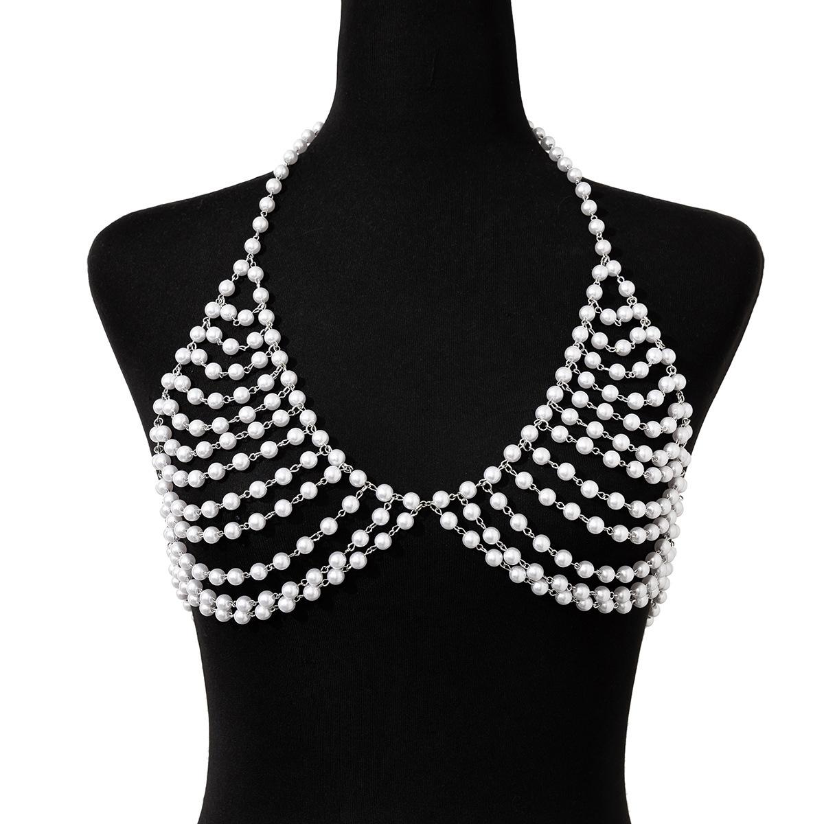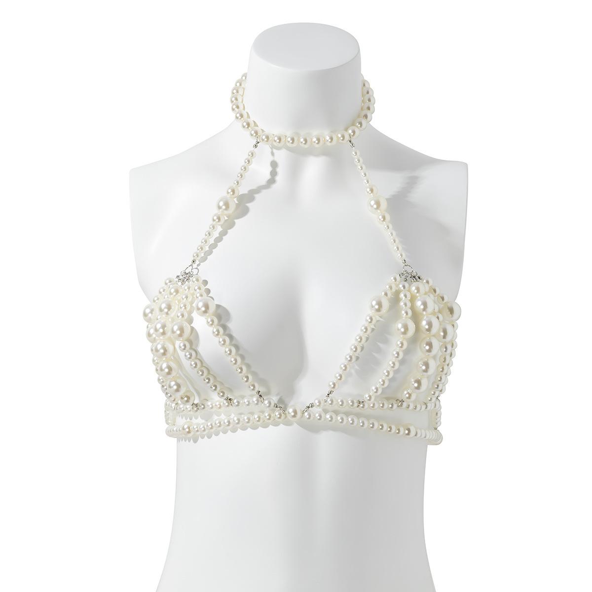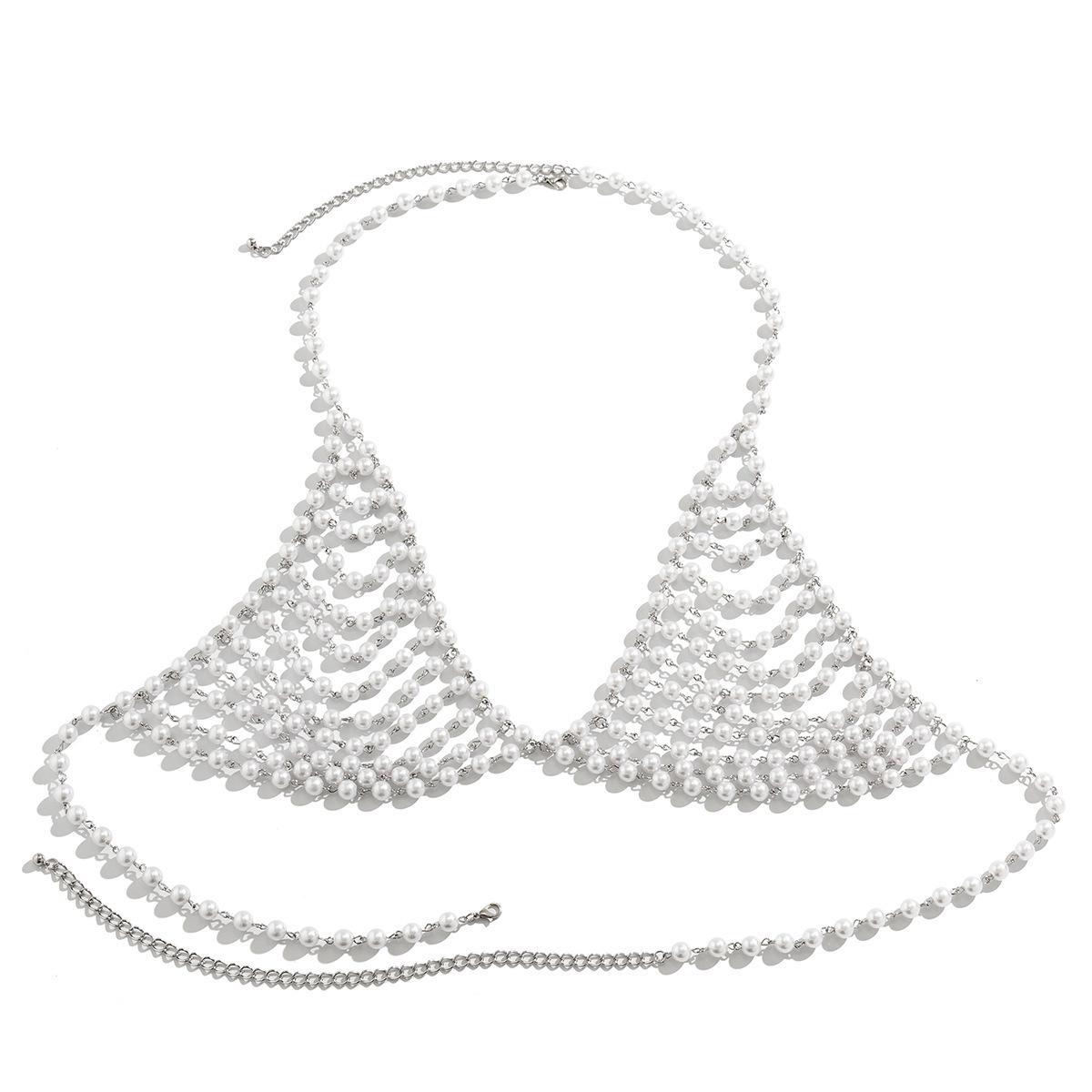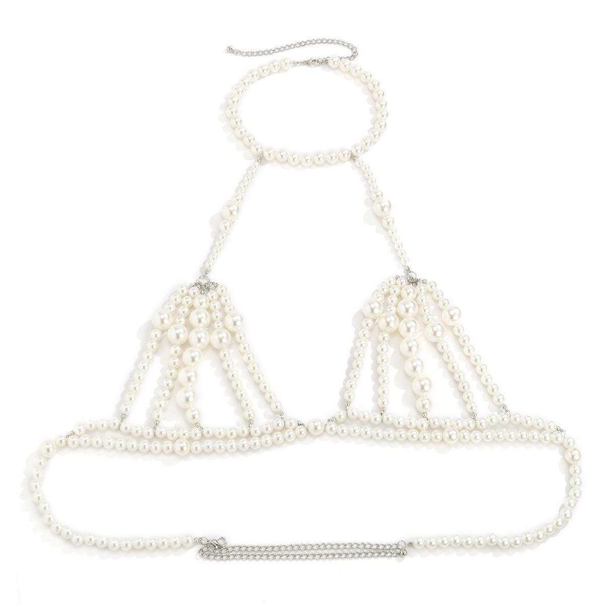 Cadena de ropa interior con perlas de imitación para mujer, estilo europeo y americano, sexy, para vacaciones, decoración de bikini transfronteriza Xin