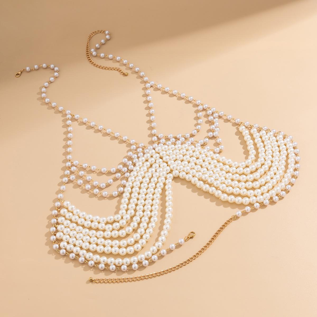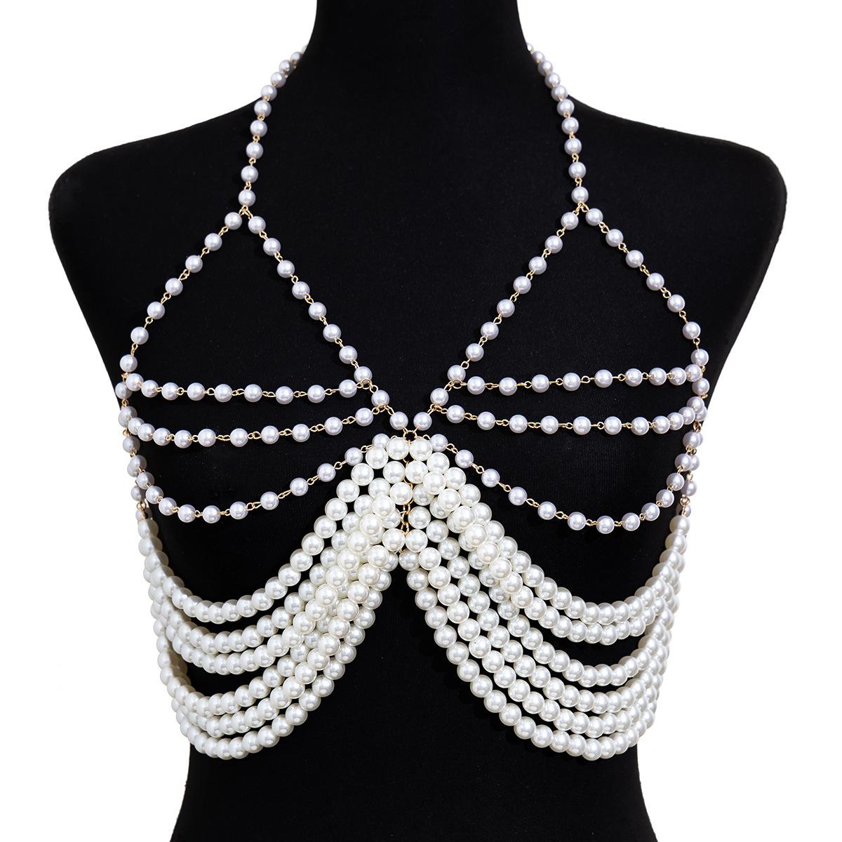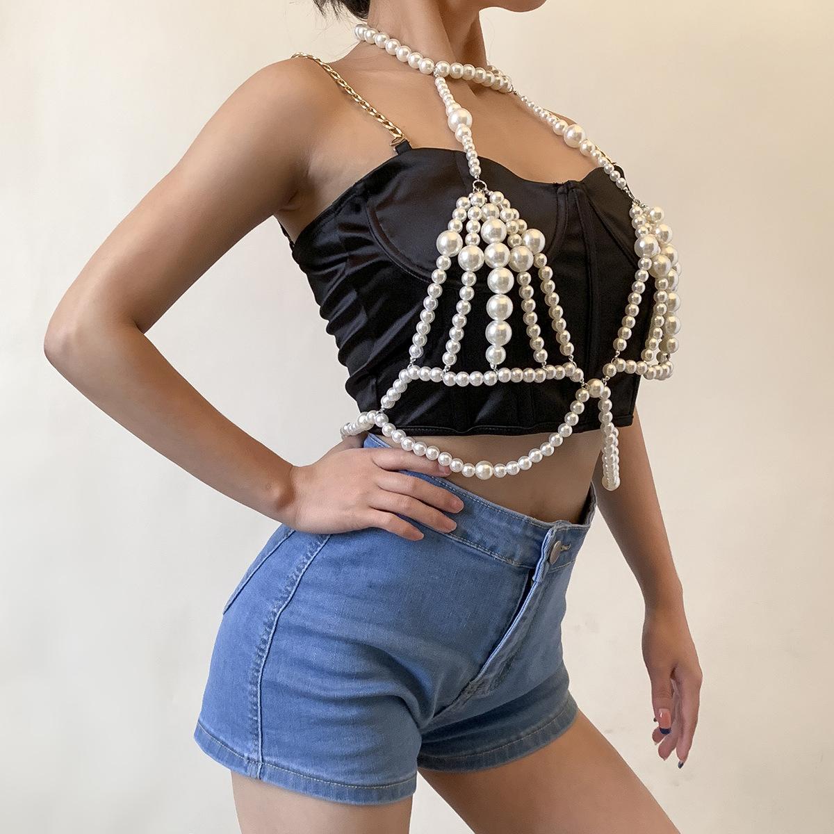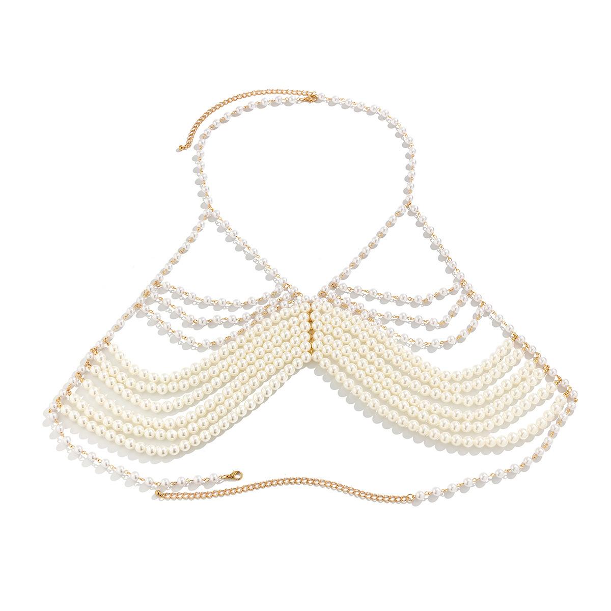 Cadena de ropa interior con perlas de imitación para mujer, estilo europeo y americano, sexy, para vacaciones, decoración de bikini transfronteriza Xin