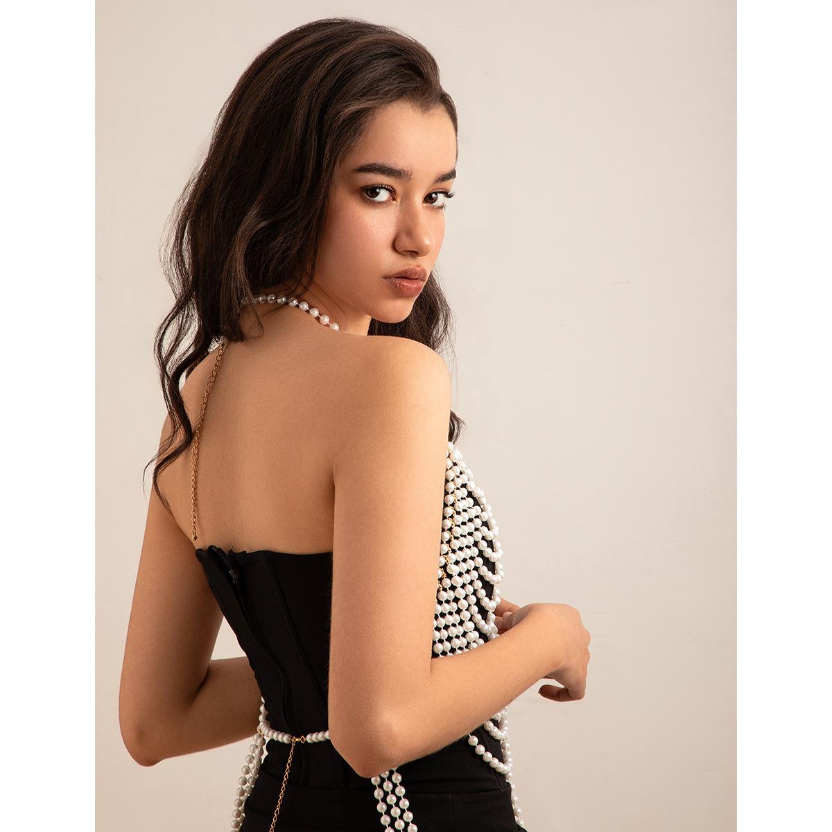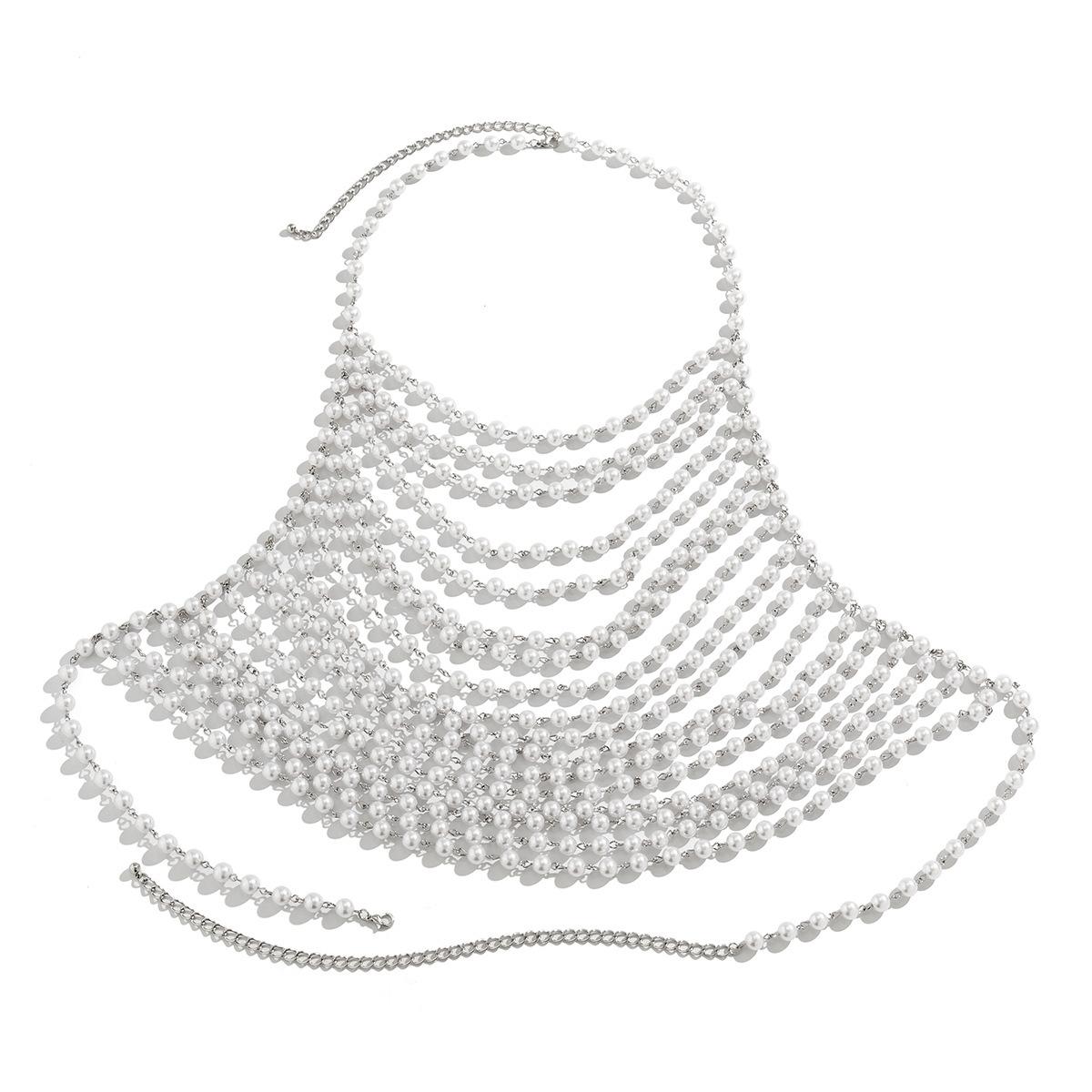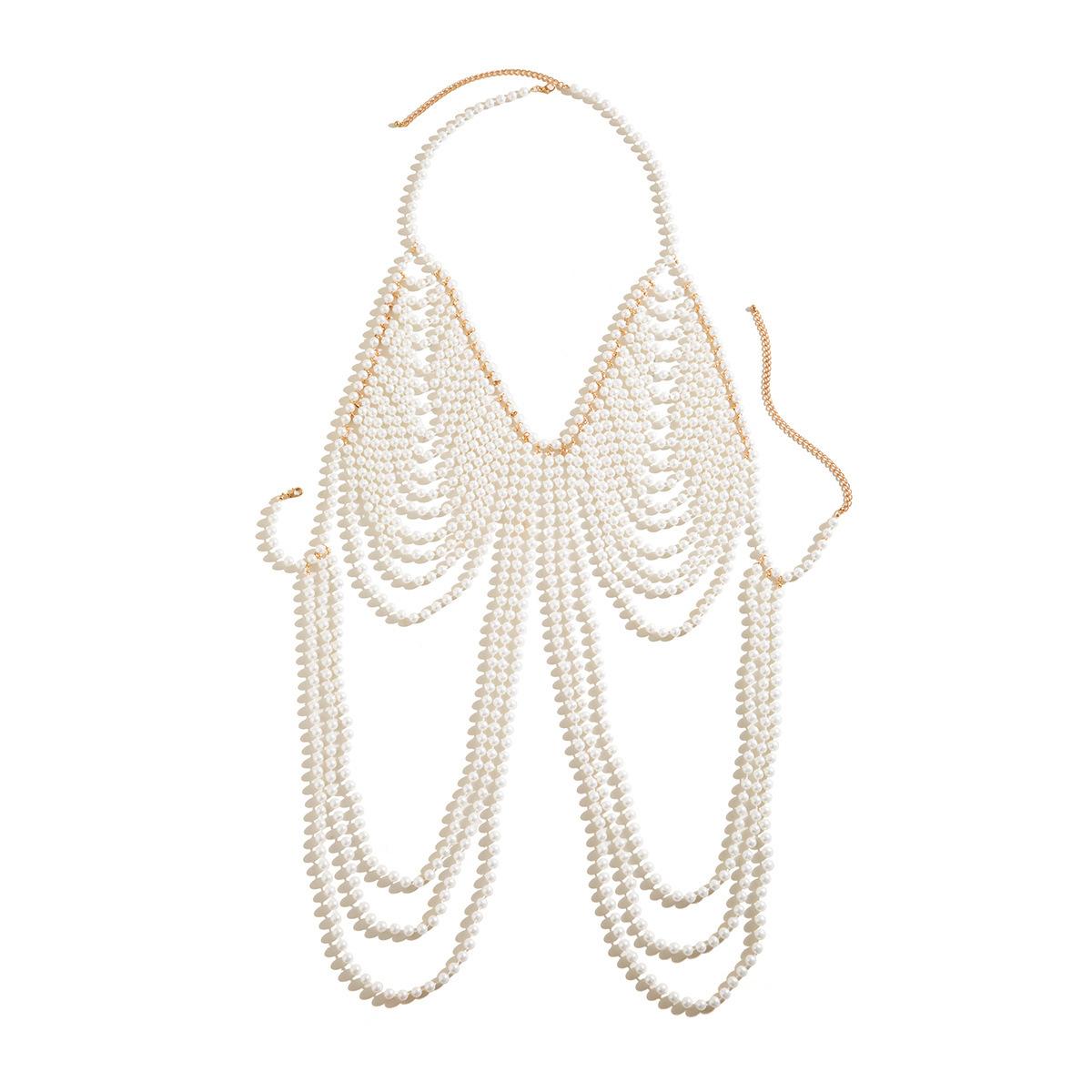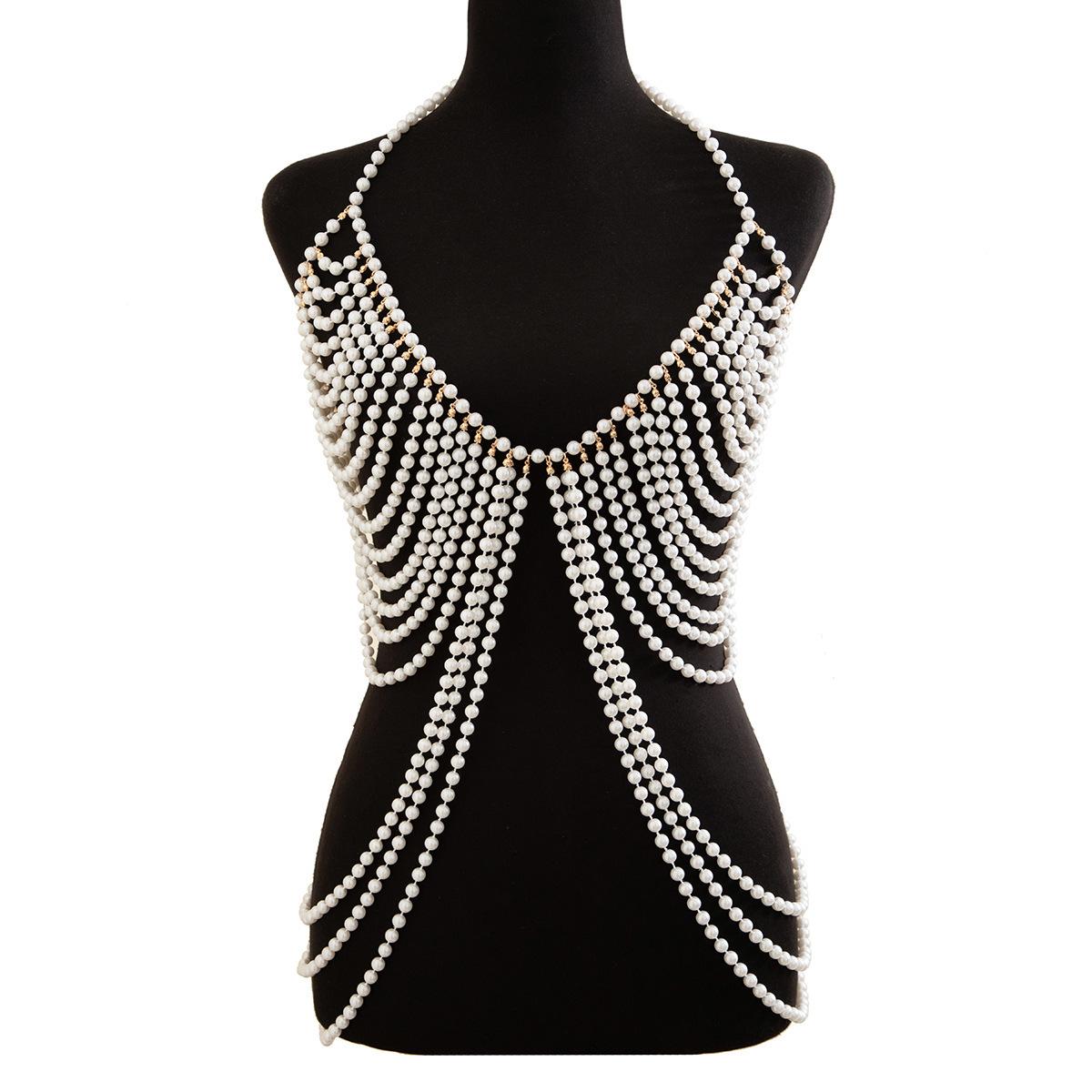 Cadena de ropa interior con perlas de imitación para mujer, estilo europeo y americano, sexy, para vacaciones, decoración de bikini transfronteriza Xin