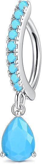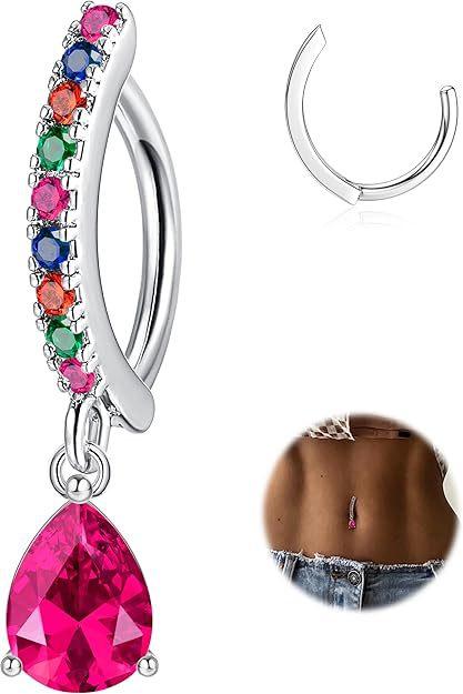 Anillo de ombligo con forma de gota de agua y incrustaciones de cobre y circonita, joya con hebilla de arco para piercing en el ombligo.