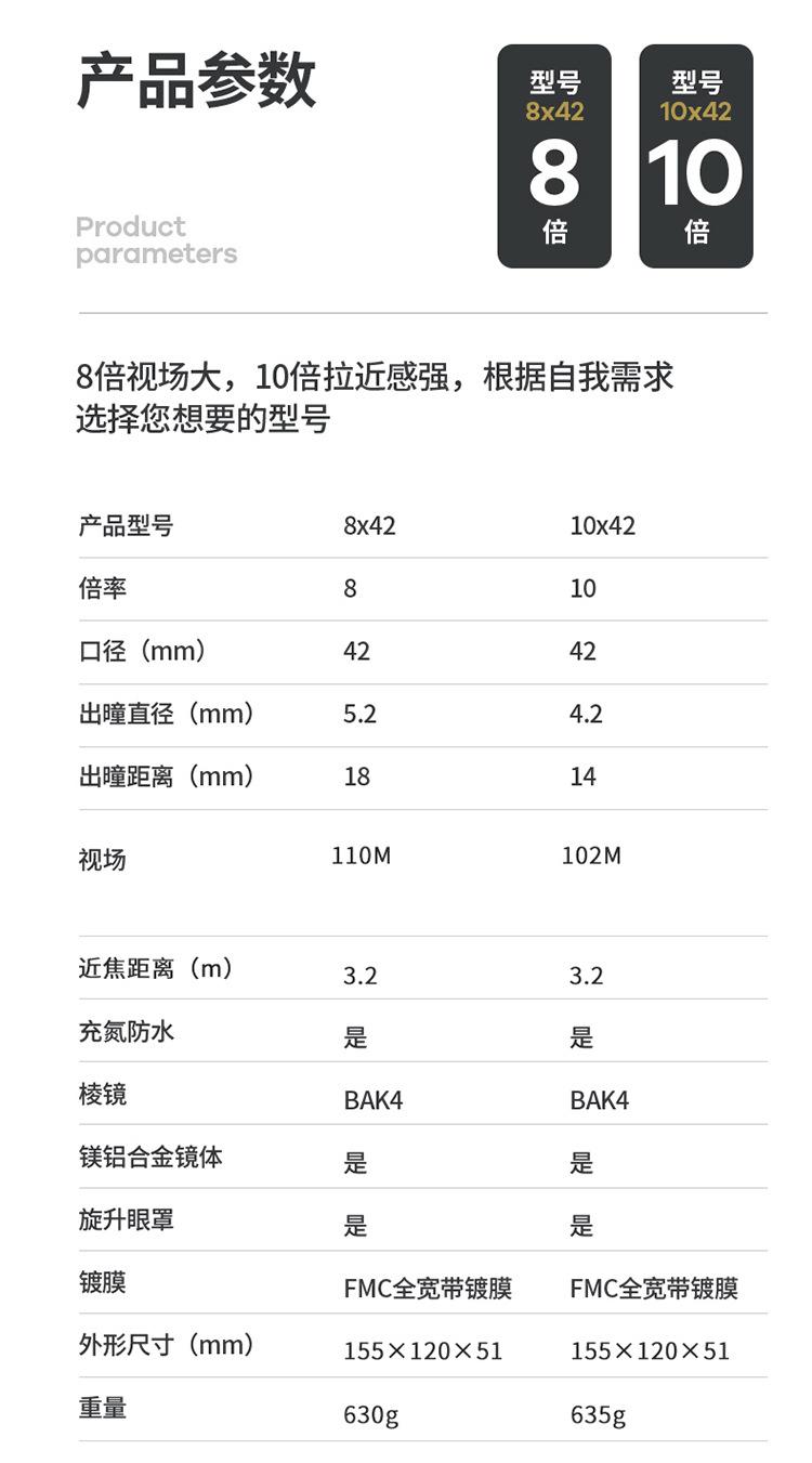 Binoculares Comet 8x 42 de alta potencia y alta definición, visión nocturna de bajo nivel de luz, marca para exteriores, binoculares de mano para observación de aves