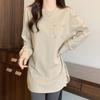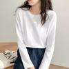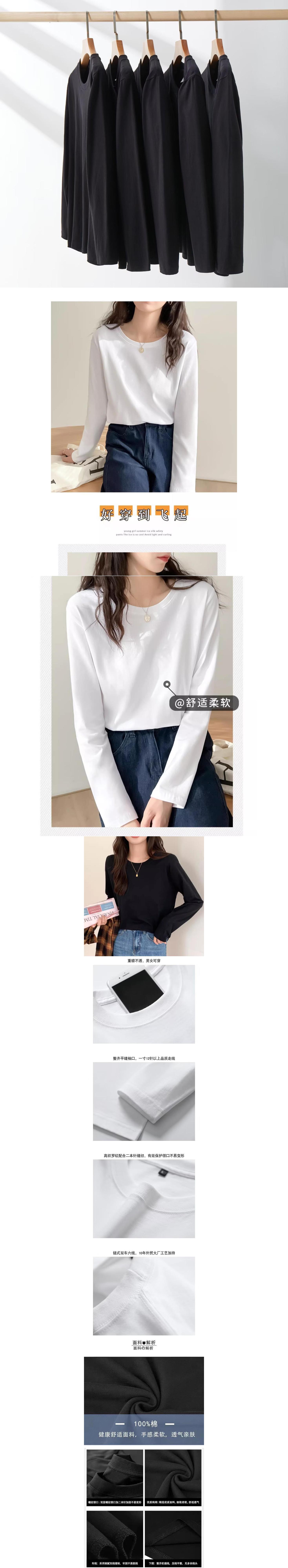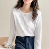 Nueva Camiseta de Algodón Puro de Manga Larga para Mujer Otoño 2024, Fresca y Dulce, Camiseta Básica de Aspecto Holgado y Adelgazante, Top Versátil de Cuello Redondo