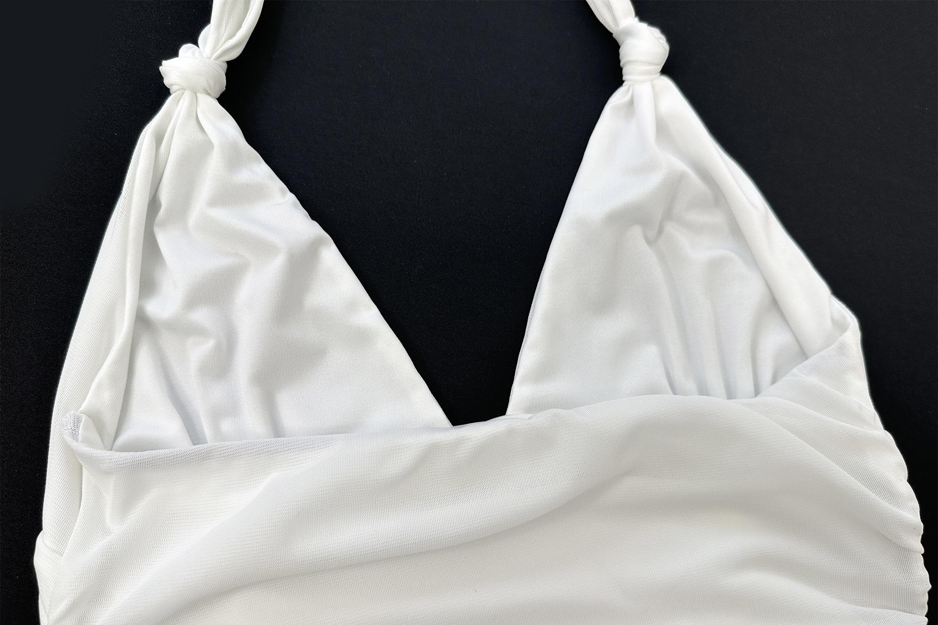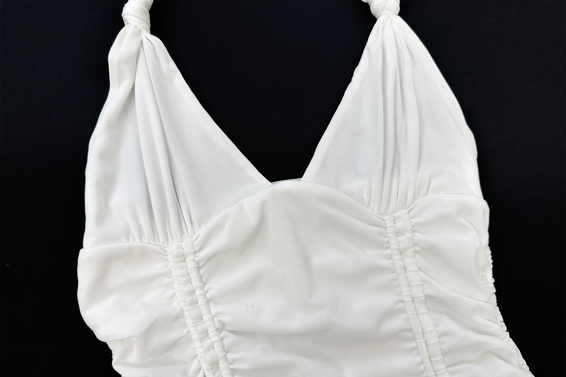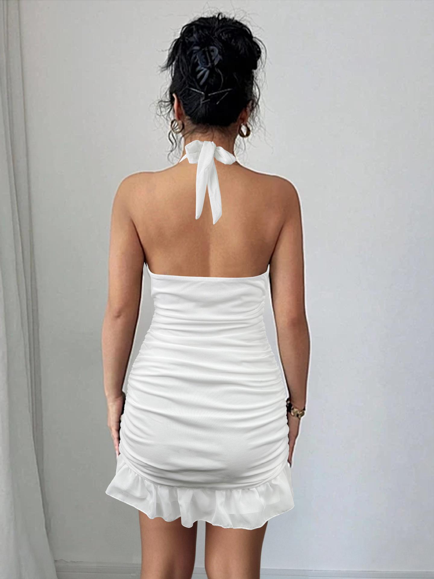 Amazon 2025 Nuevo Verano Transfronterizo Vestido Sexy Plisado de Playa para Mujer con Cuello Halter Profundo en V