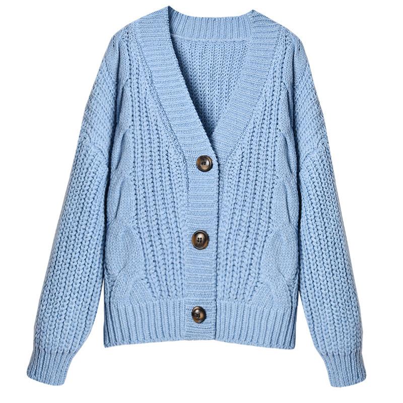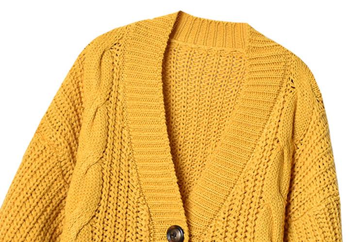 Amazon Otoño e Invierno Casual Manga Larga Botón Suéter Cárdigan Chaqueta Mujer Suéter Holgado Grueso Lana Trenzada Ropa Exterior