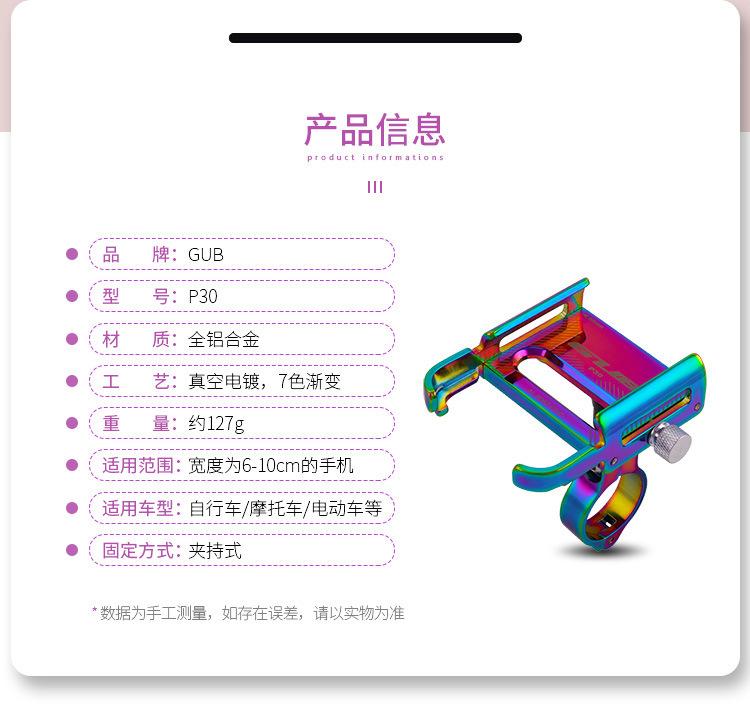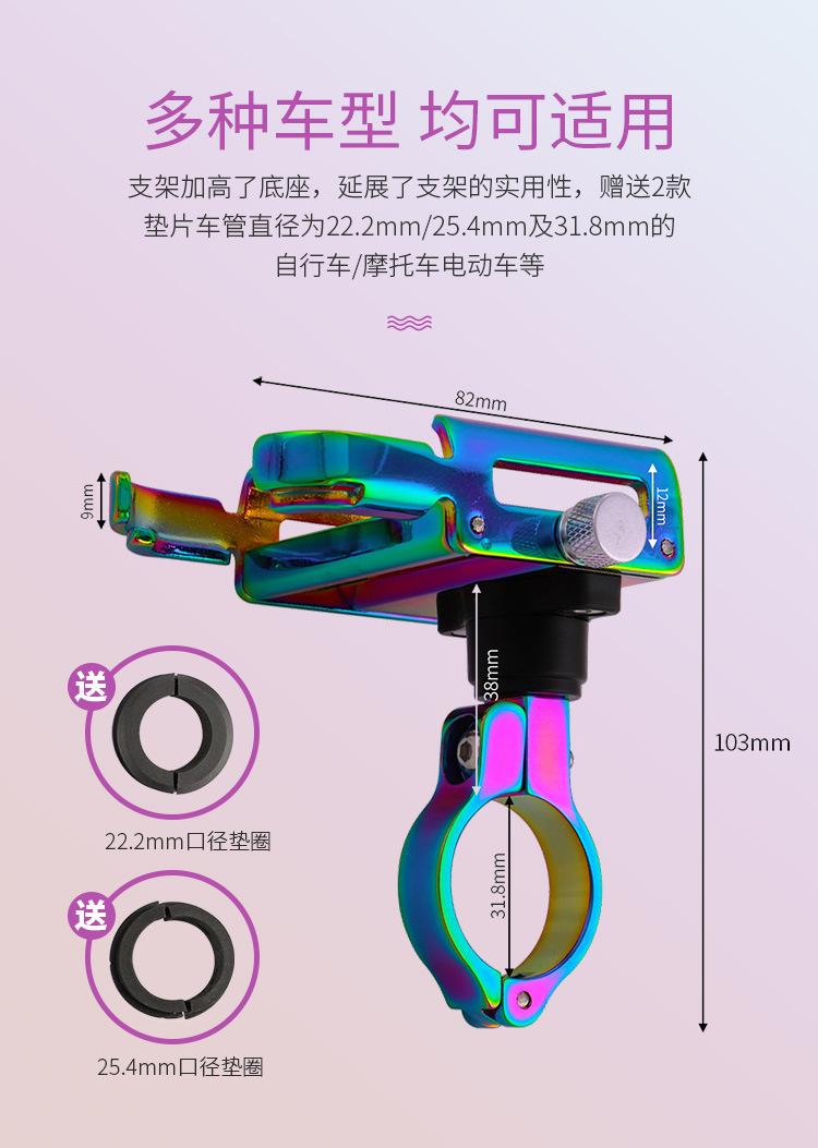Características: Marco de aleación de aluminio, chapado colorido para resaltar la personalidad, alta compatibilidad independientemente del modelo de teléfono móvil, ¡se puede usar en bicicletas, vehículos eléctricos, etc.!