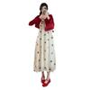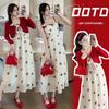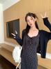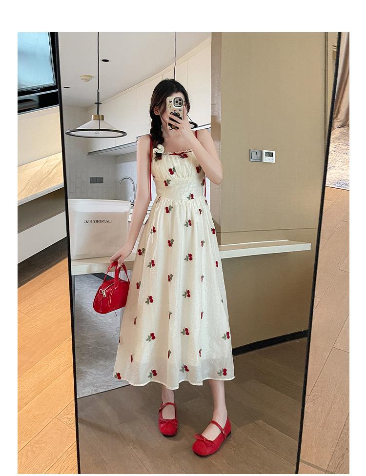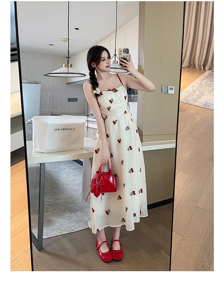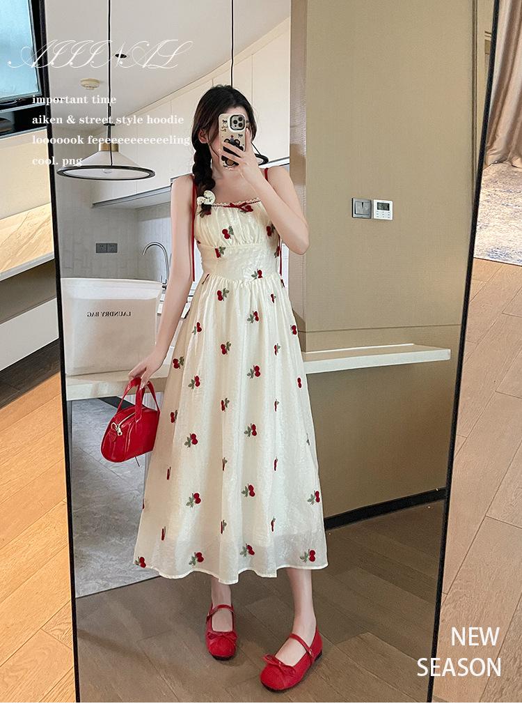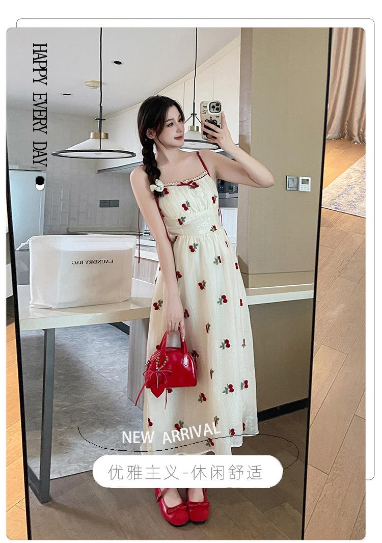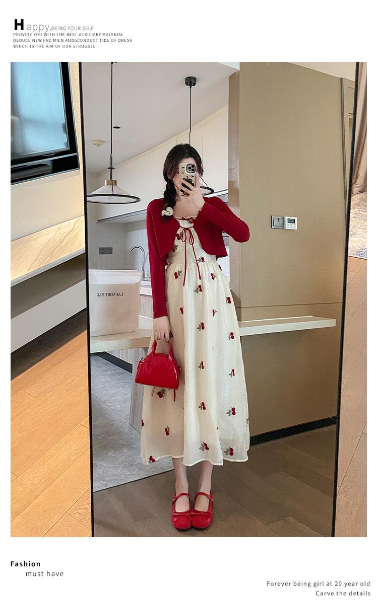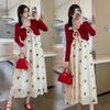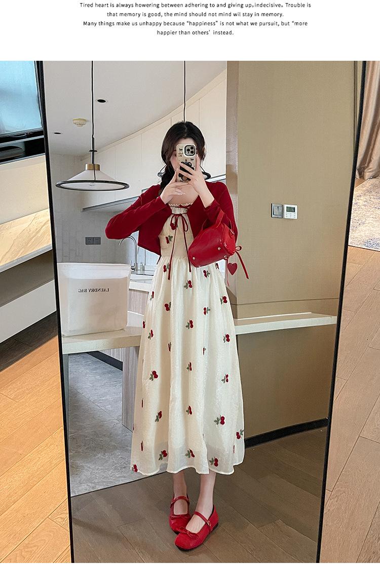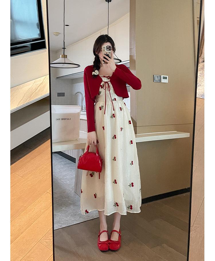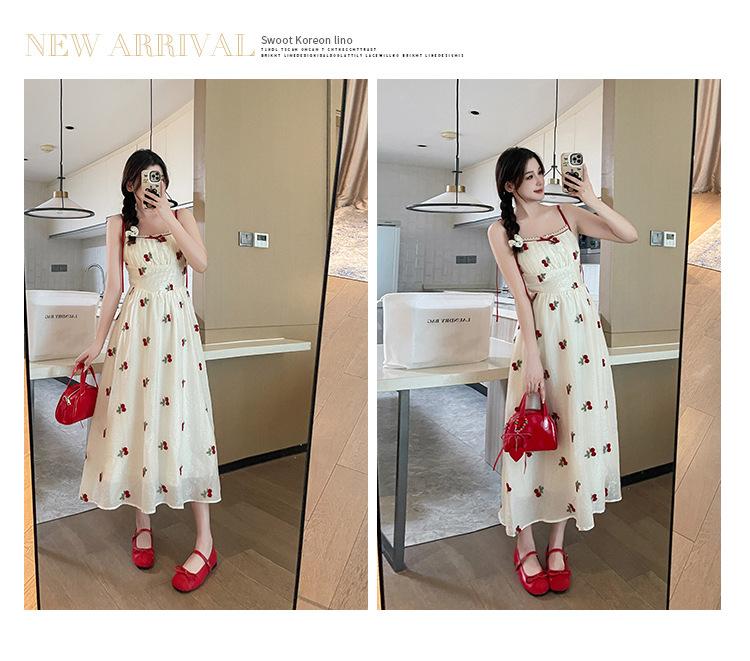 Maternidad 2025 Verano Nuevo Dulce Estilo Francés Elegante Slim Bordado Vestido de Tirantes Cárdigan Conjunto de Dos Piezas