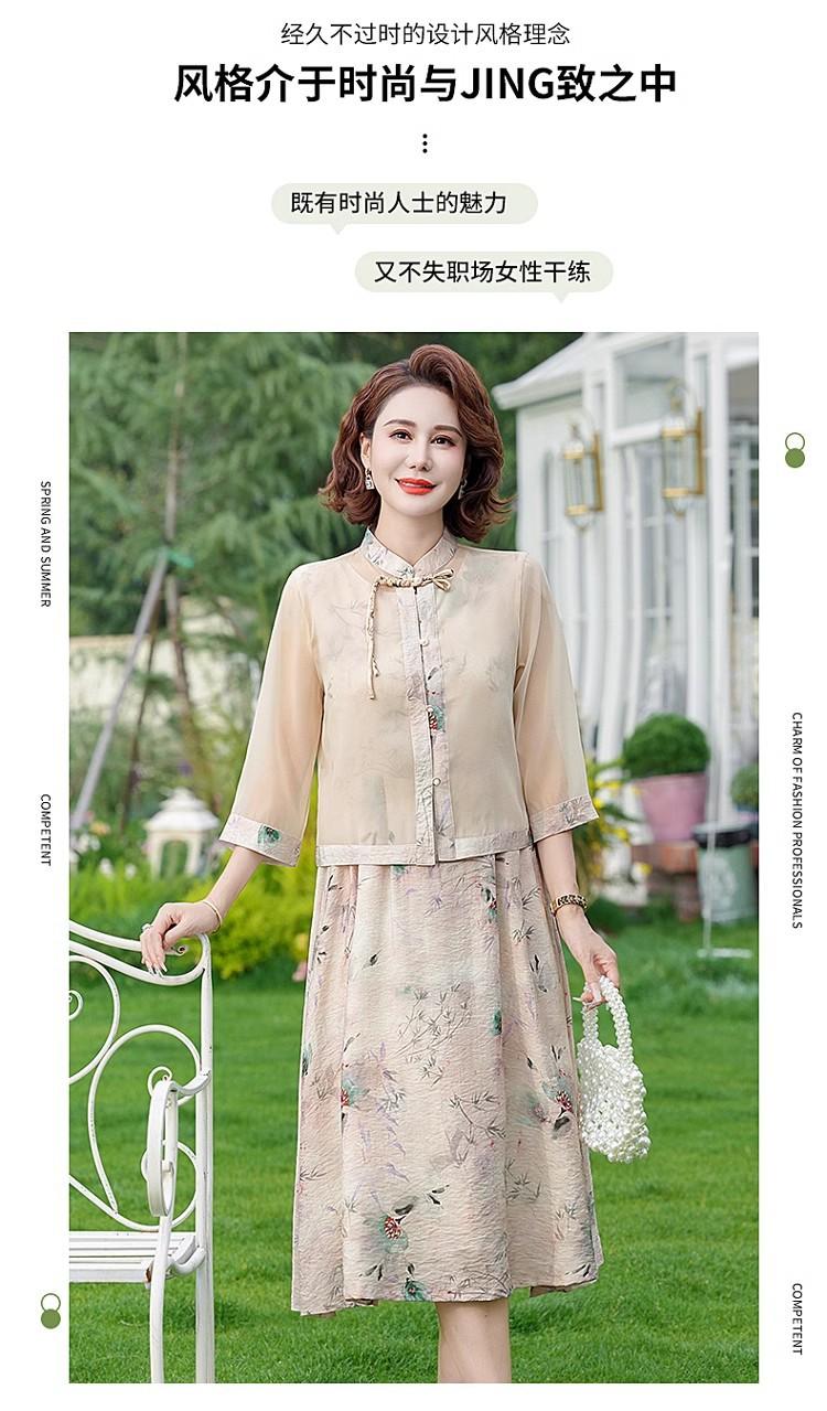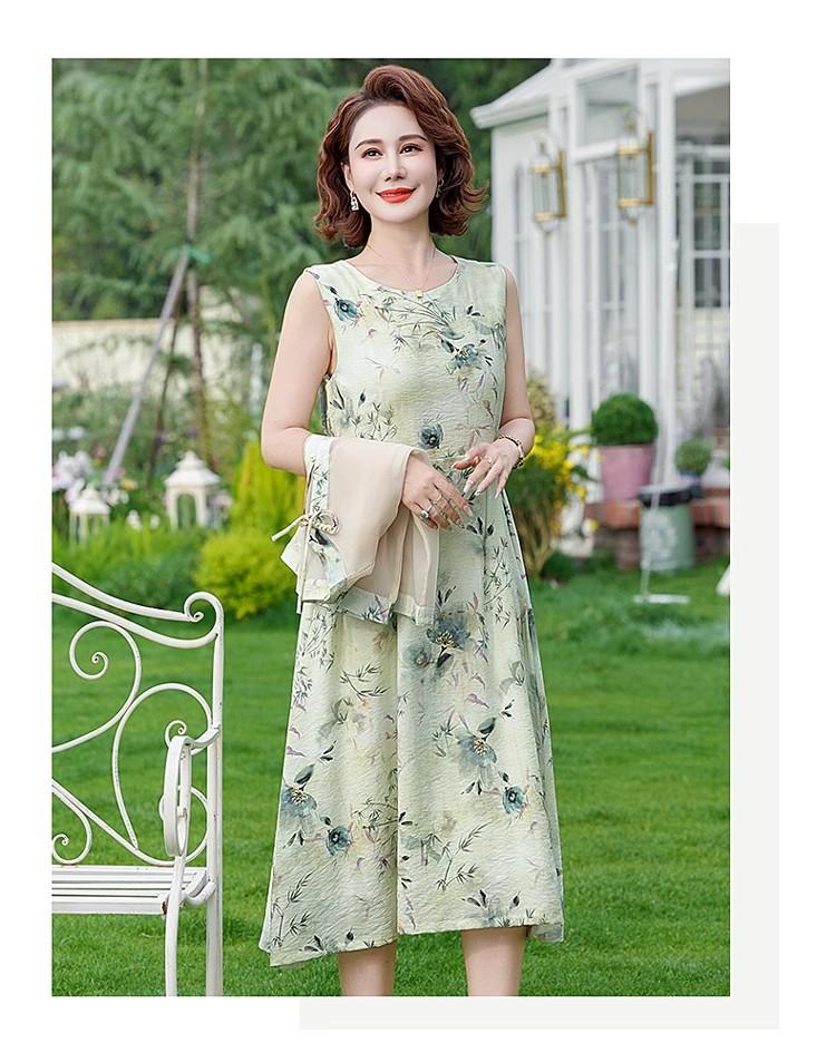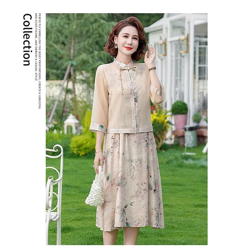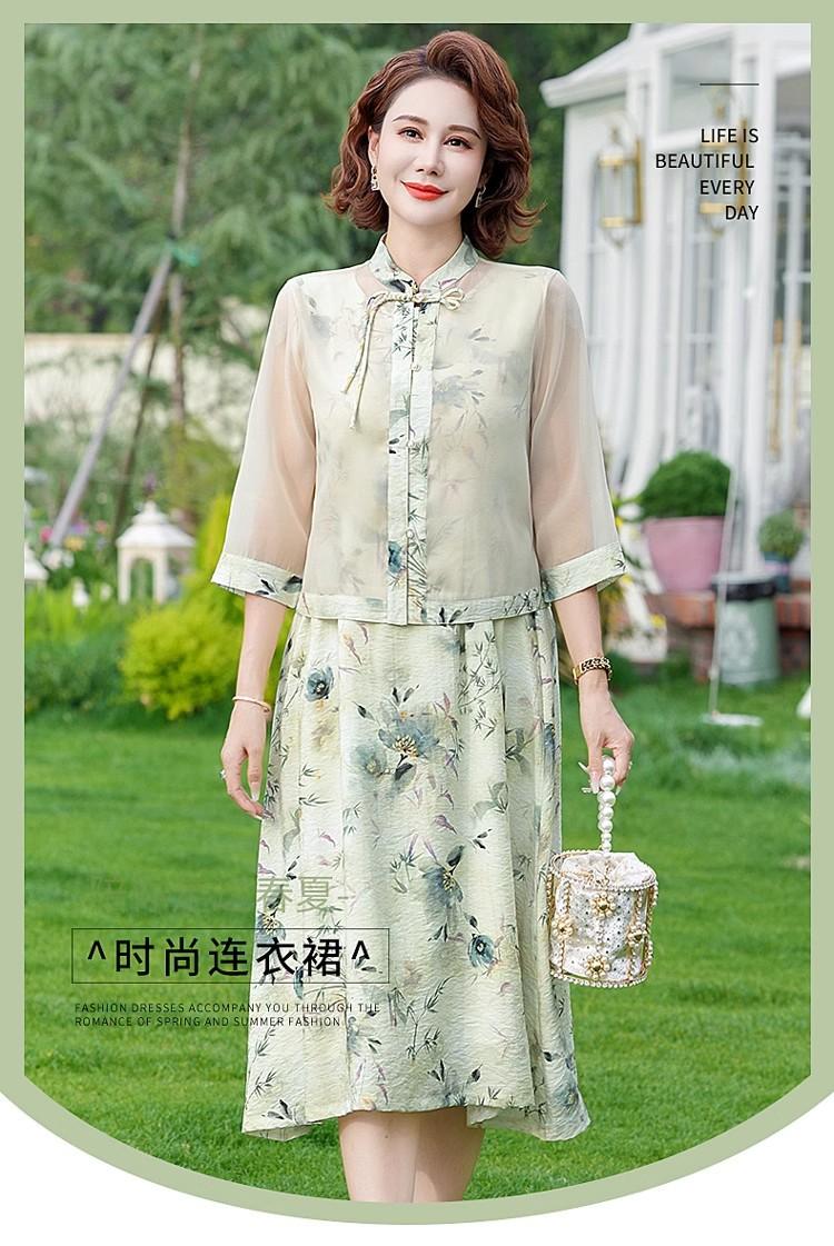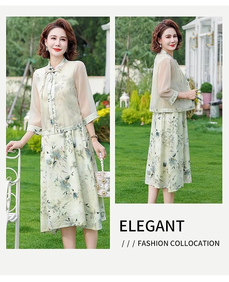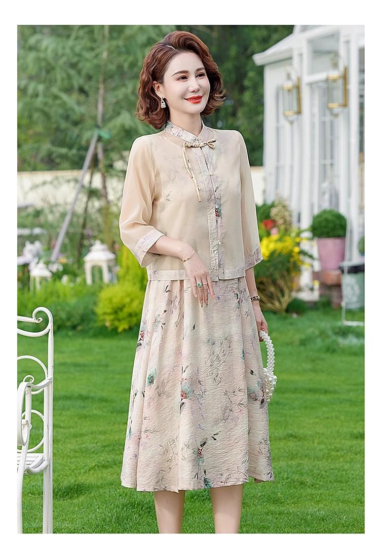 Conjunto de Dos Piezas de Vestido de Verano para Mamá, Falda Larga de Manga Corta Estilo Nacional para Mujeres de Mediana Edad, Falda Estilo Mediana Edad y Anciana