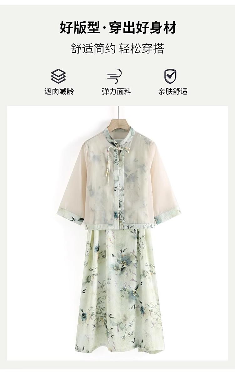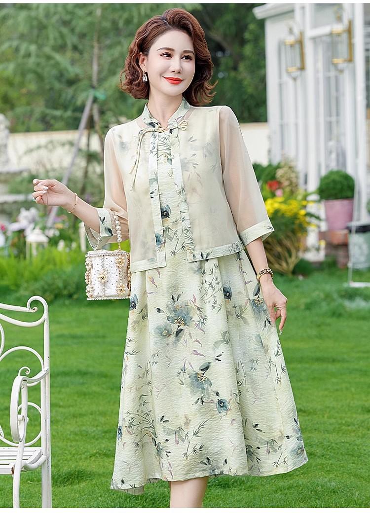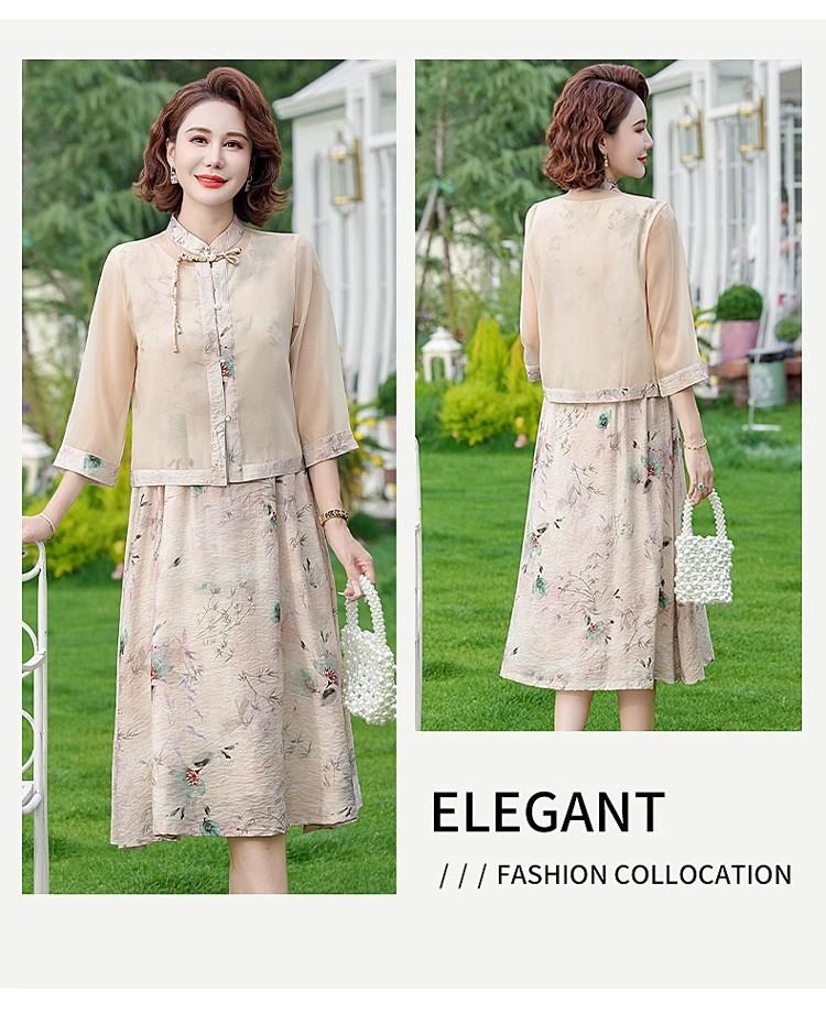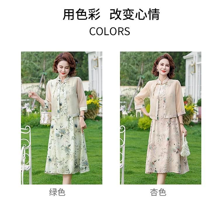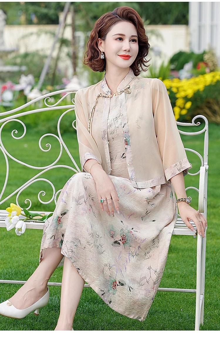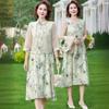 Conjunto de Dos Piezas de Vestido de Verano para Mamá, Falda Larga de Manga Corta Estilo Nacional para Mujeres de Mediana Edad, Falda Estilo Mediana Edad y Anciana