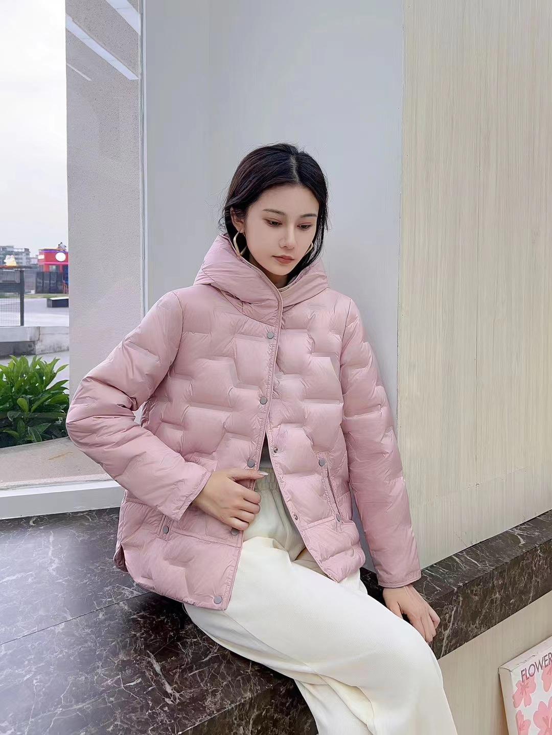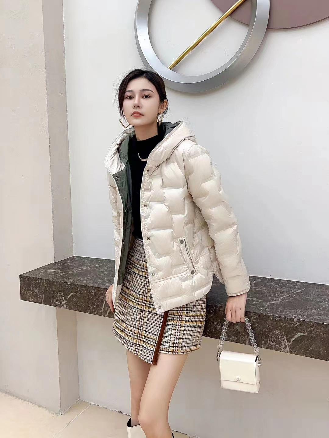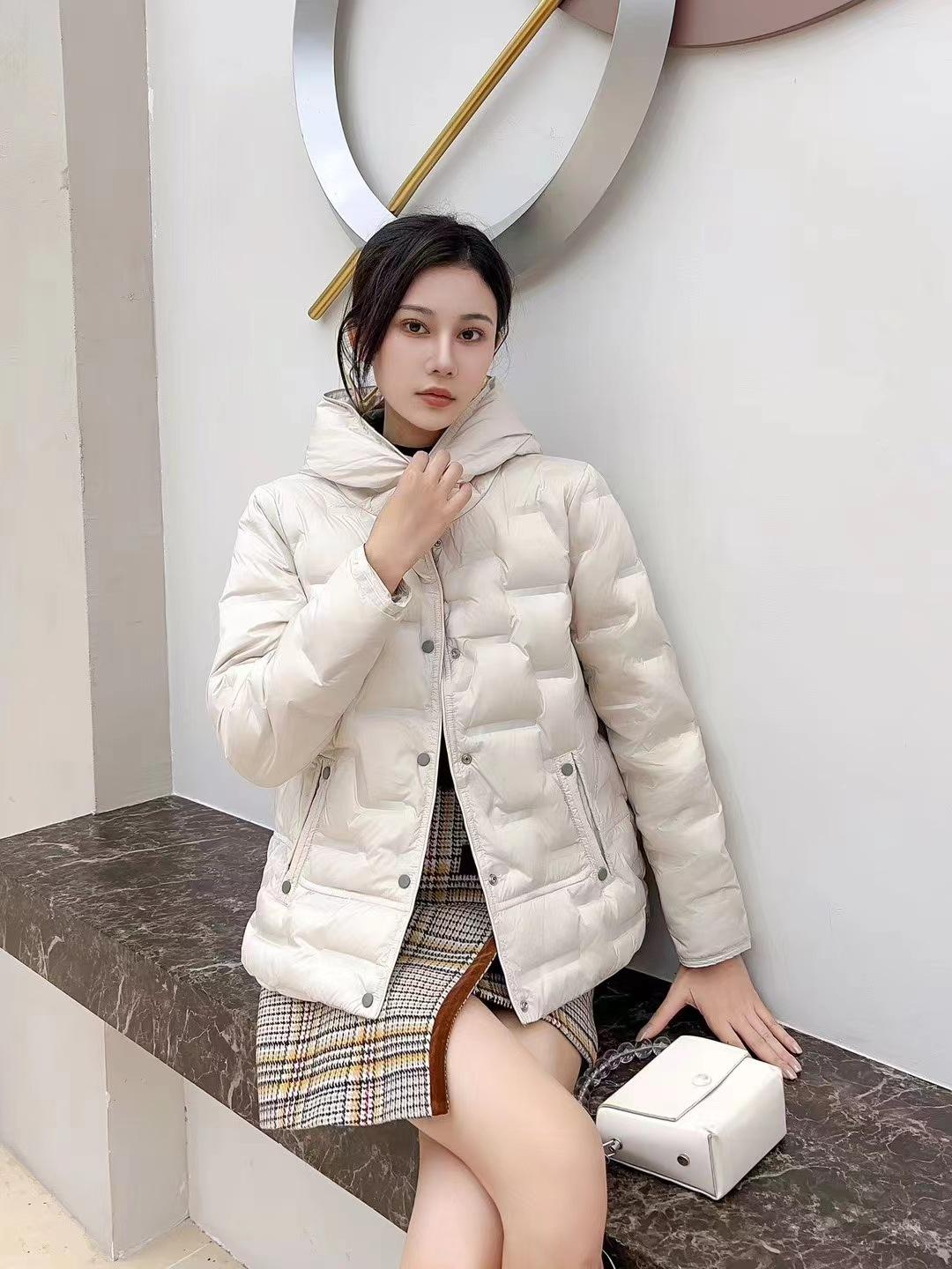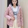 2024 otoño e invierno nueva moda pegamento a presión medio delgado chamarra de plumón para mujer con capucha corto moda cálido abrigo de invierno marea