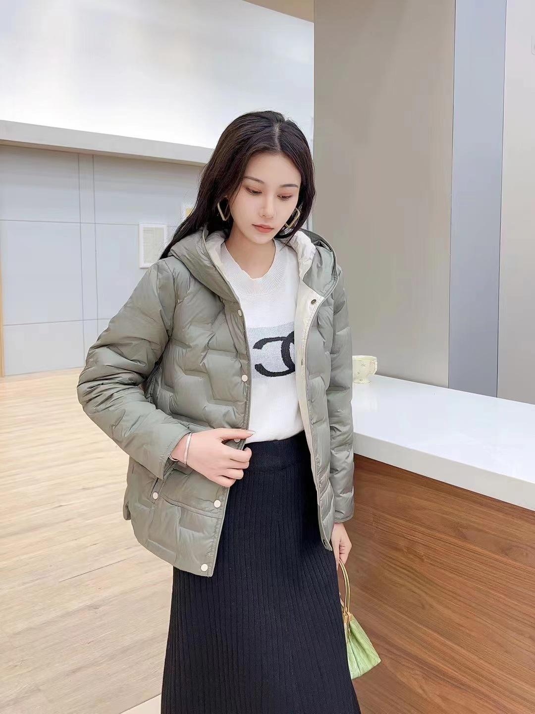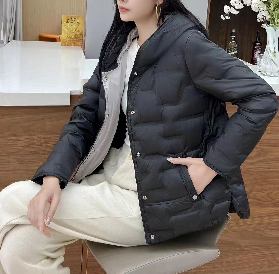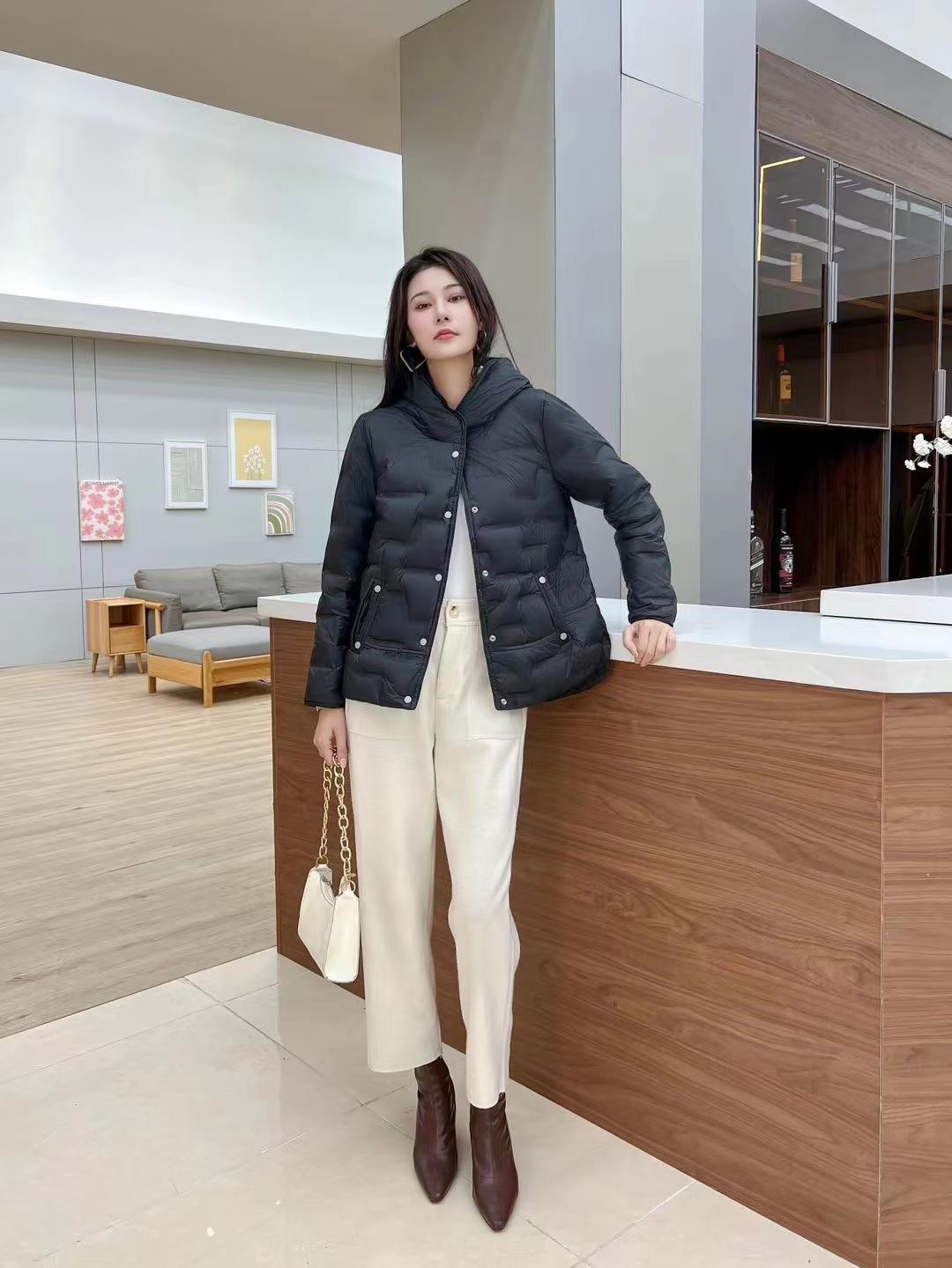 2024 otoño e invierno nueva moda pegamento a presión medio delgado chamarra de plumón para mujer con capucha corto moda cálido abrigo de invierno marea