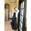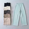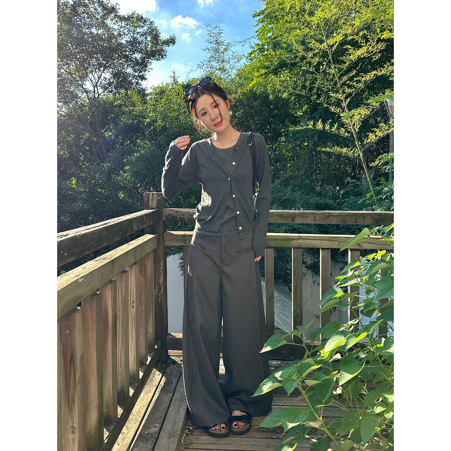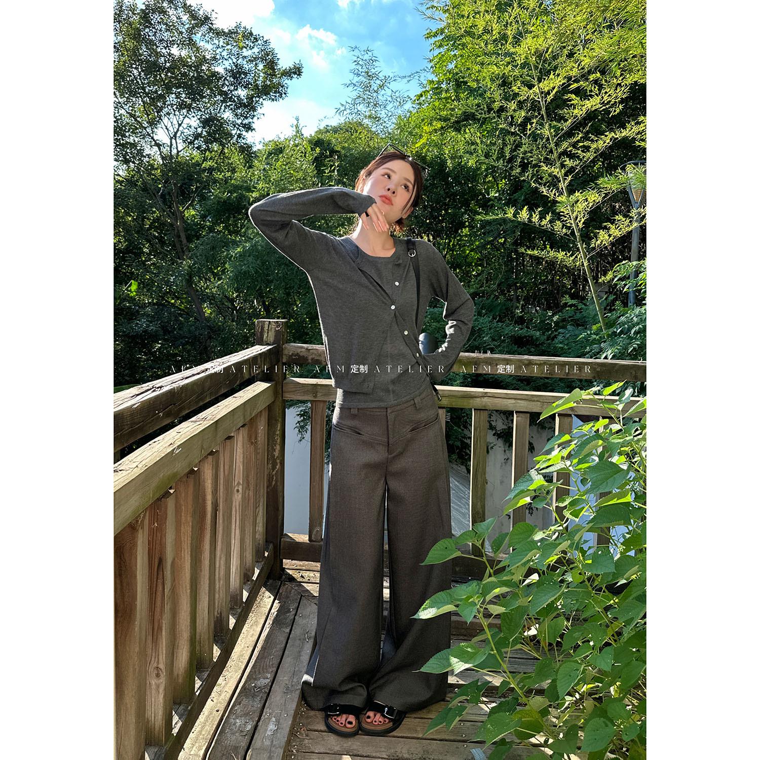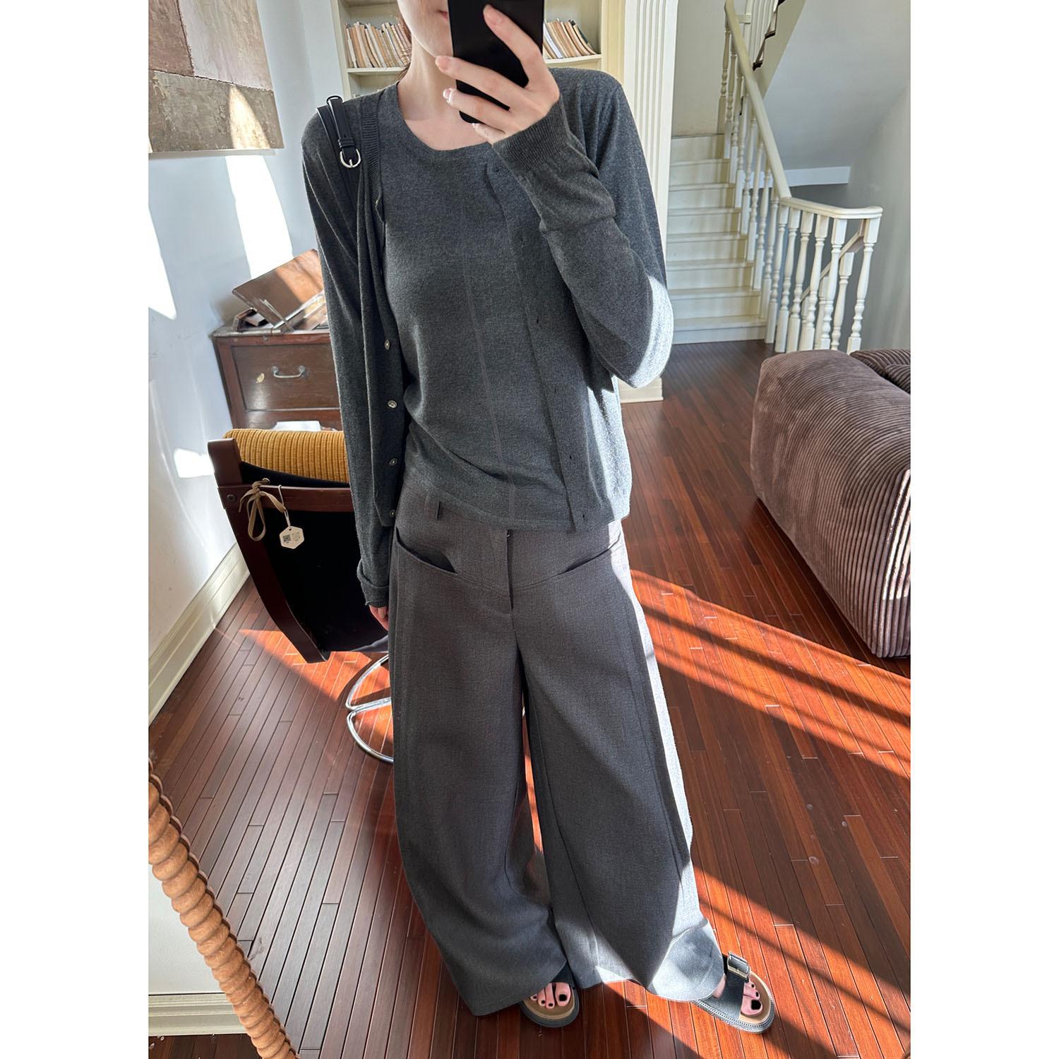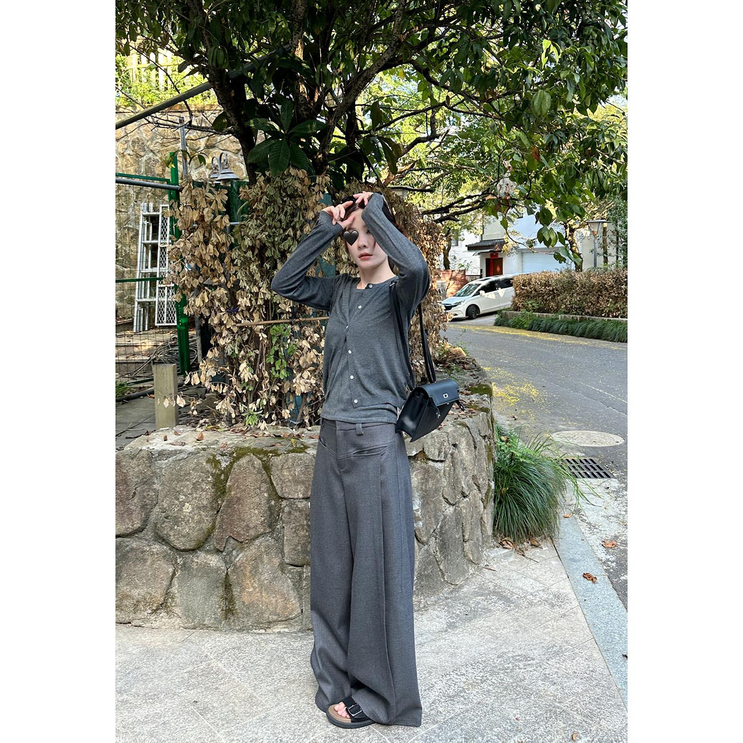 Pantalones con Parche en la Cintura Plisada para Mujer para Principios de Primavera, Pantalones Versátiles de Pierna Ancha Drapeados hasta el Piso, Pantalones Casuales Sueltos Grises