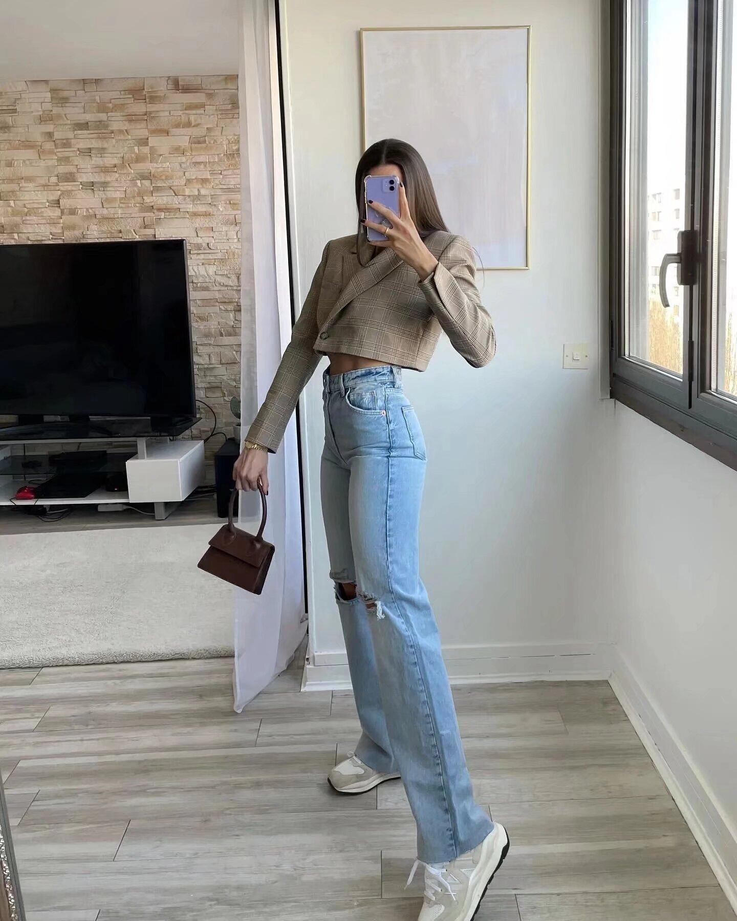 Ropa de Mujer de Comercio Exterior Europea y Americana Aliexpress Ins Popular Versátil Primavera y Otoño Casual Elegante Chaqueta Tops de Largo Medio