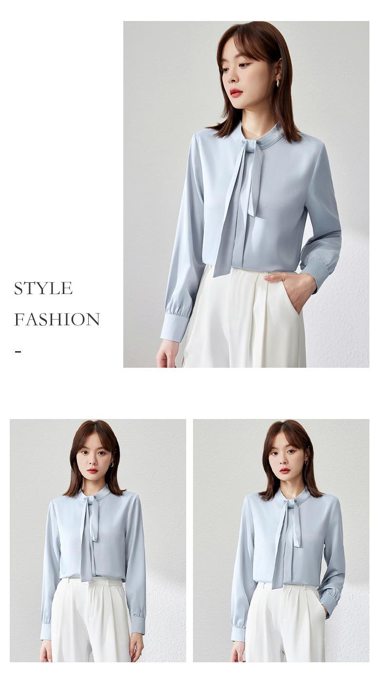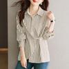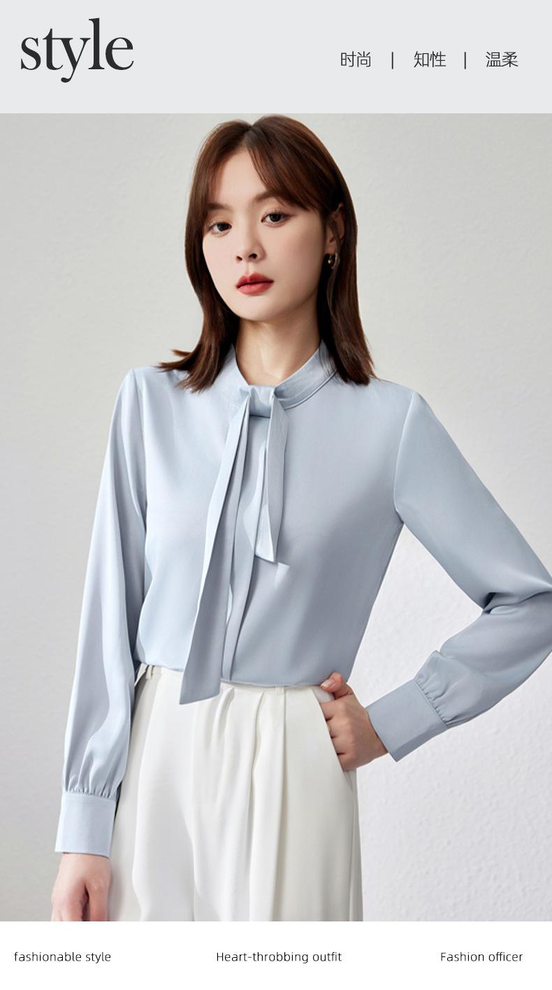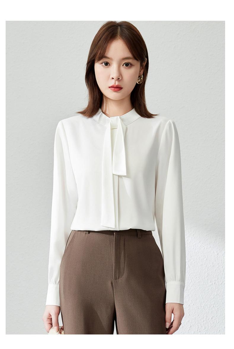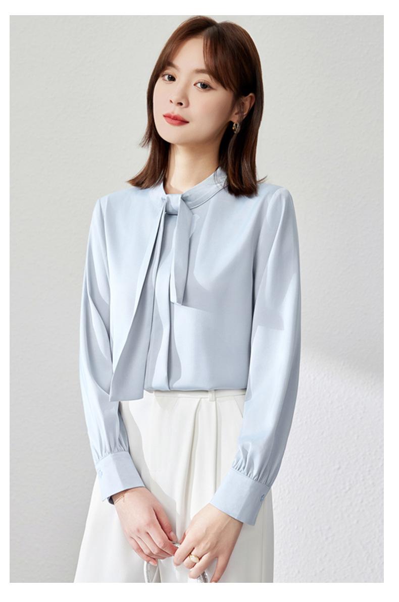 Camisa de Acetato Personalizada por el Fabricante de Manga Larga para Mujer Verano Delgada 2025 Nueva Top Francés Drapeado Versátil Torcido