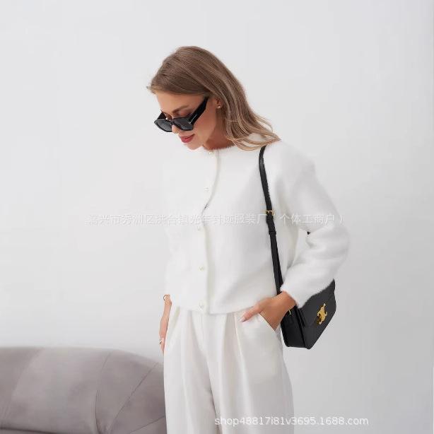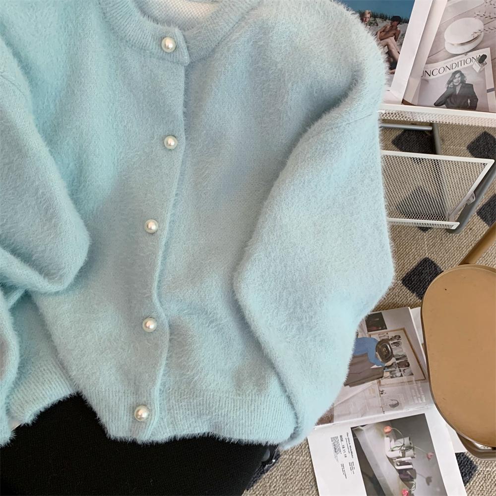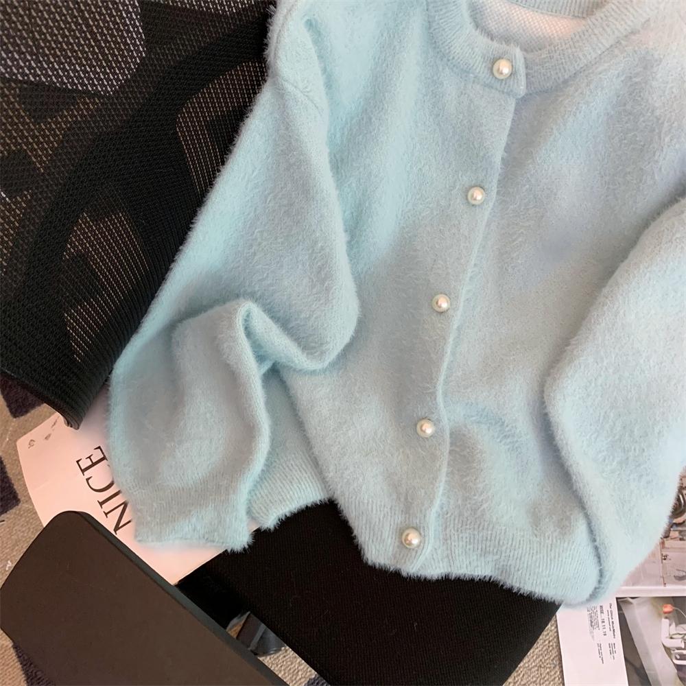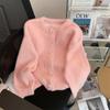 Versión Coreana Otoño e Invierno 2025 Cárdigan de Terciopelo Suave de Visón Sintético Niche Color Sólido Top de Punto para Mujer con Decoración de Botones