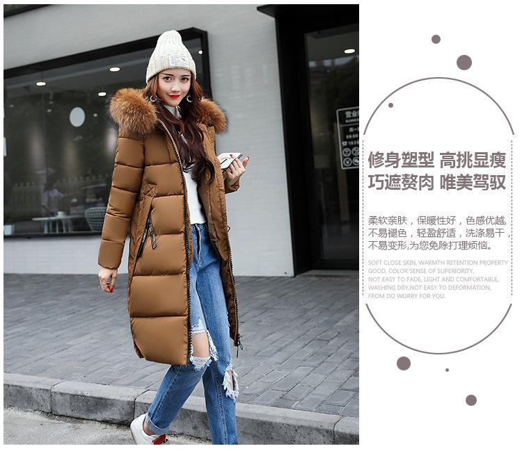 2025 Nuevo Otoño e Invierno Estilo Coreano Abrigo de Algodón Slim para Mujer Largo Medio Moderno Cuello Grande de Piel Abrigo de Algodón Acolchado Engrosado para Mujer