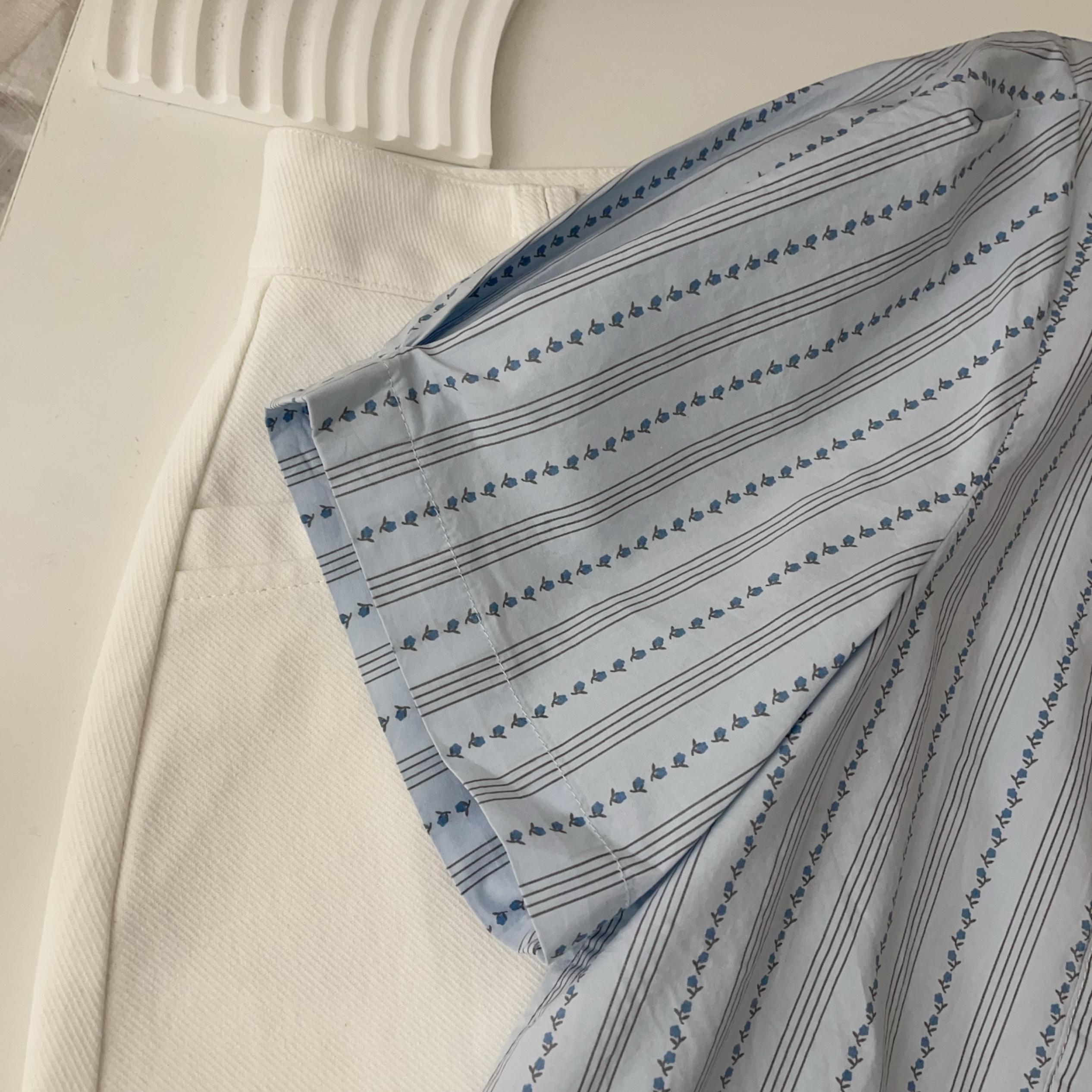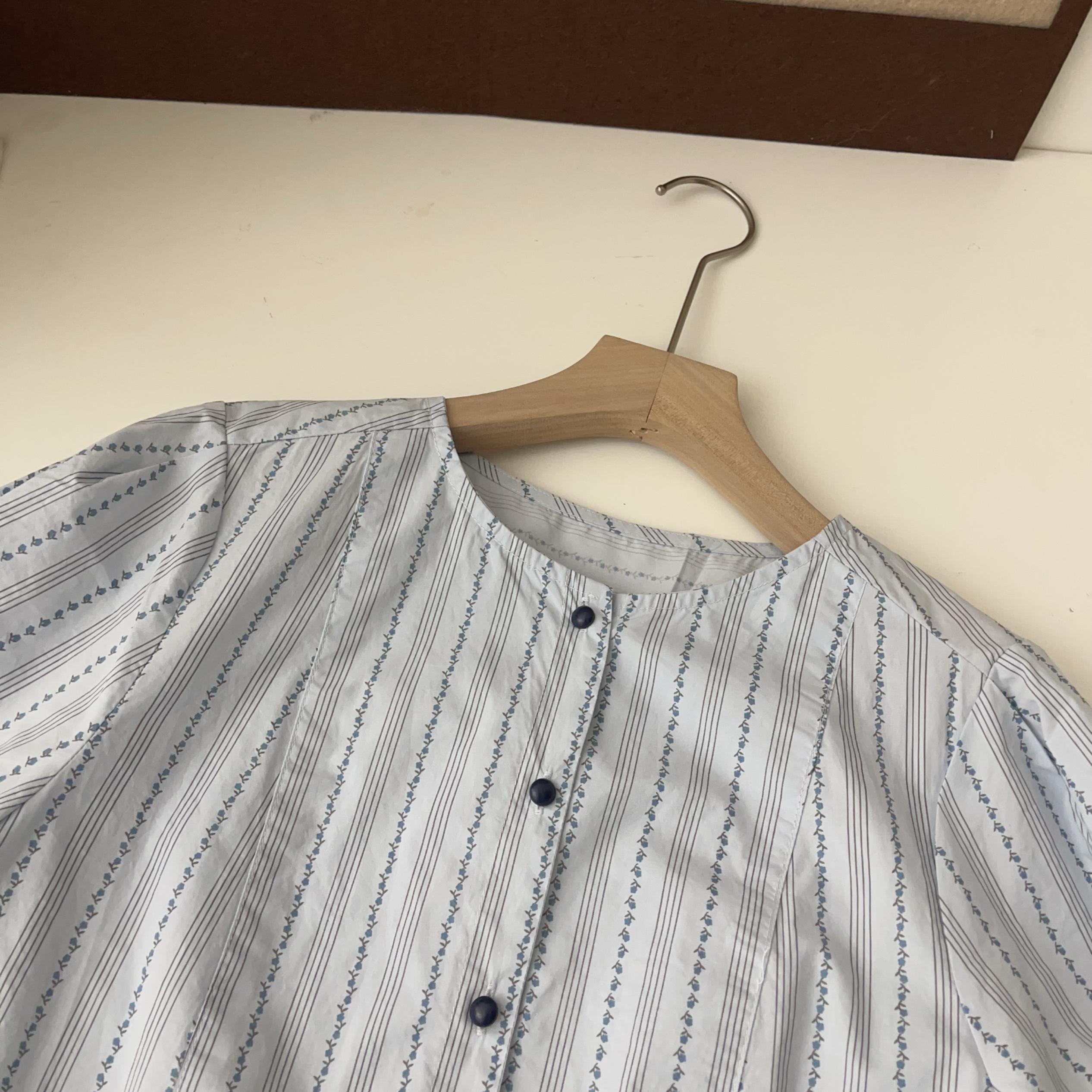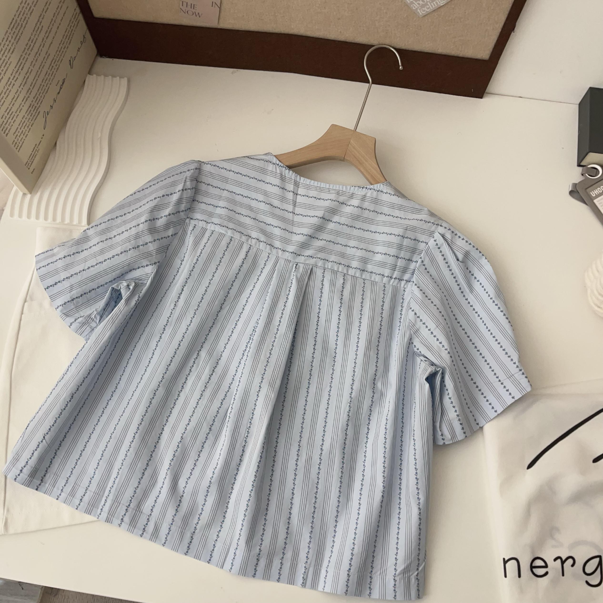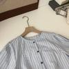 2025 Nuevo Verano Estilo Coreano Moda Cuello Redondo Rayas Verticales Camisa de Manga Corta para Mujer Aspecto Adelgazante Holgado Camisa Estampada Top