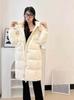 90 Plumón de Pato Blanco 2024 Invierno Nuevo Chaqueta de Plumón para Mujer Largo Medio Engrosado Súper Largo Coreano Sensación de Alta Gama Chaqueta con Capucha