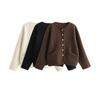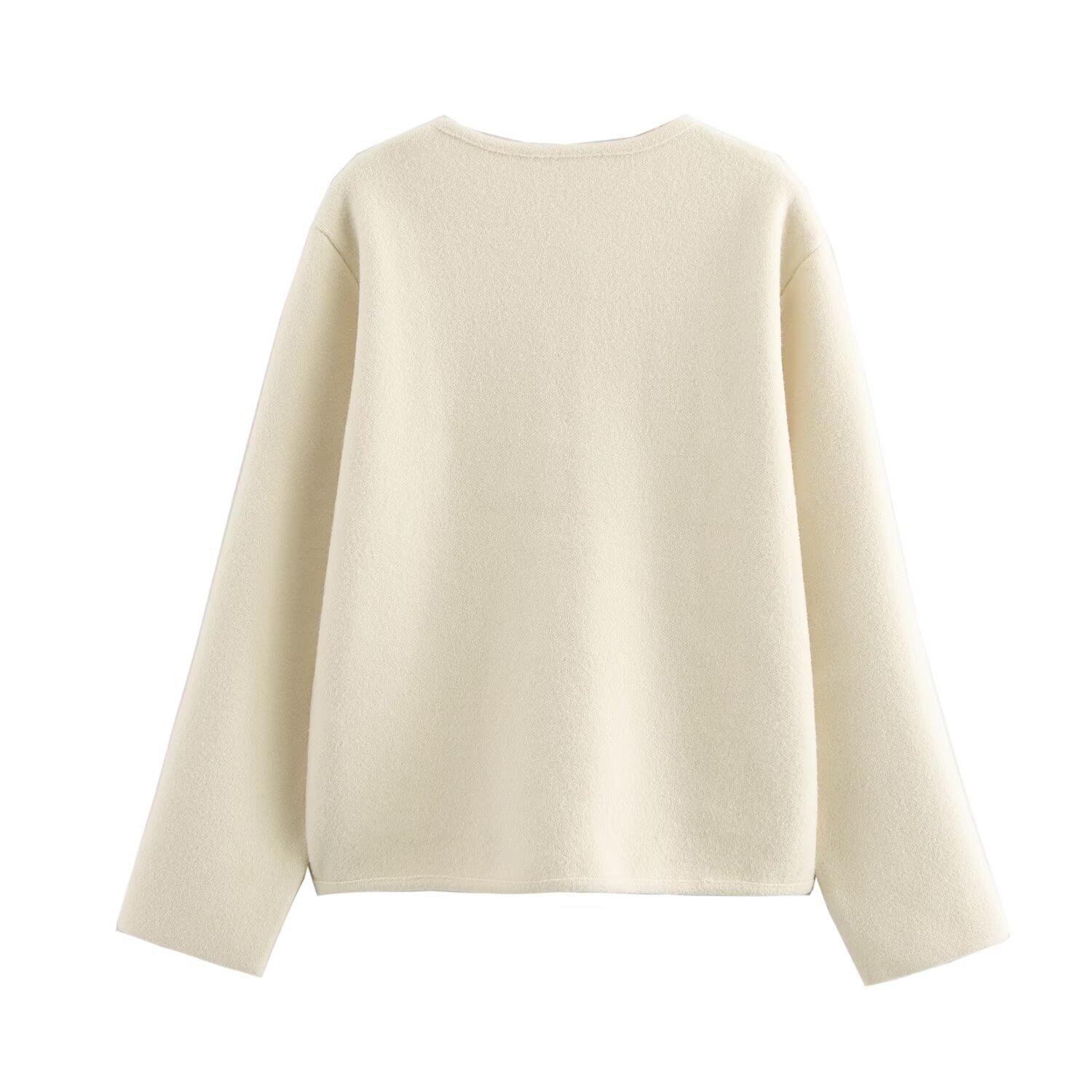 2024 Otoño Nueva Ropa de Mujer Estilo Europeo y Americano Moda Casual Cuello Doble Faz Chaqueta Corta Gruesa