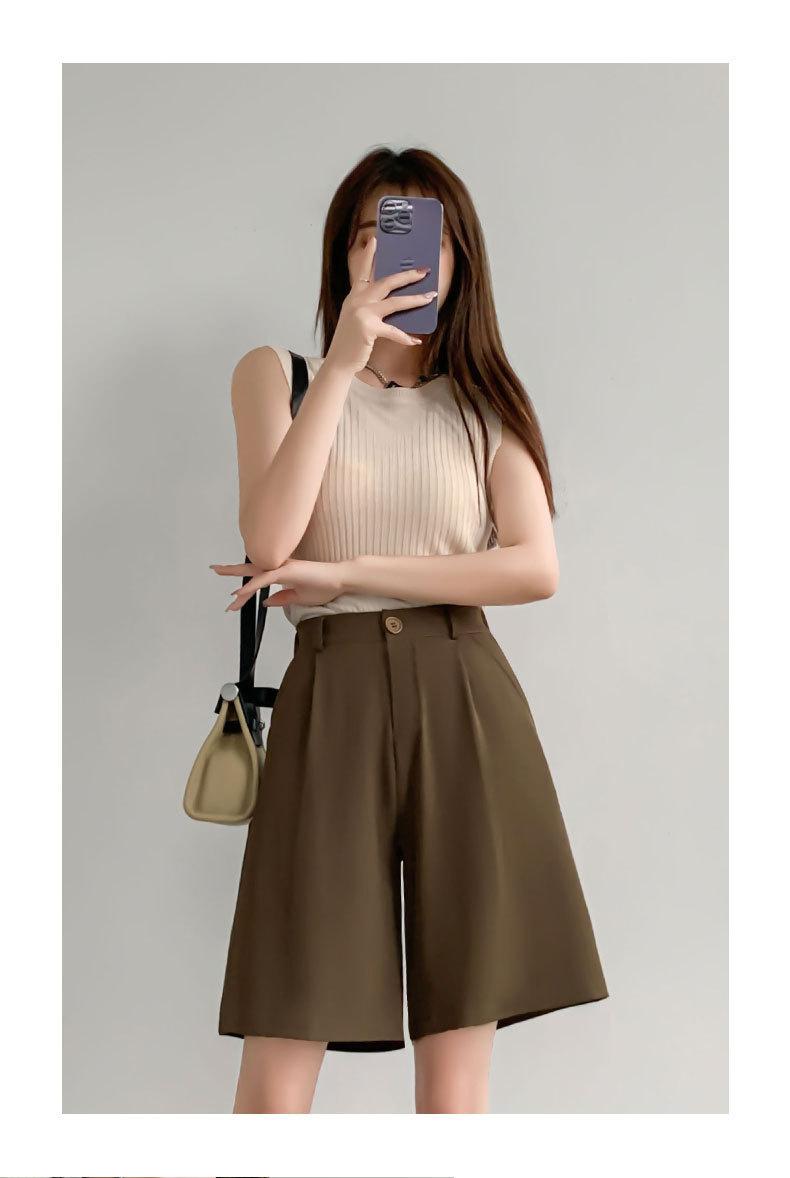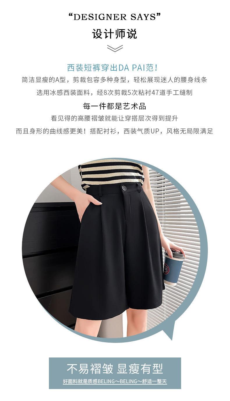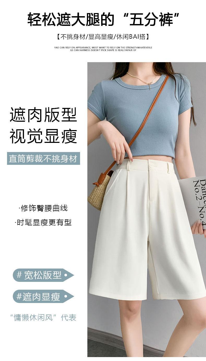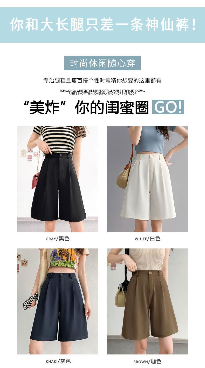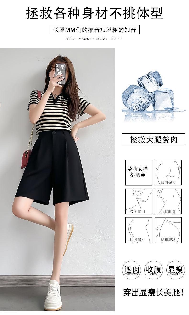 Aliexpress Más Vendido para Mujer Verano Nuevo Cintura Alta Adelgazantes Casuales Pierna Ancha Shorts de Seda Helada