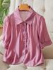 Camisa de Tencel con Cuello Solapa Manga Corta Estilo Capullo de Algodón para Mujer, Nueva de Verano 2026, Top Delgado Ajustado para Figuras Pequeñas