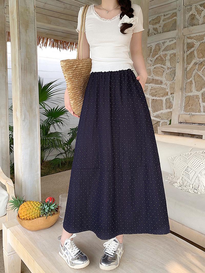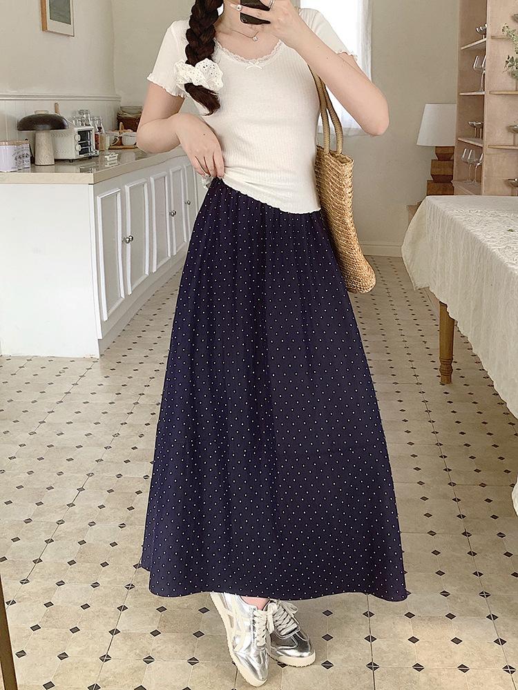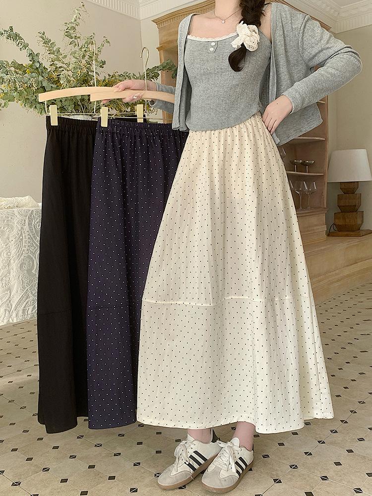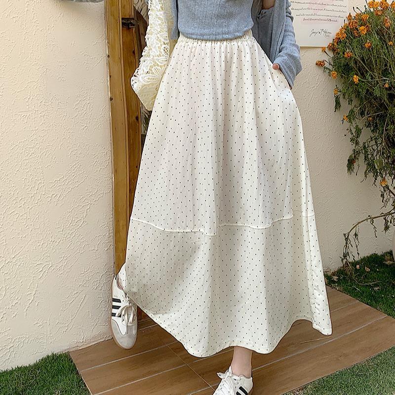 Falda Coreana Estilo Dulce de Lunares para Mujer 25 Verano Talla Grande de Alta Gama Suave Elegante Look Adelgazante Falda A-Line Falda Paraguas