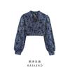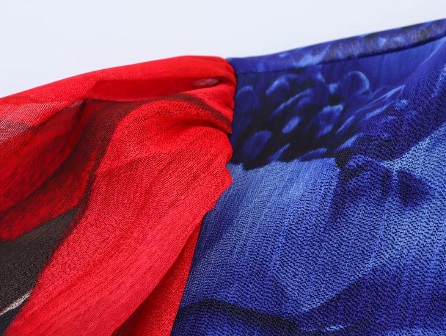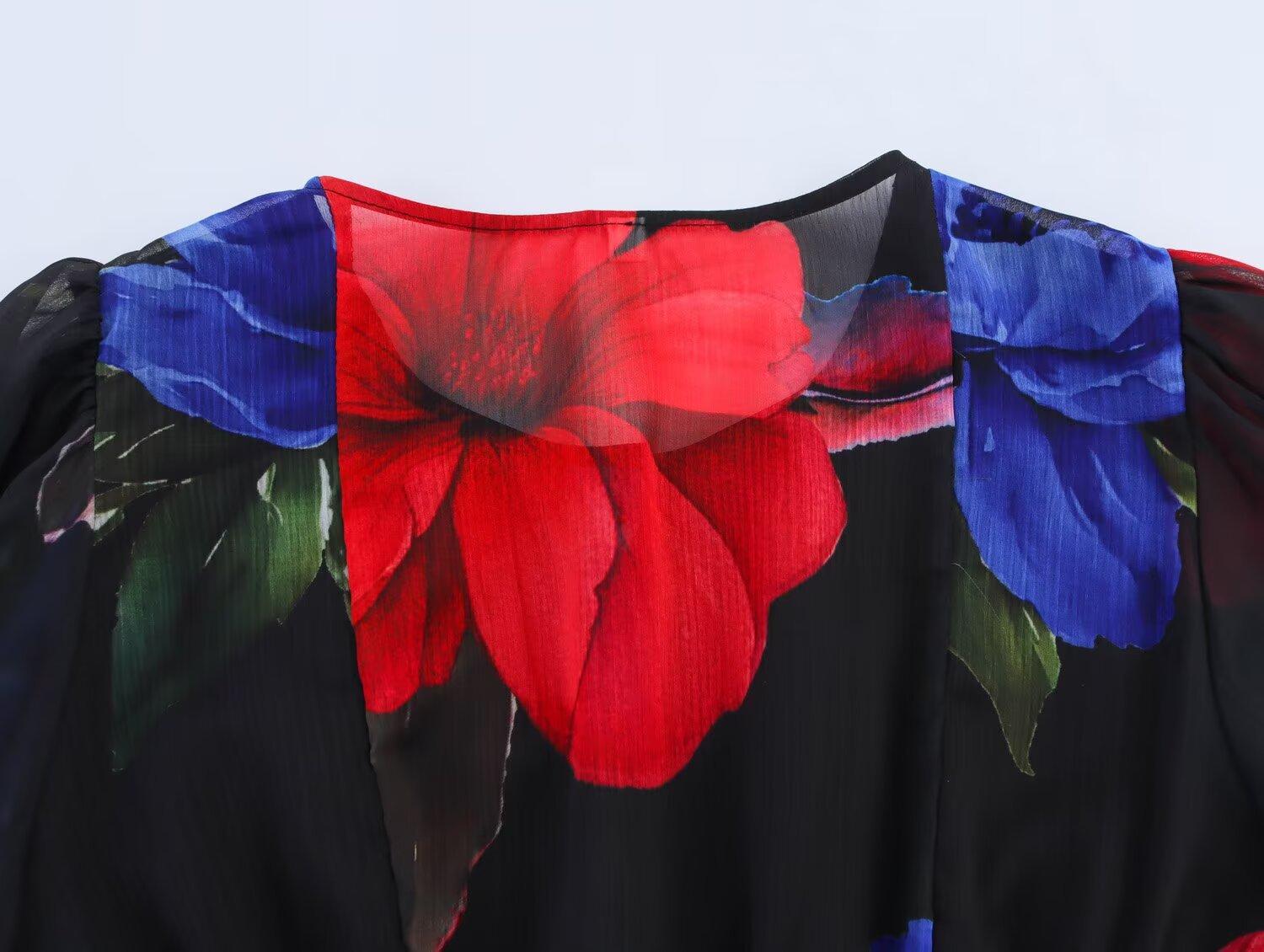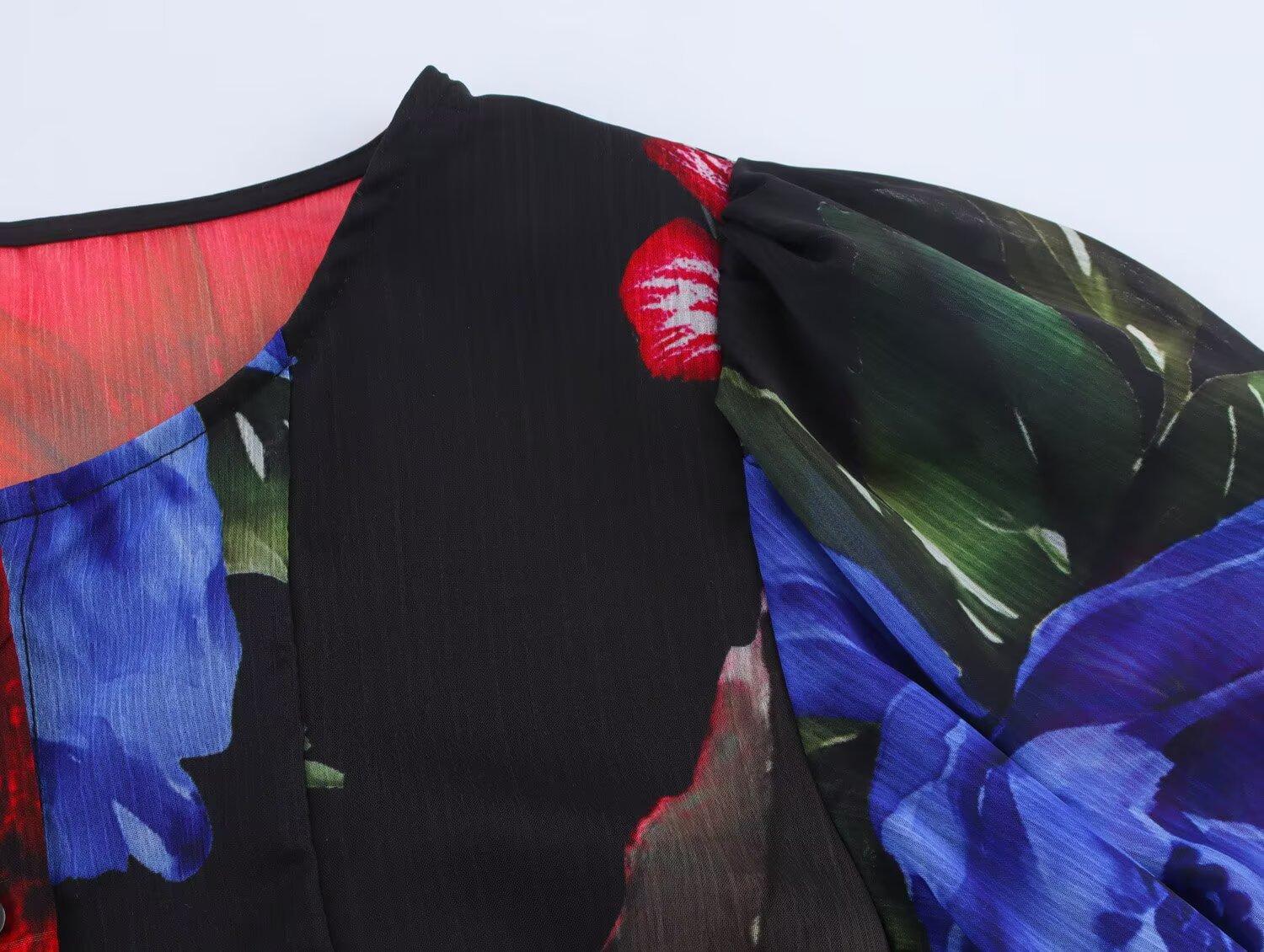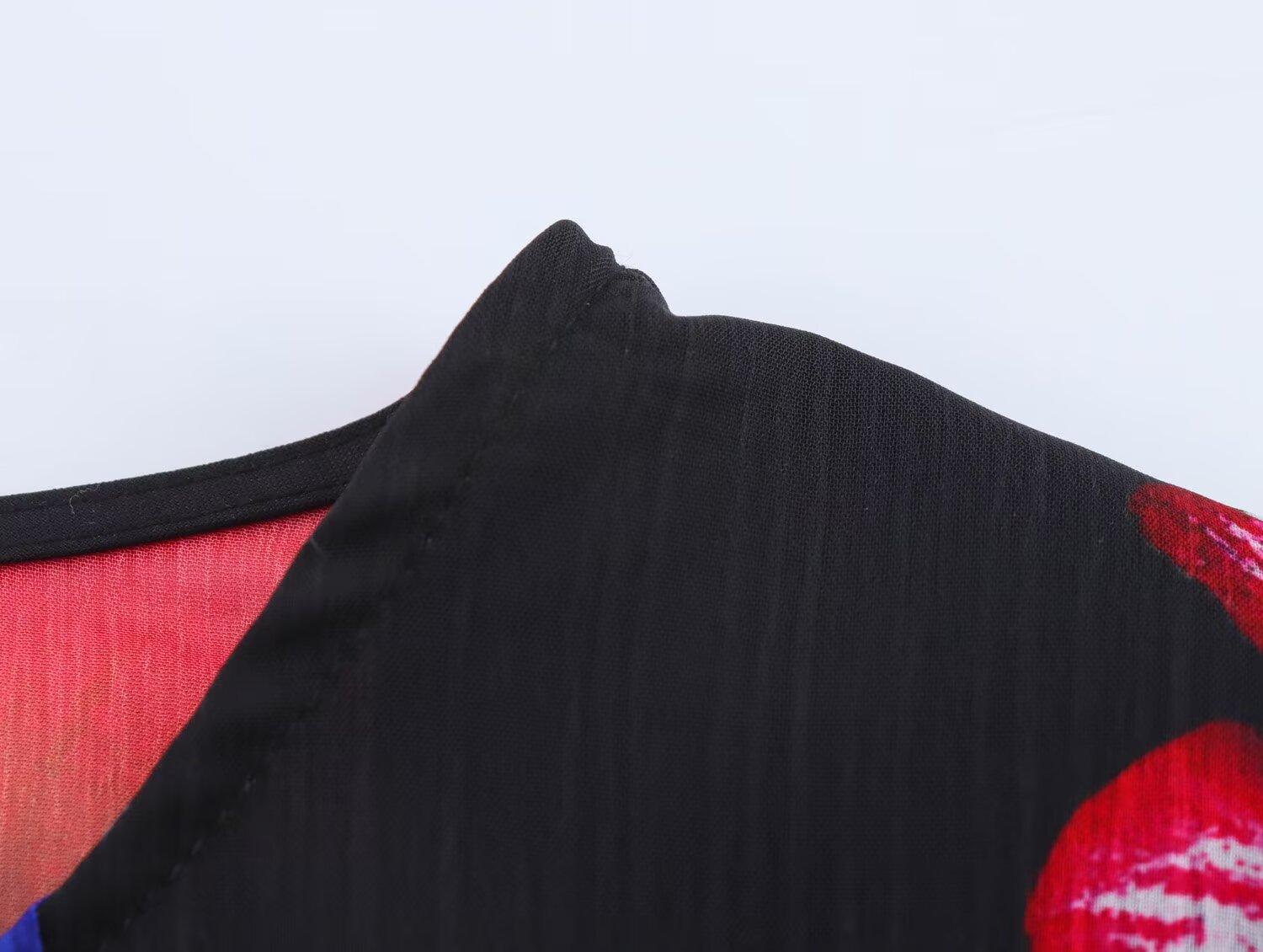 2025 Nueva Ropa de Verano para Mujer Estilo Europeo y Americano Moda Sencilla Versátil Chifón Estampado Cintura Cuello Redondo Top
