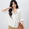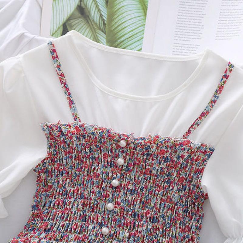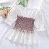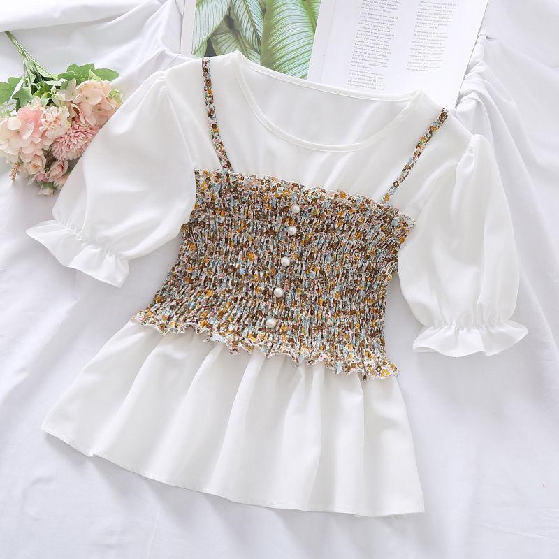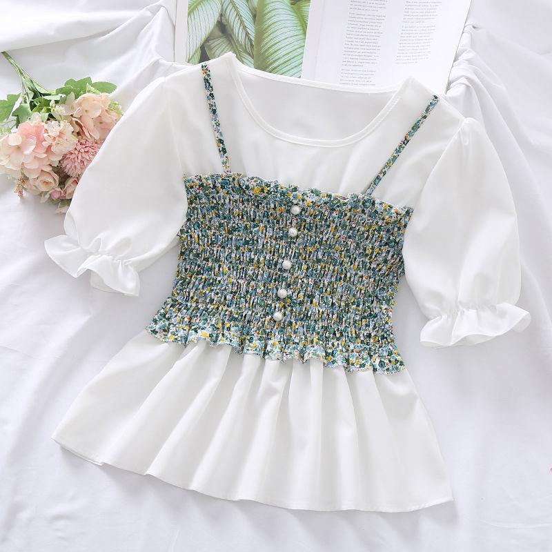 Blusa de Gasa para Mujer, Diseño Nuevo con Patchwork Floral Único, Elegante, Adelgazante, Juvenil, Versátil, Top Falso de Dos Piezas