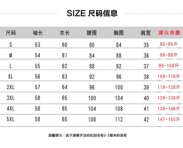 S, M, L, XL, XXL, 3XL, 4XL, 5XL