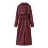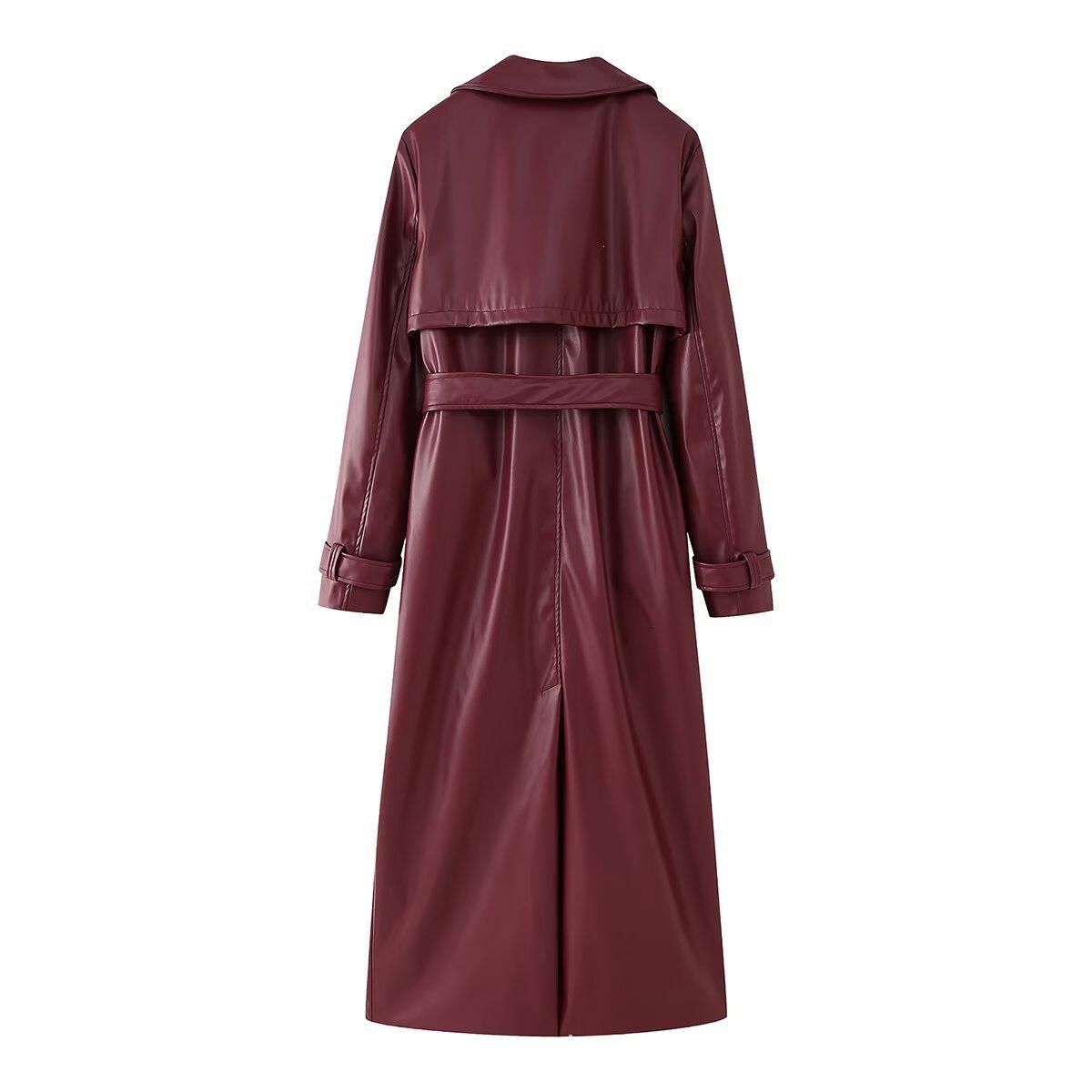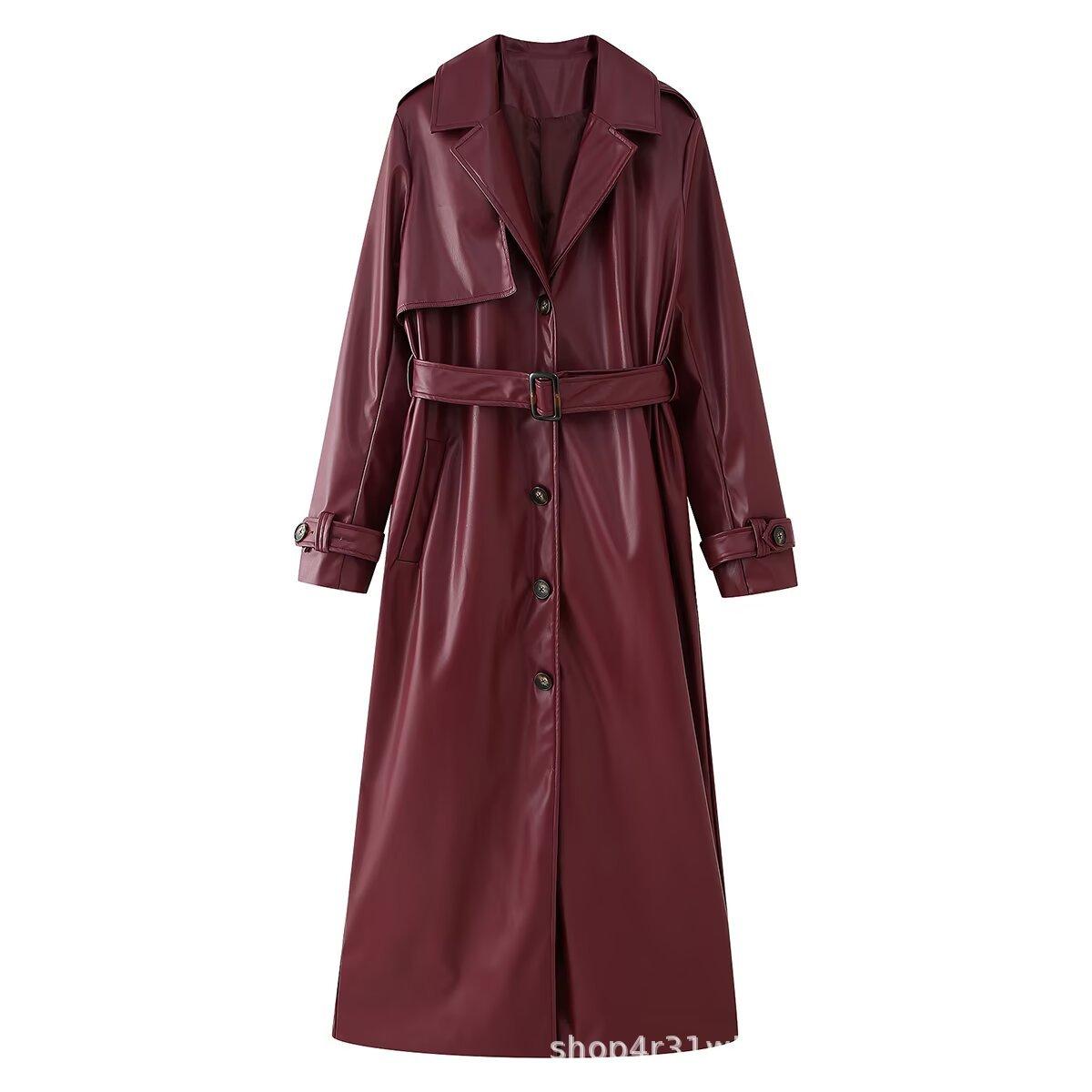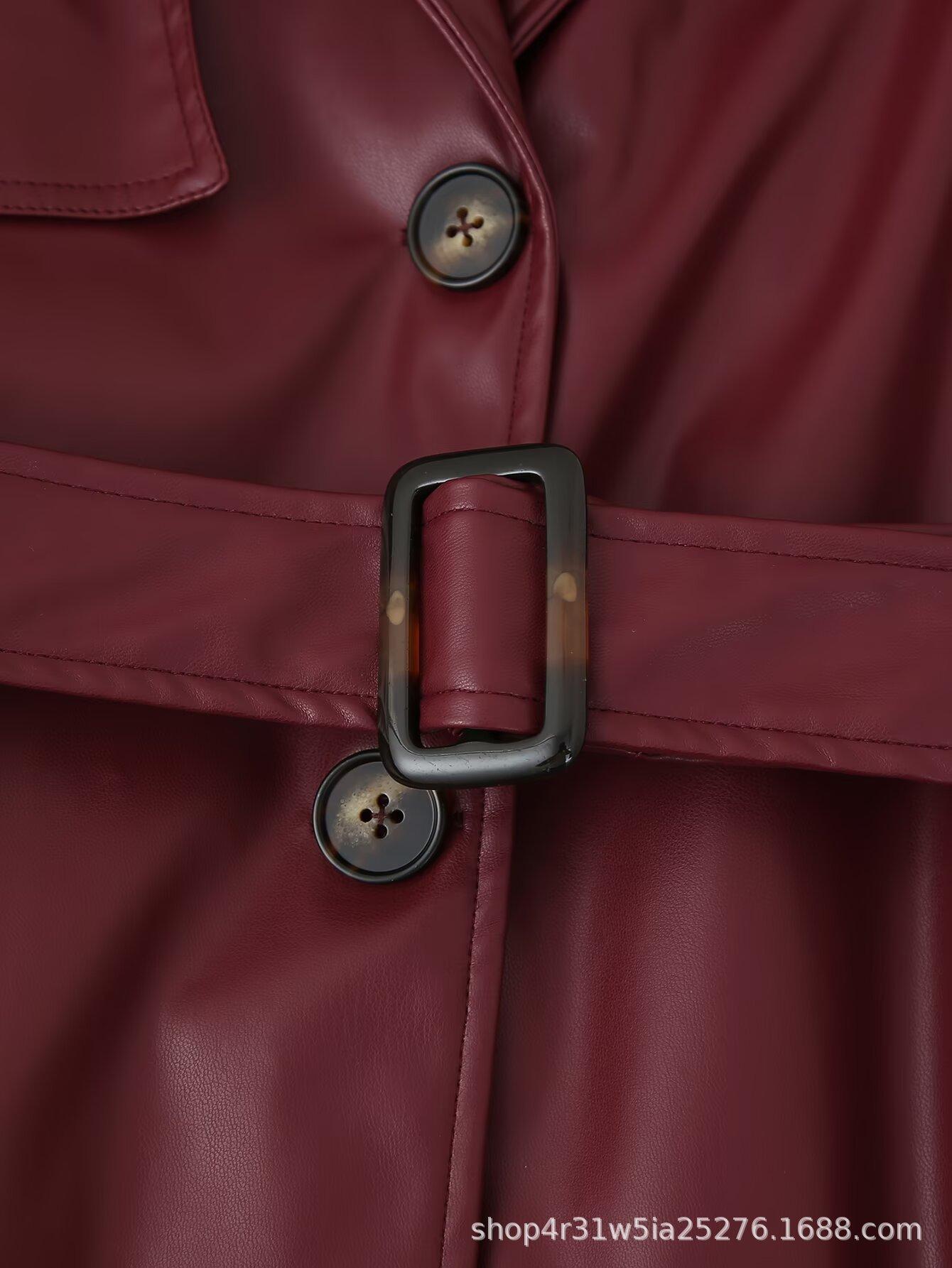Europa y Estados Unidos Amazon venta al por mayor transfronteriza 2024 invierno nuevo abrigo trench largo de imitación cuero con solapa y cinturón para mujer