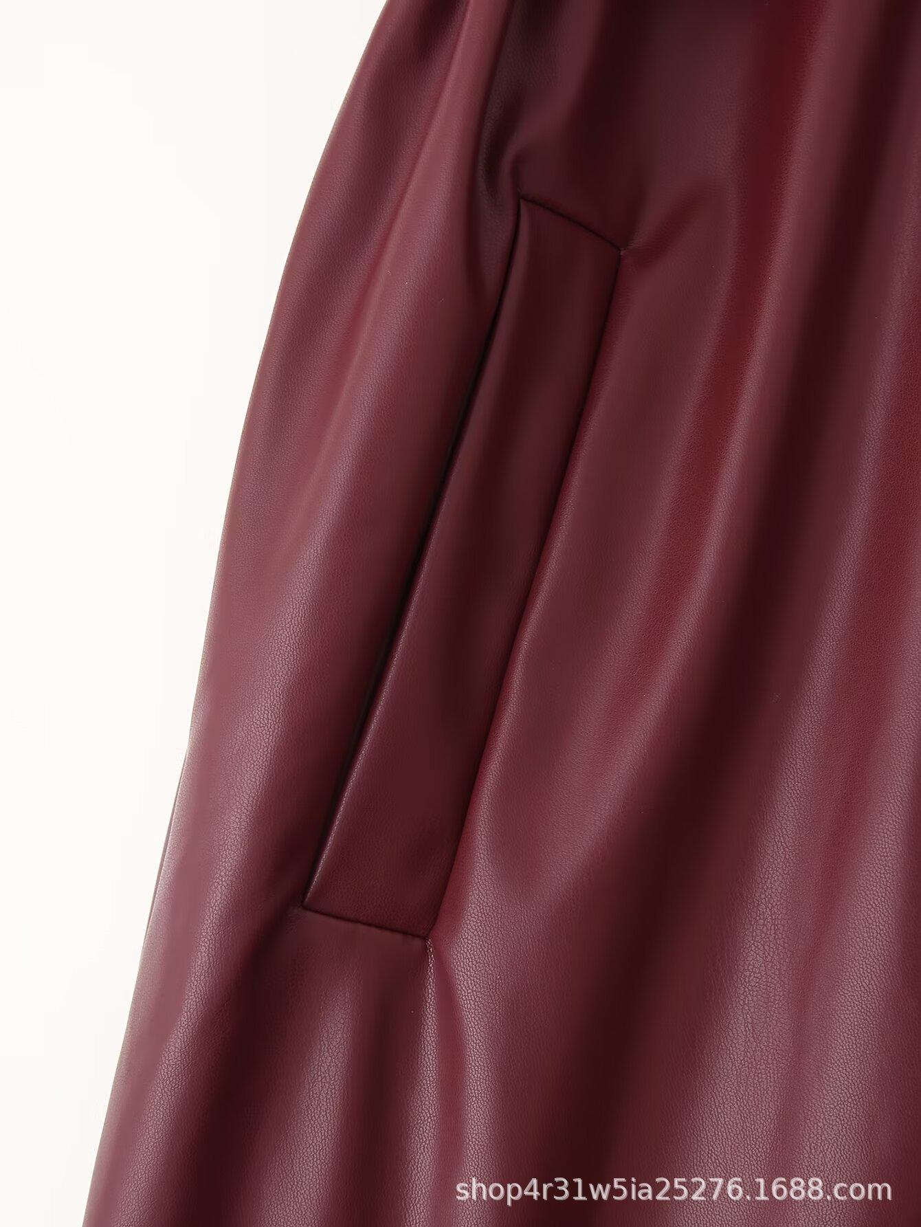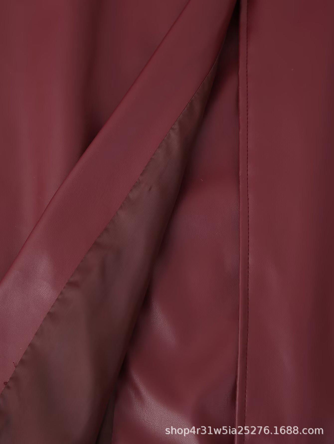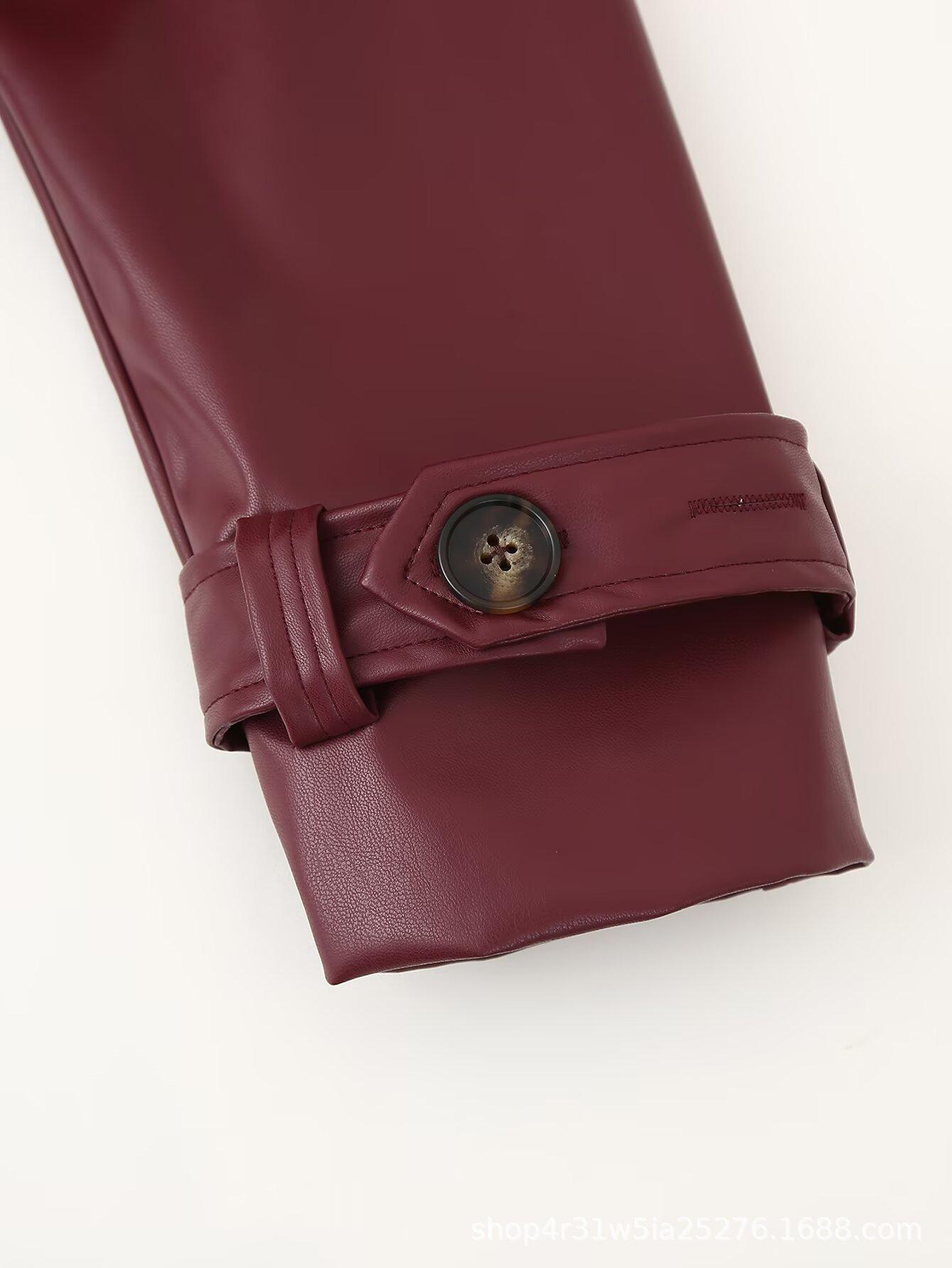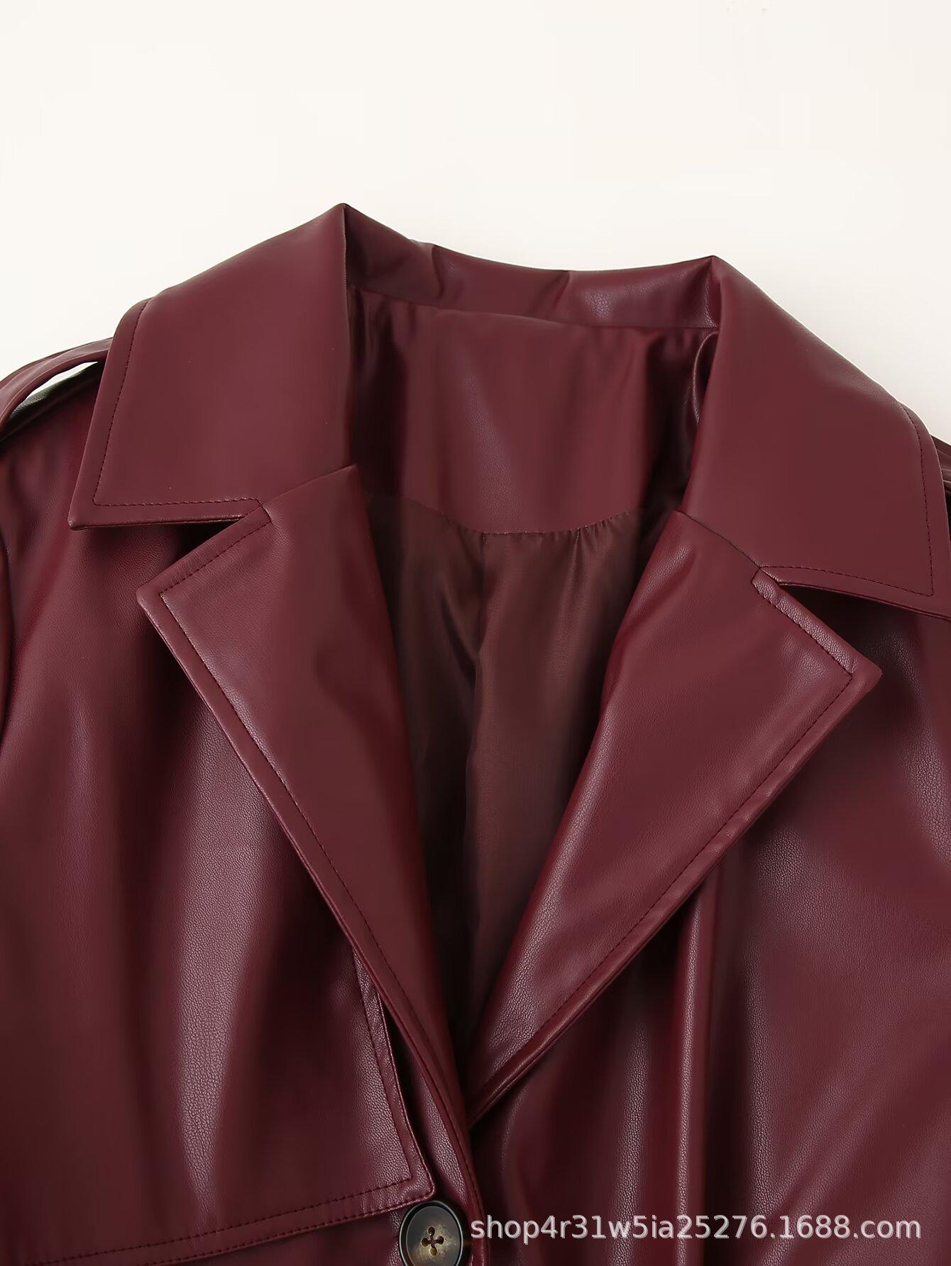 Europa y Estados Unidos Amazon venta al por mayor transfronteriza 2024 invierno nuevo abrigo trench largo de imitación cuero con solapa y cinturón para mujer