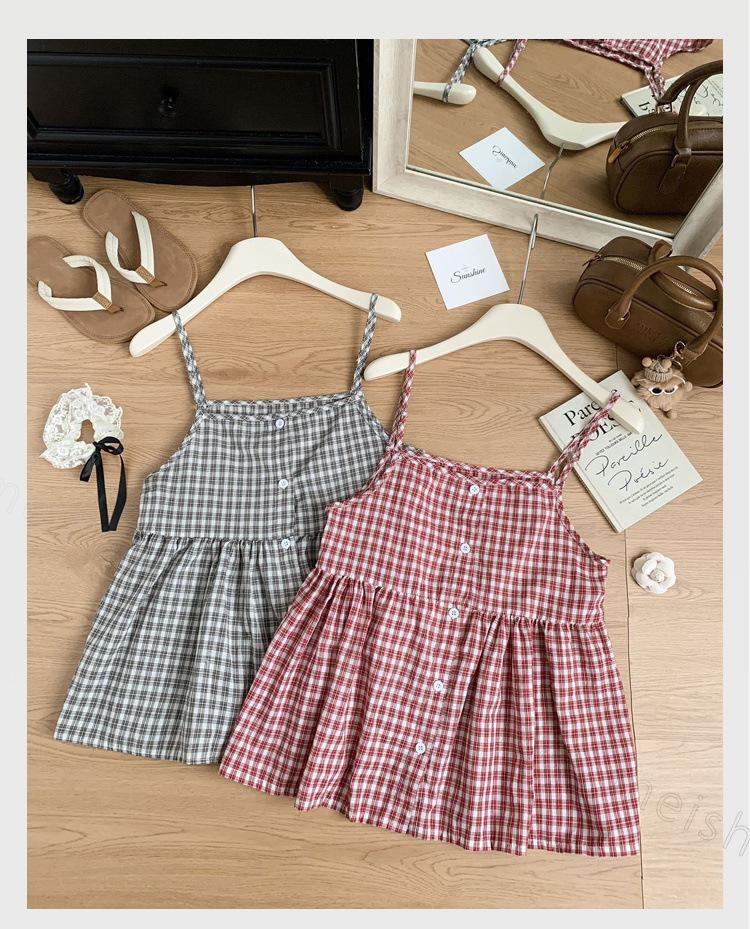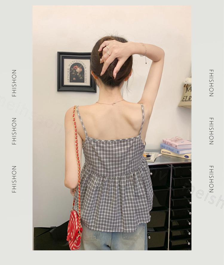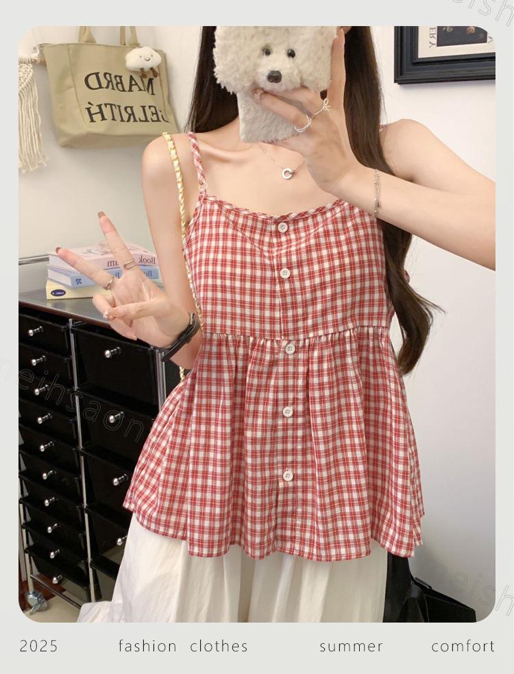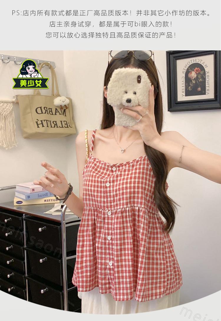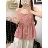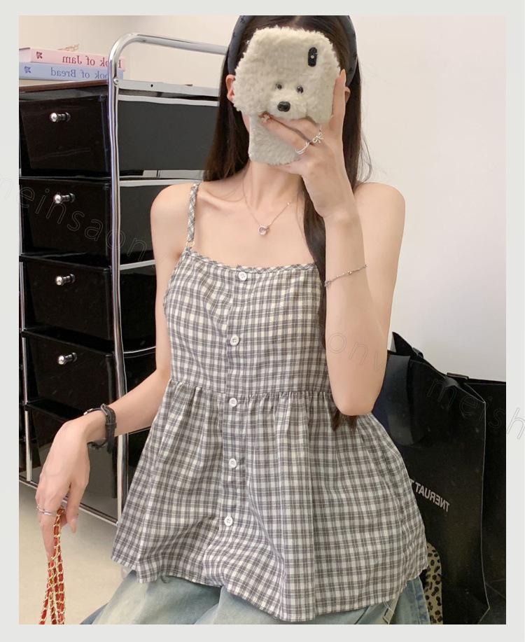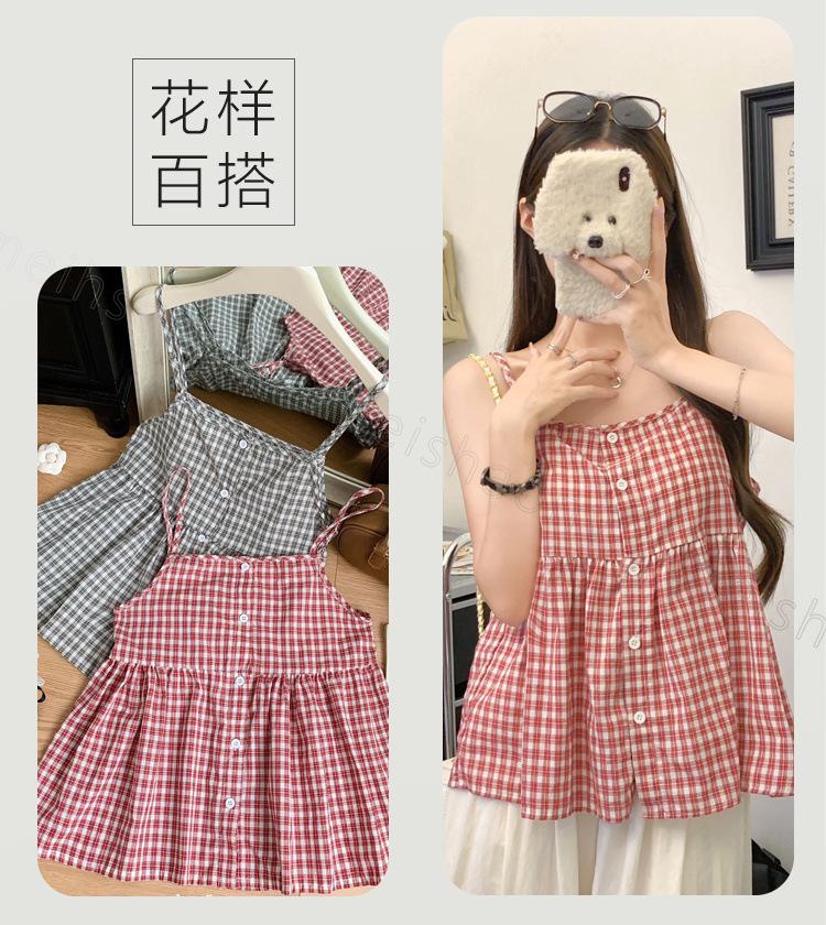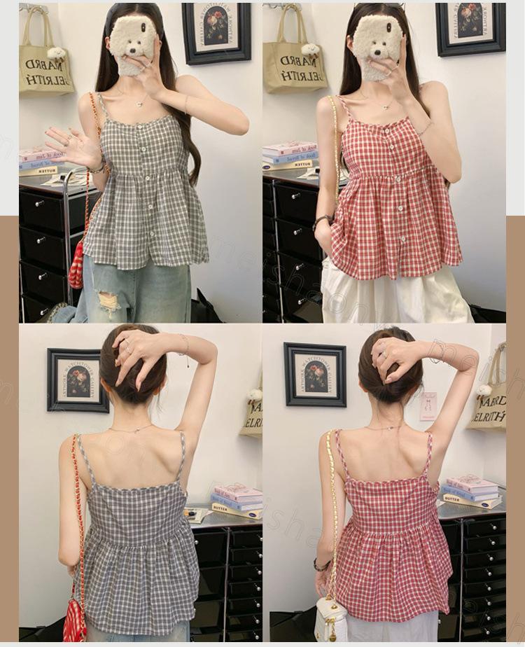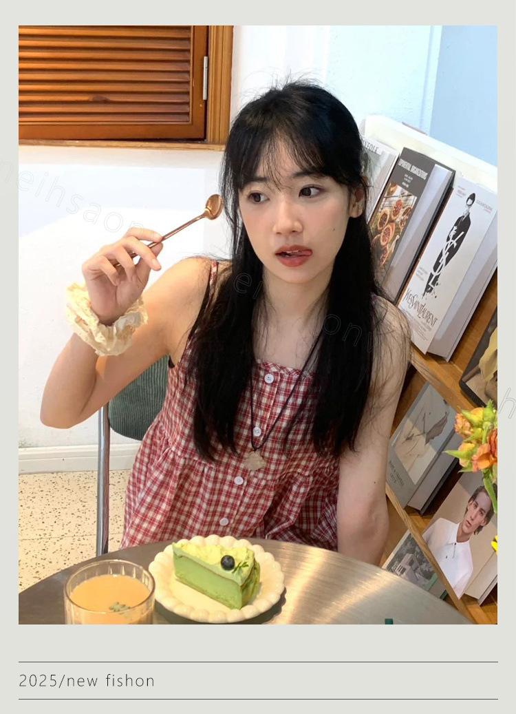 Verano Nuevo Dulce Chaleco de Tirantes a Cuadros Diseño Nicho Sin Mangas Top Exterior Chica Hot
