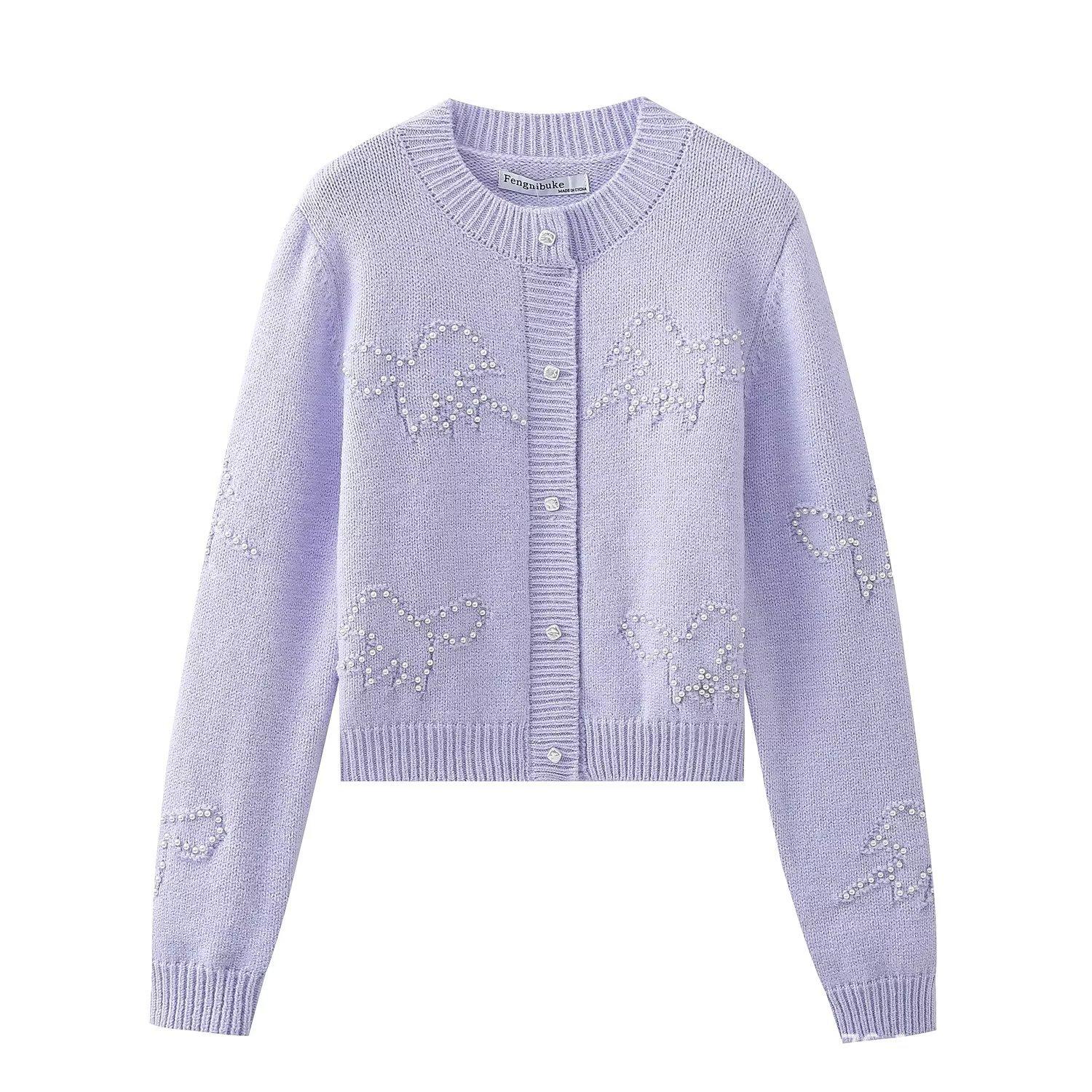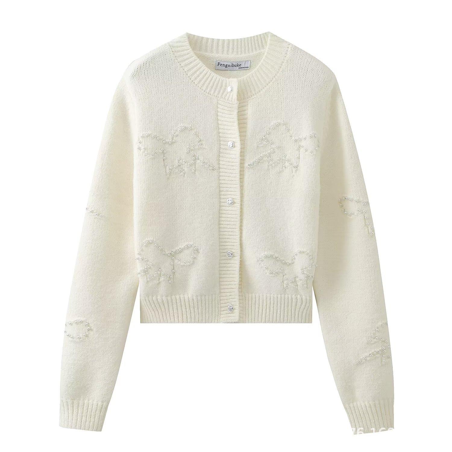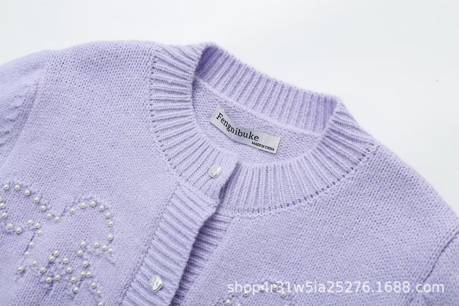 Venta al por mayor transfronteriza 2023 otoño e invierno nueva ropa de mujer diseño de temperamento a la moda suéter cárdigan de punto de cuello redondo