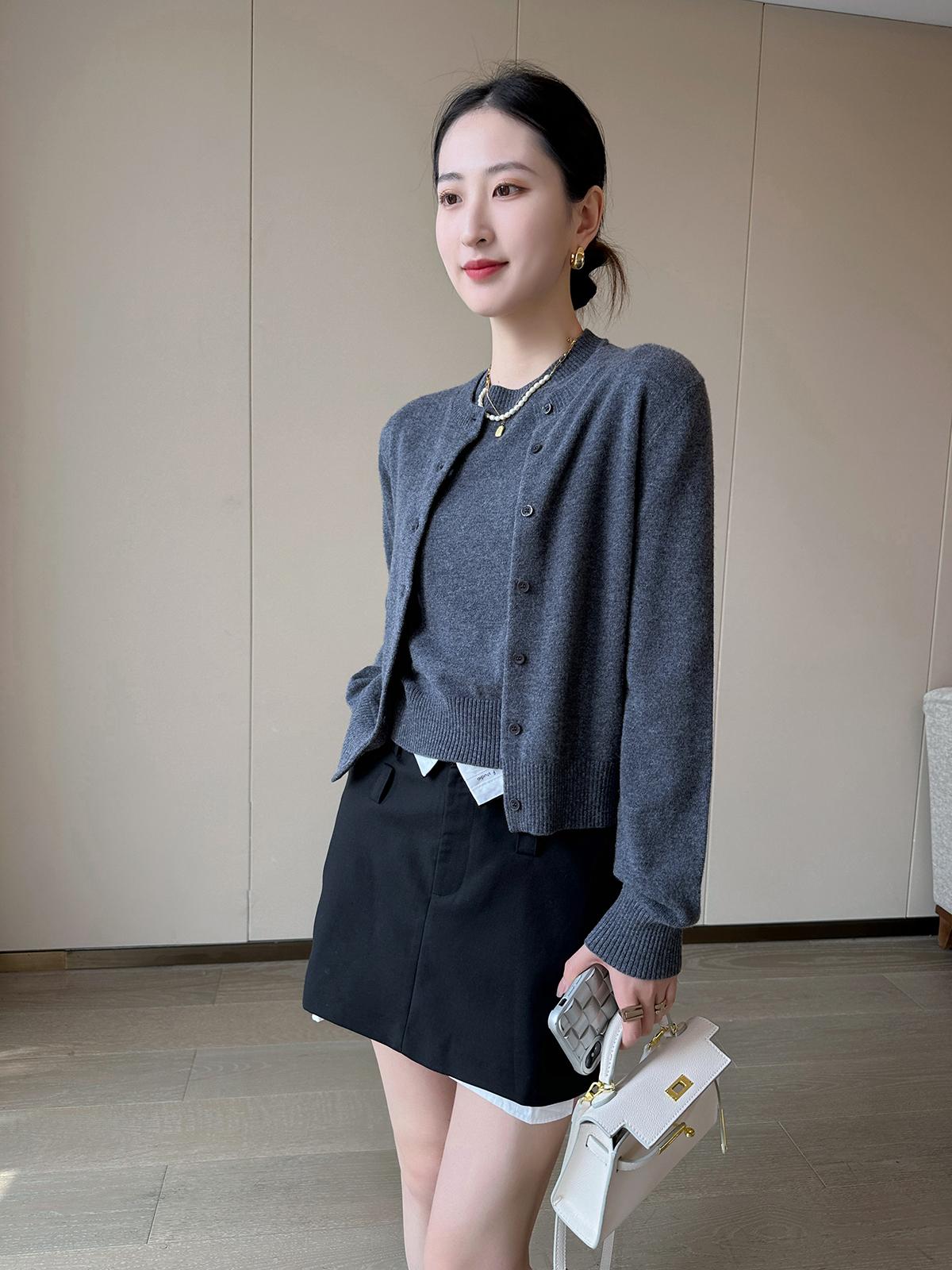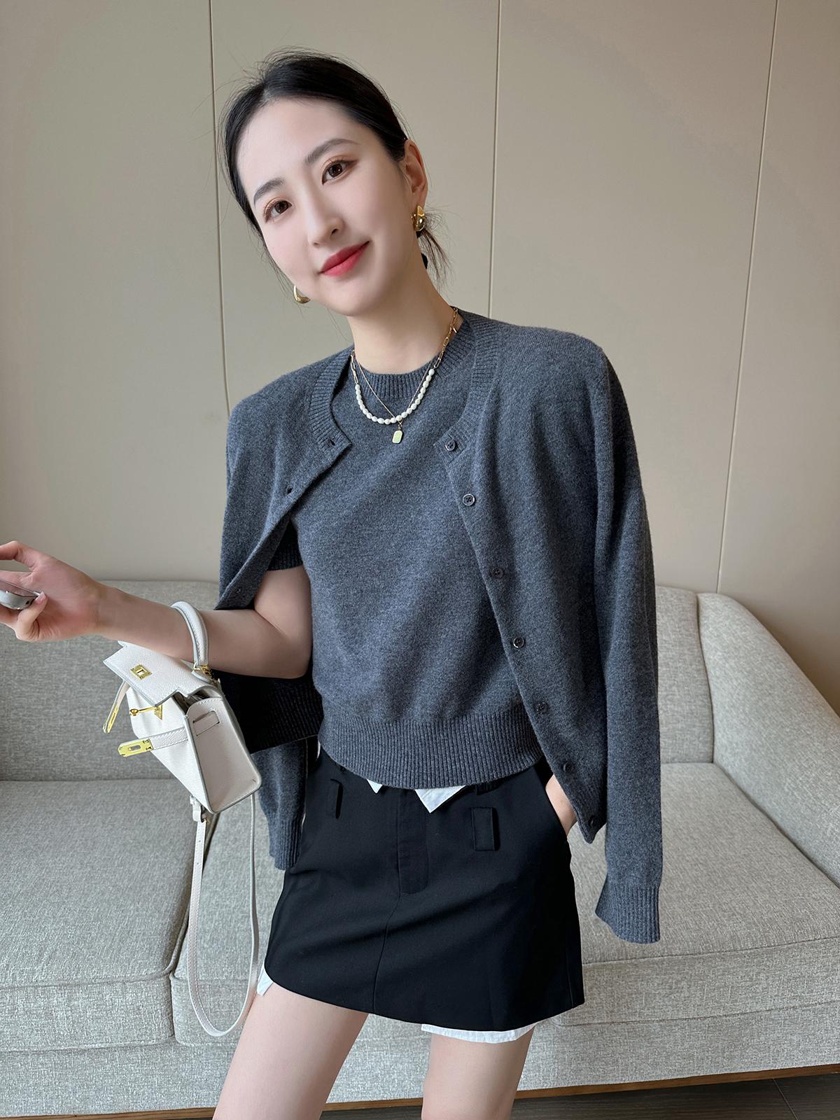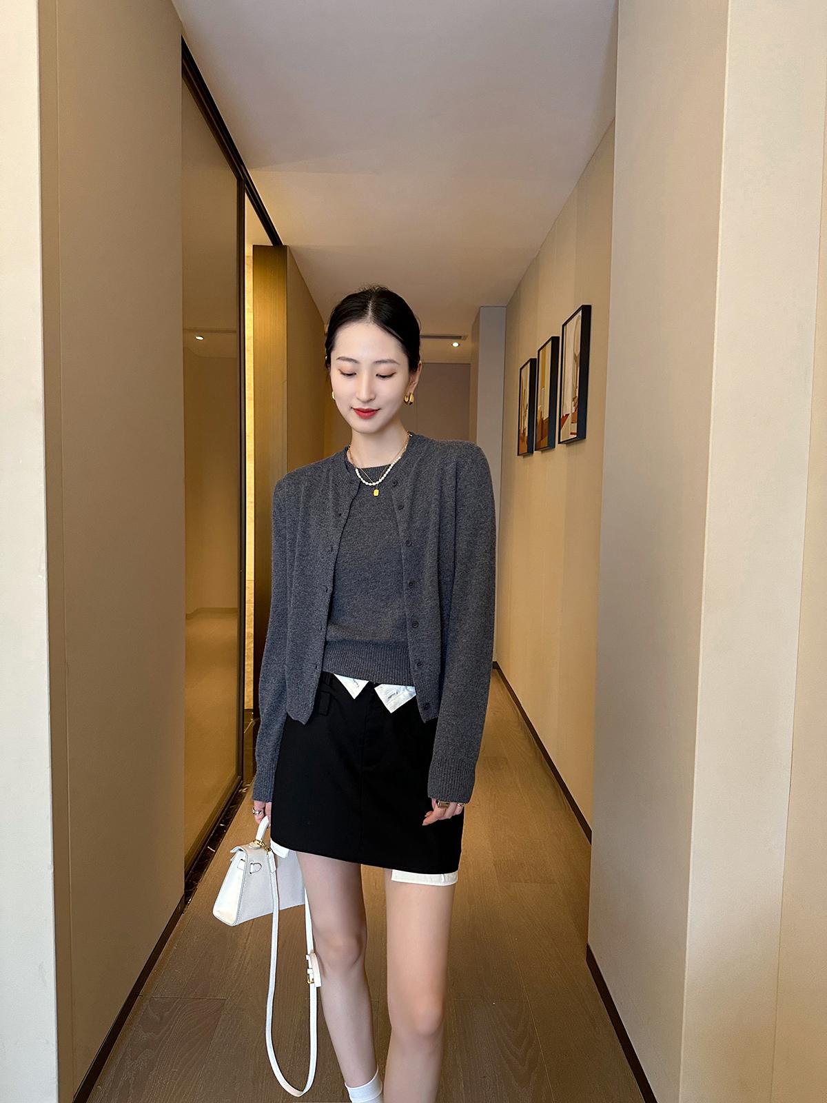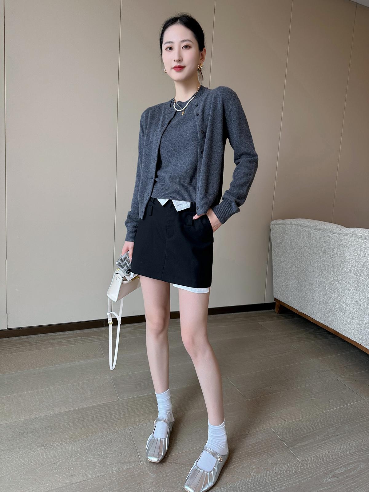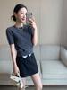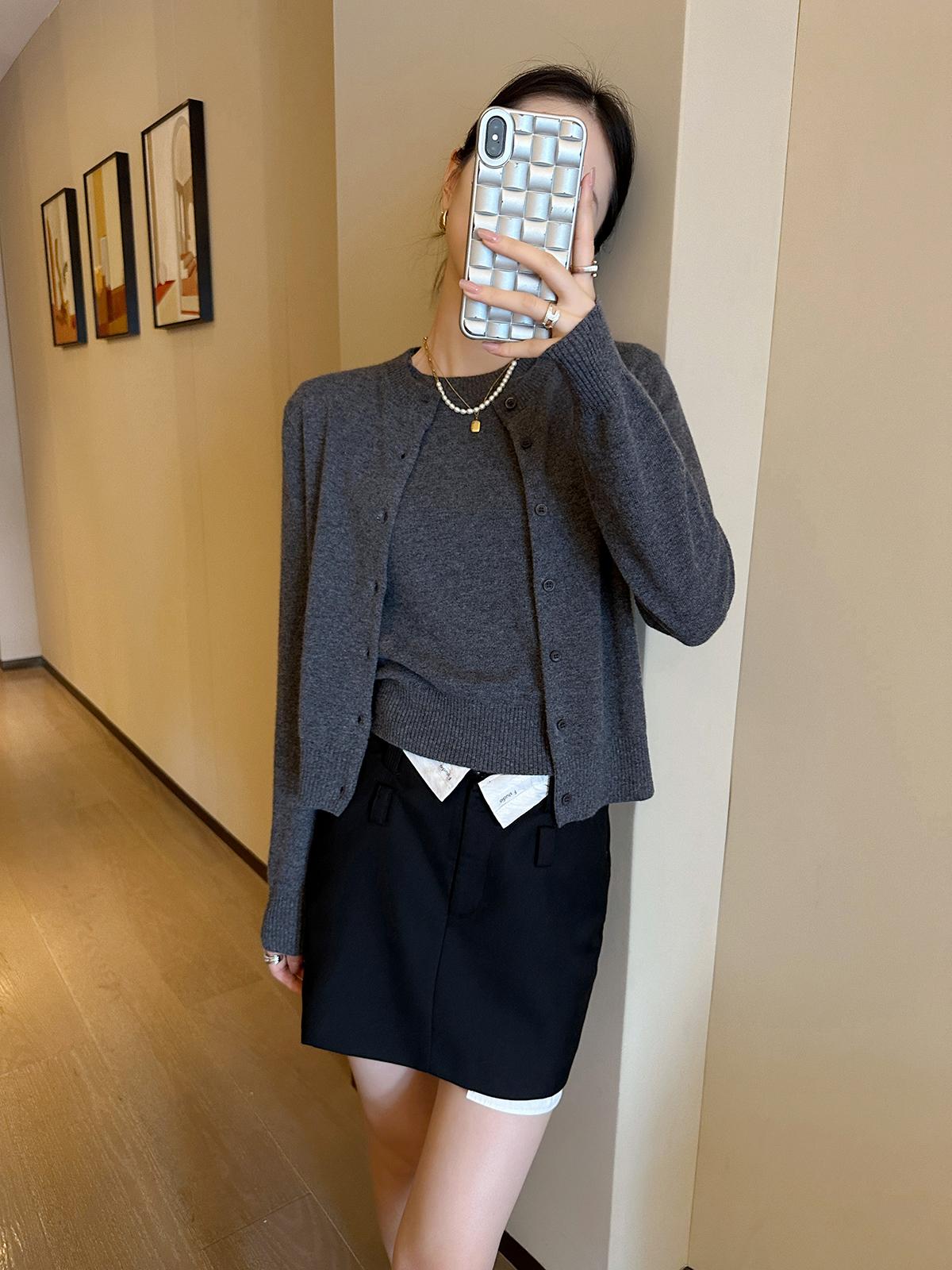 Fábrica de Ropa Jinya Cuello Redondo Estilo Old Money Tejido Manga Corta Mujer Otoño 2025 Nuevo Temperamento Cárdigan Ajustado Conjunto de Dos Piezas