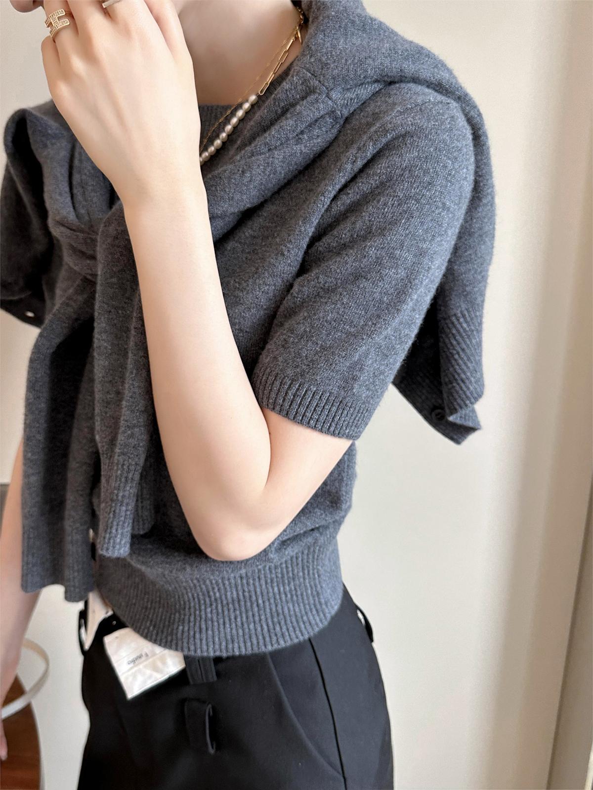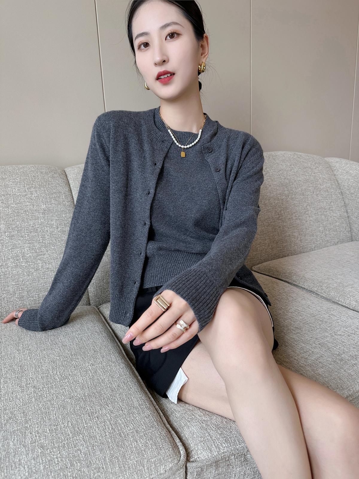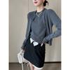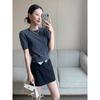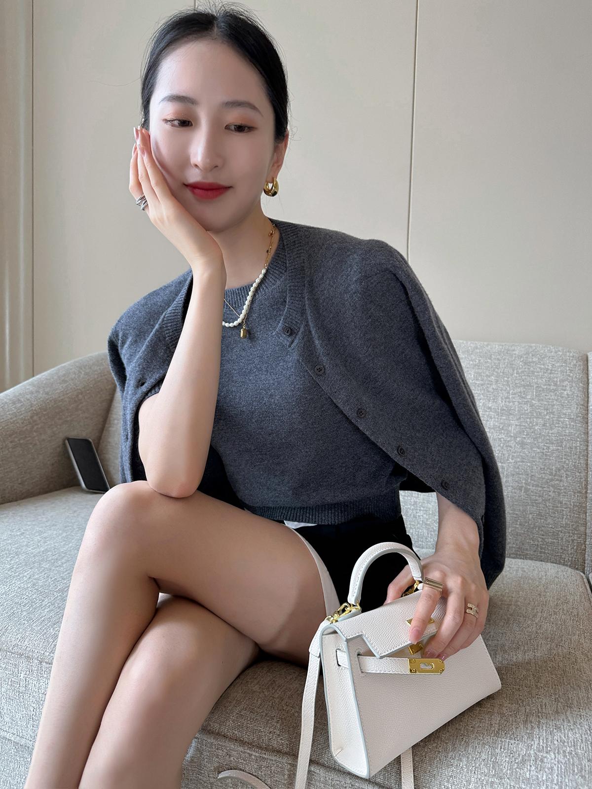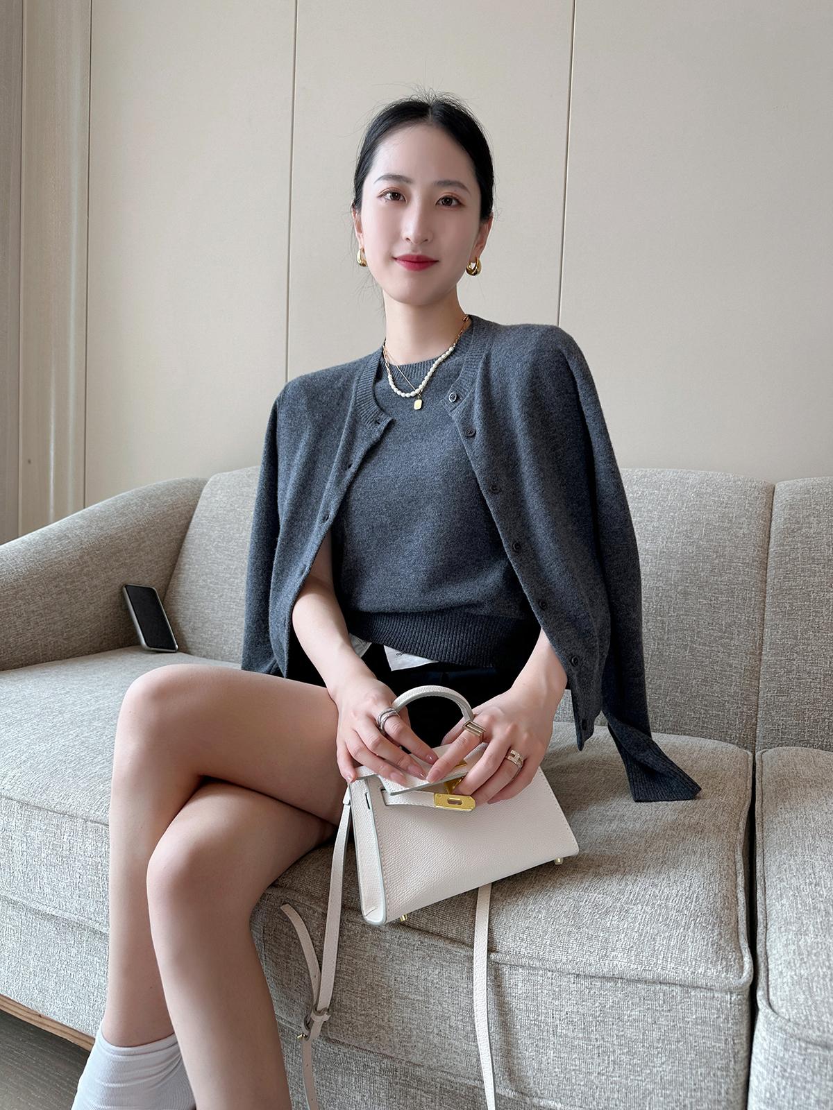 Fábrica de Ropa Jinya Cuello Redondo Estilo Old Money Tejido Manga Corta Mujer Otoño 2025 Nuevo Temperamento Cárdigan Ajustado Conjunto de Dos Piezas