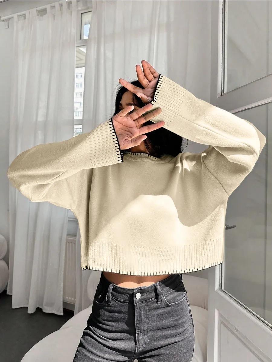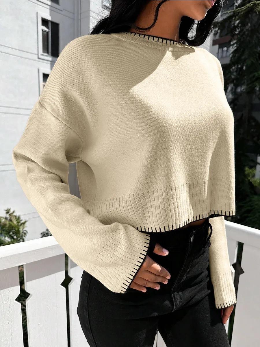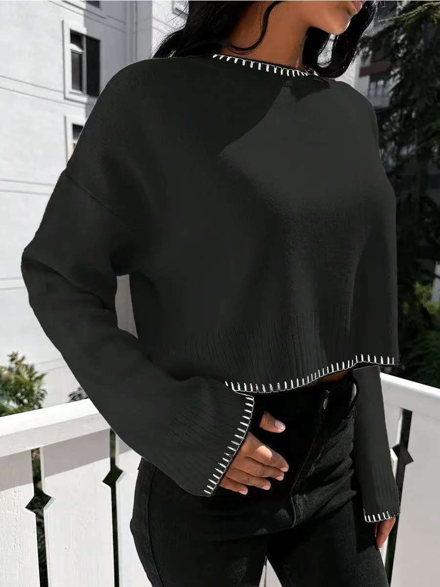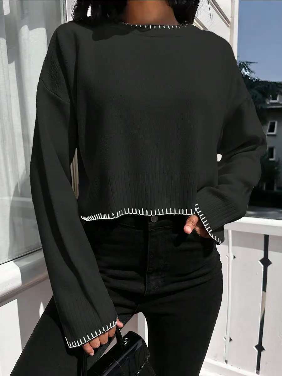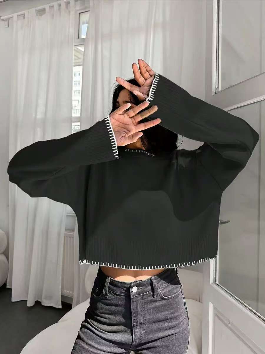 Amazon Transfronterizo Estación Independiente Punto de Contraste de Cintura Alta para Mujer 2025 Principios de Otoño Nuevo Tejido de Punto Holgado Corto