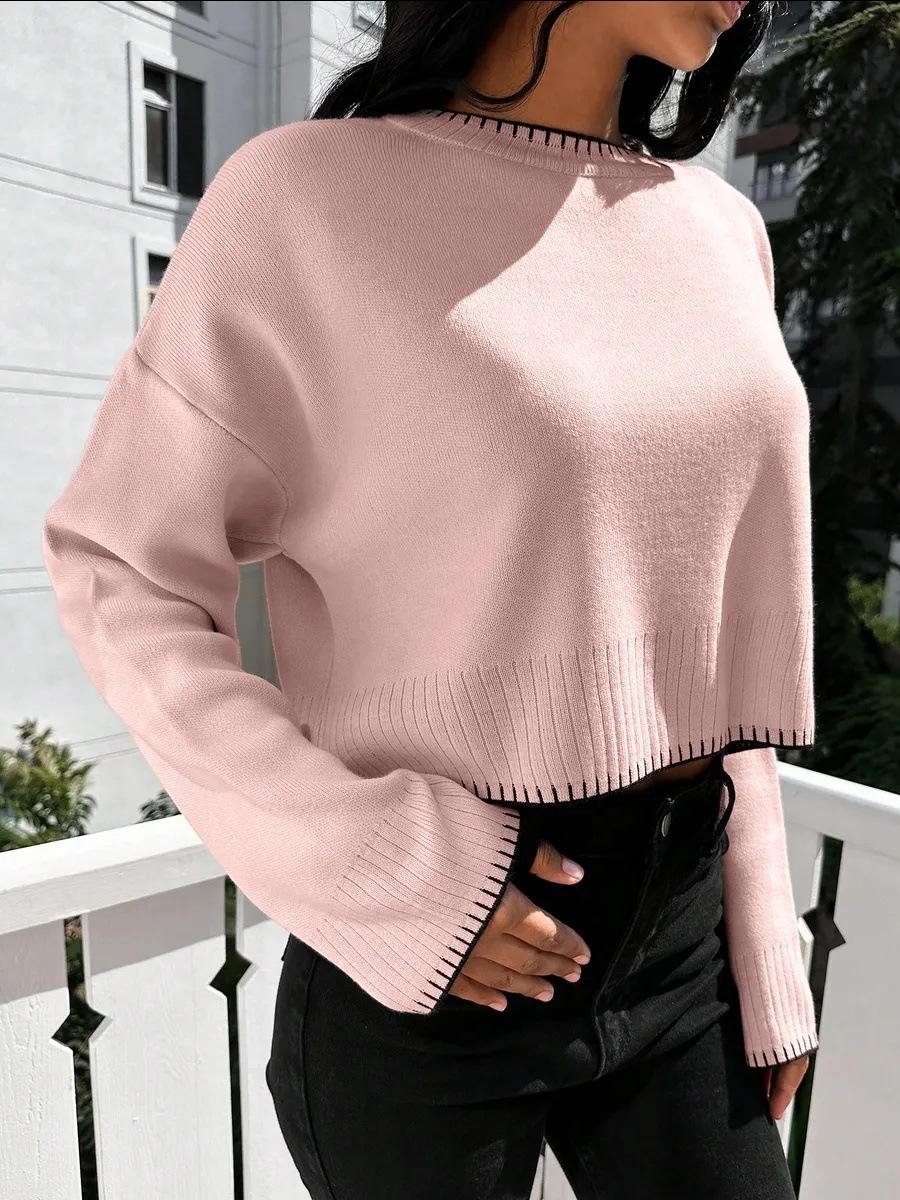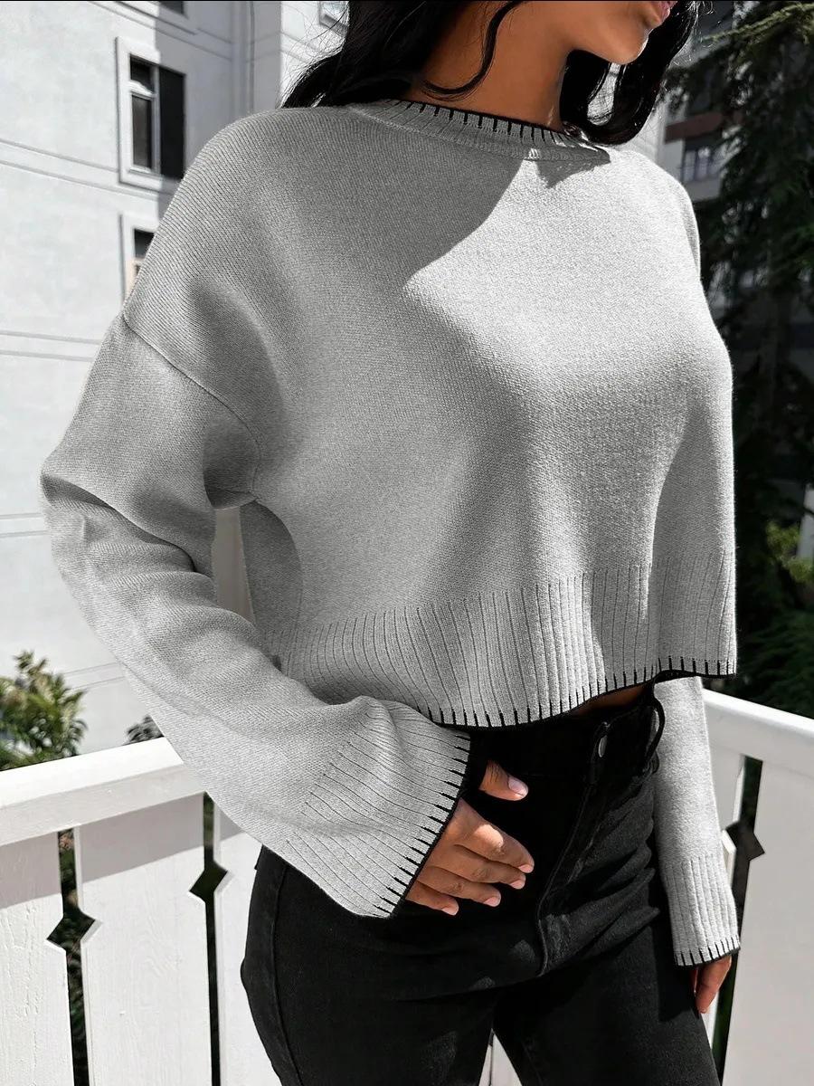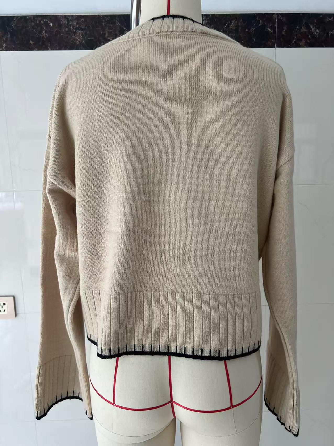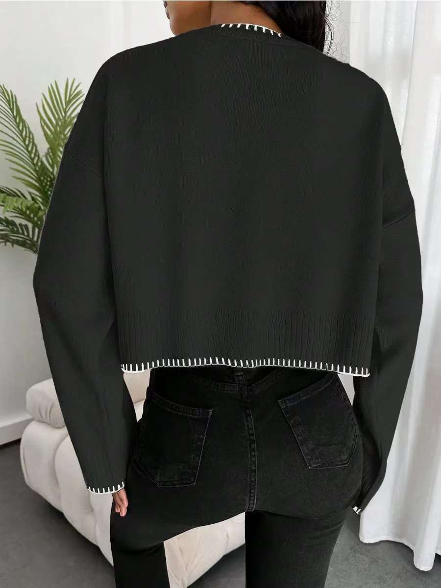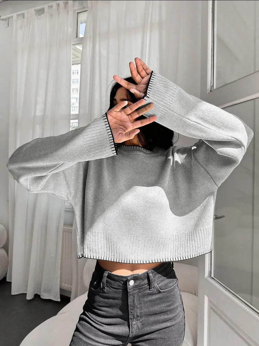 Amazon Transfronterizo Estación Independiente Punto de Contraste de Cintura Alta para Mujer 2025 Principios de Otoño Nuevo Tejido de Punto Holgado Corto