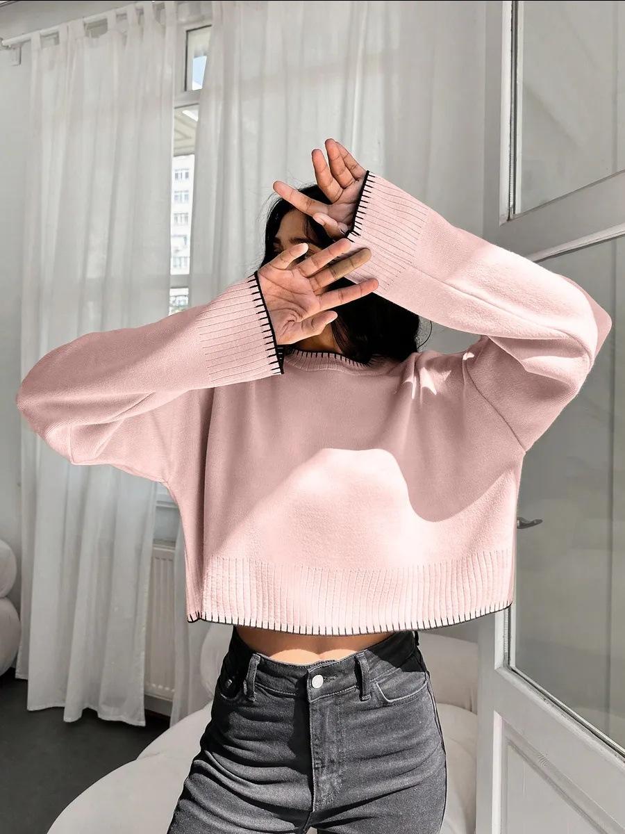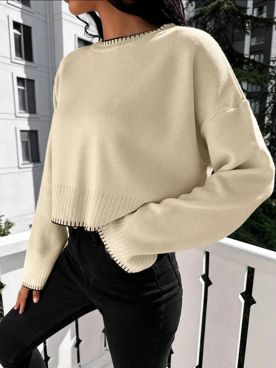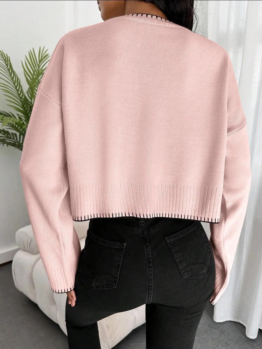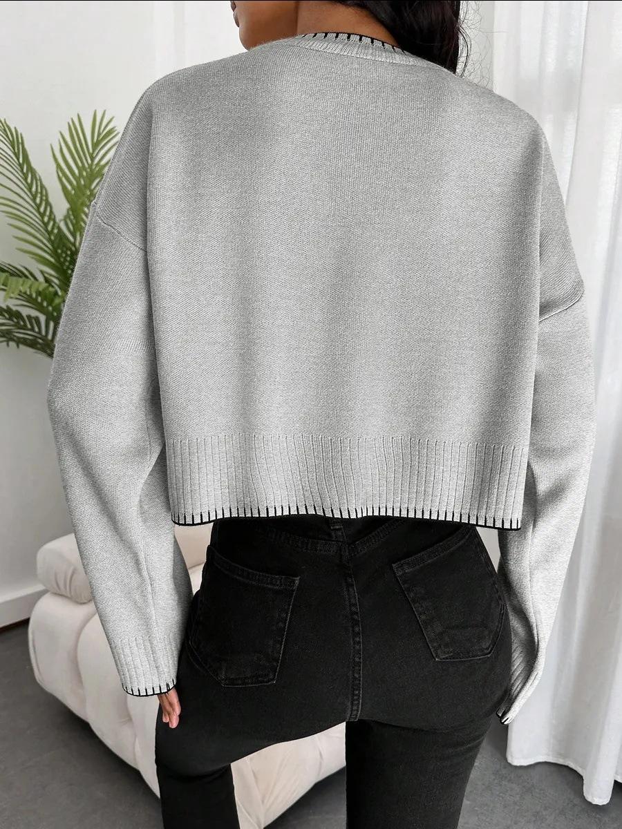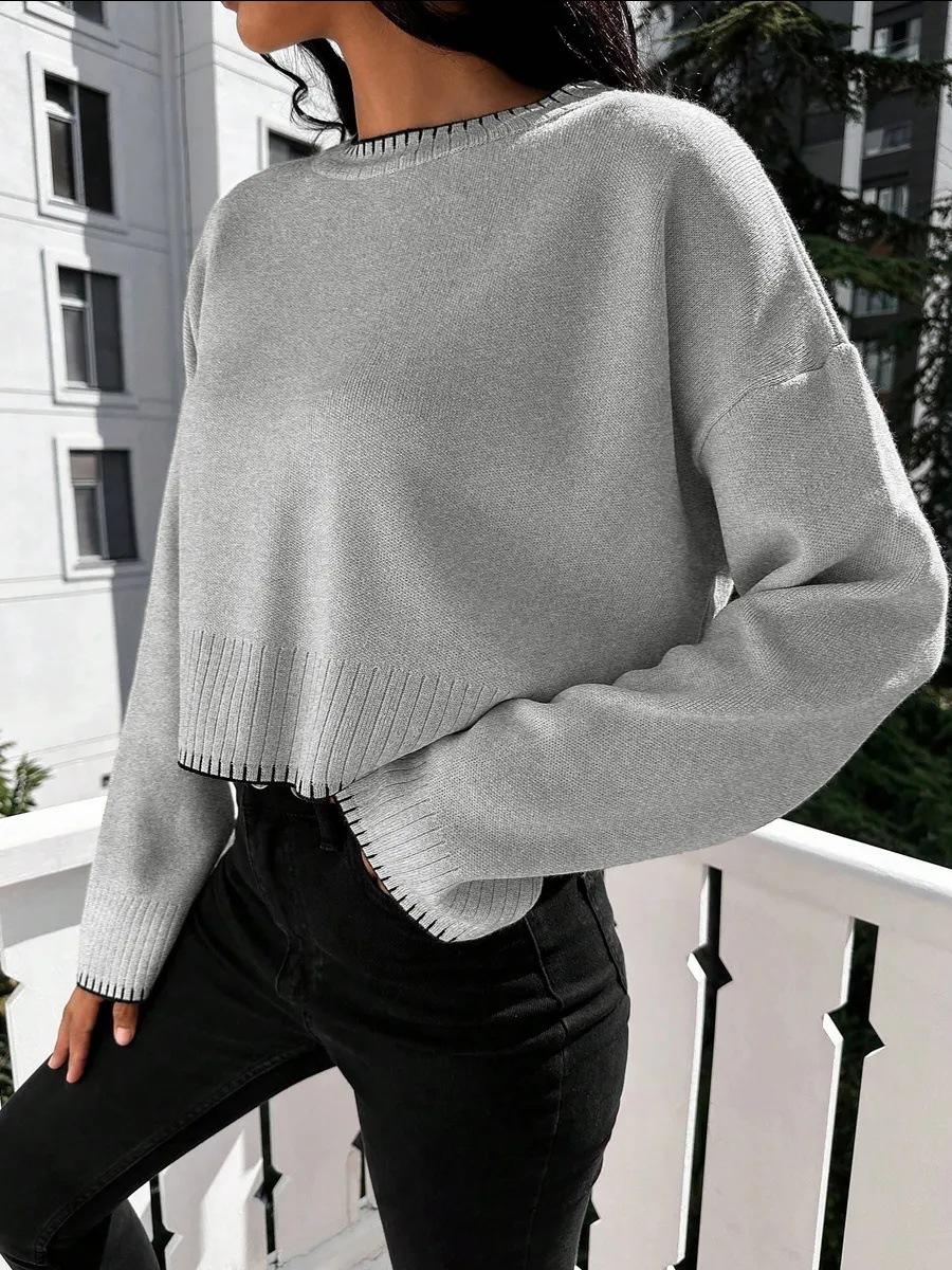 Amazon Transfronterizo Estación Independiente Punto de Contraste de Cintura Alta para Mujer 2025 Principios de Otoño Nuevo Tejido de Punto Holgado Corto