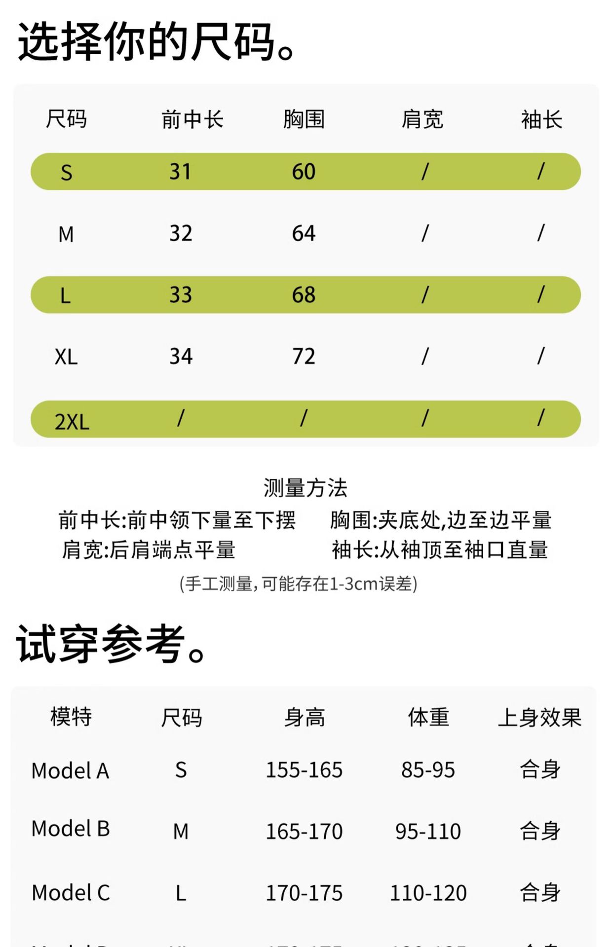S, M, L, XL