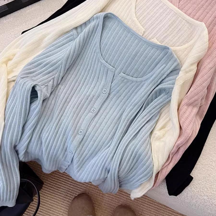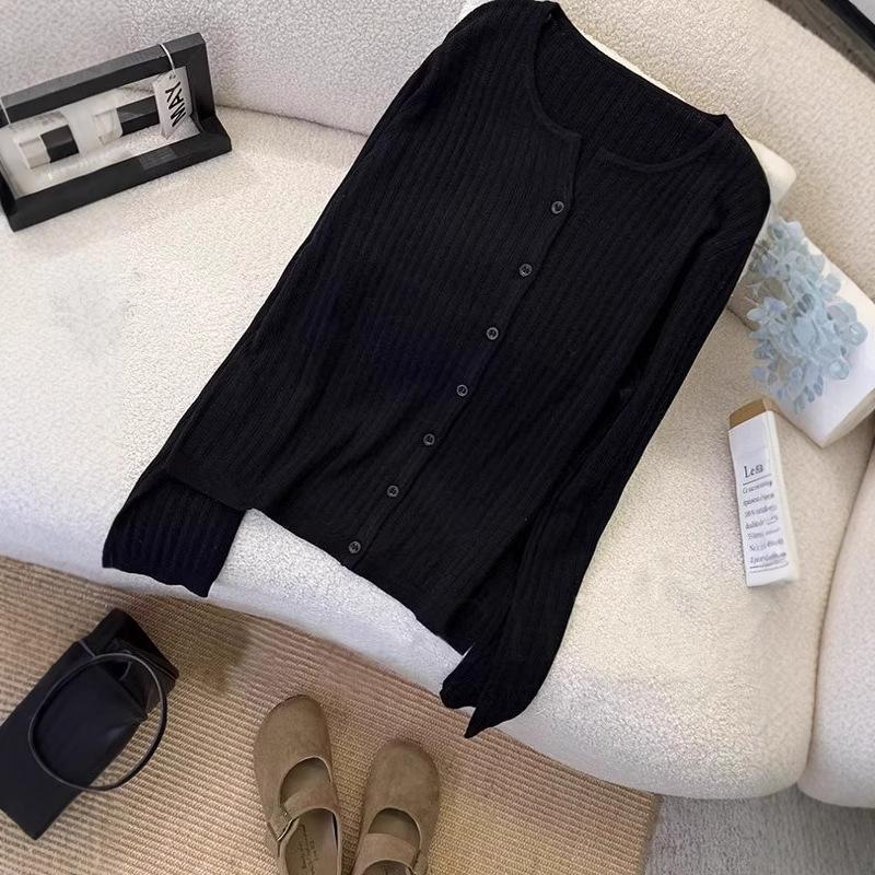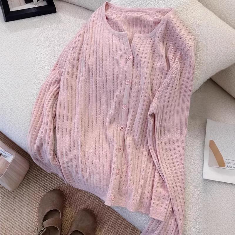 Cárdigan de punto de manga larga estilo coreano estilo holgazán para mujer 2025 Primavera Nuevo estilo caliente Sencillo y versátil Estilo extranjero Suéter fino