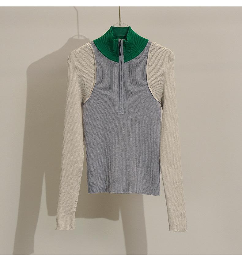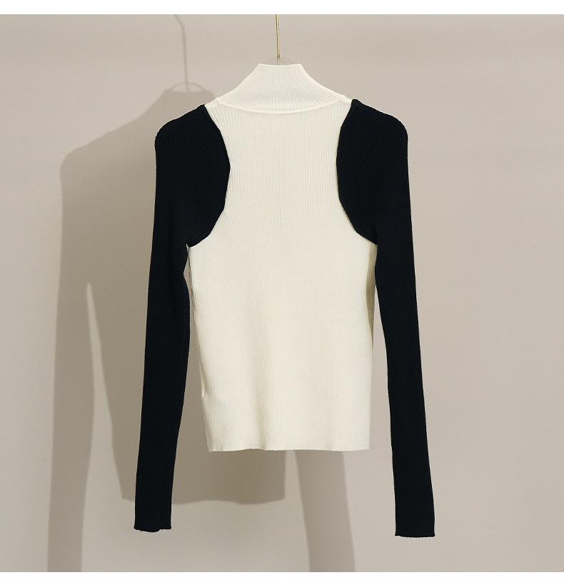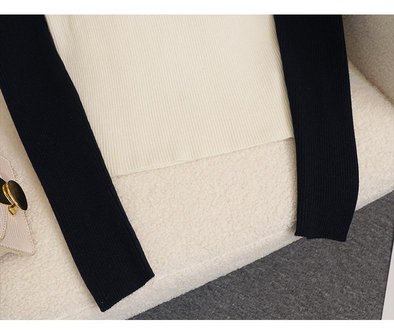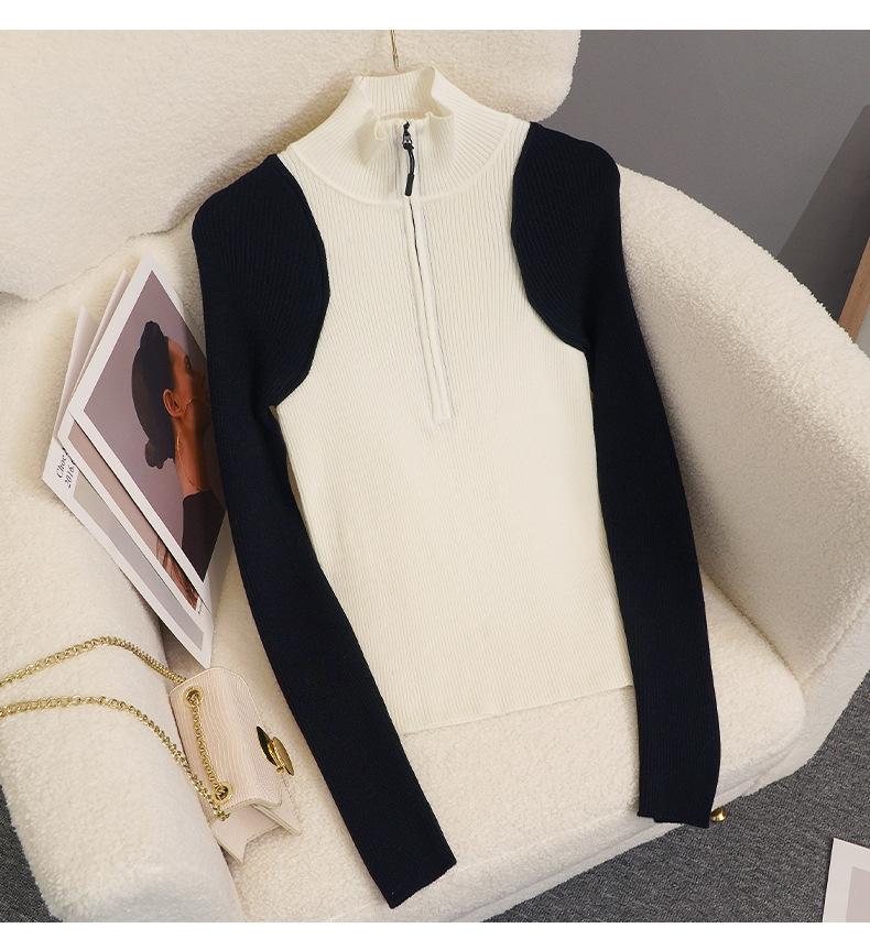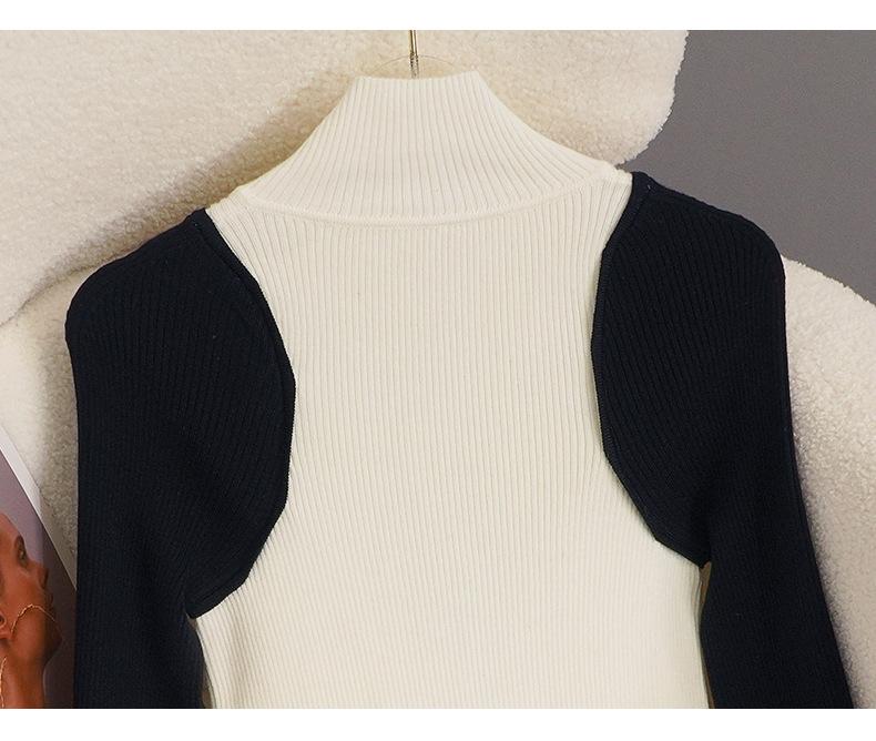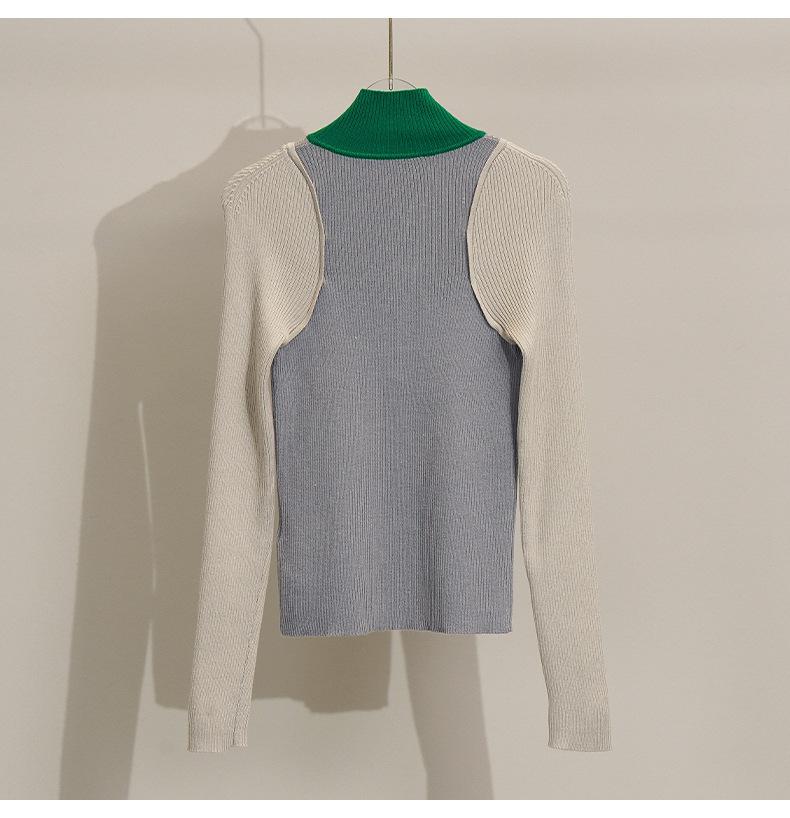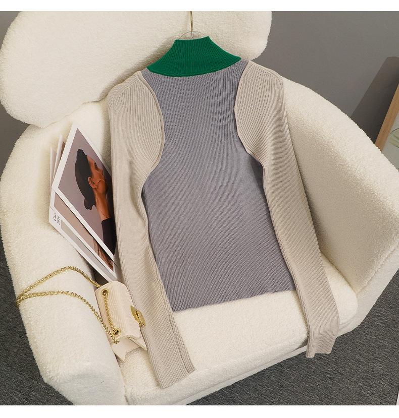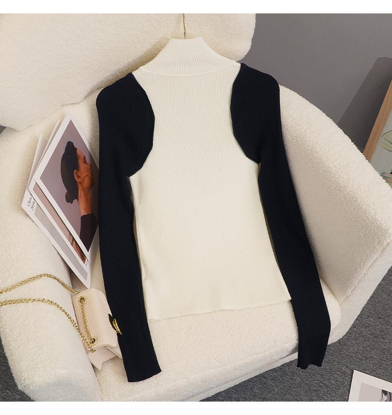 Nicho 2022 Otoño Nuevo Suéter de Punto de Moda Versátil Cuello Alto Costuras Ajustado para Mujer