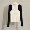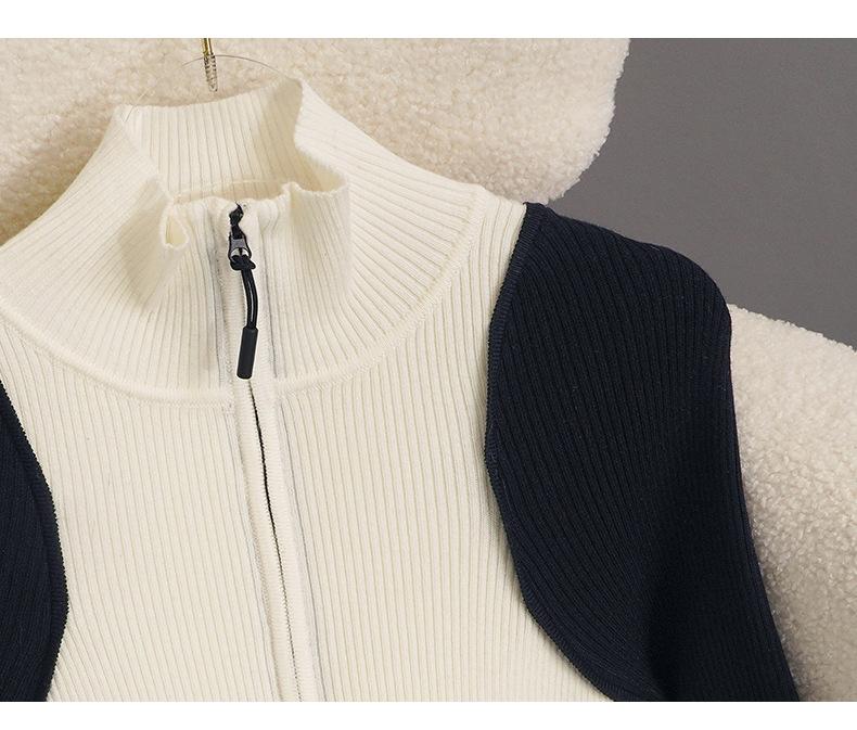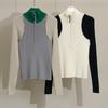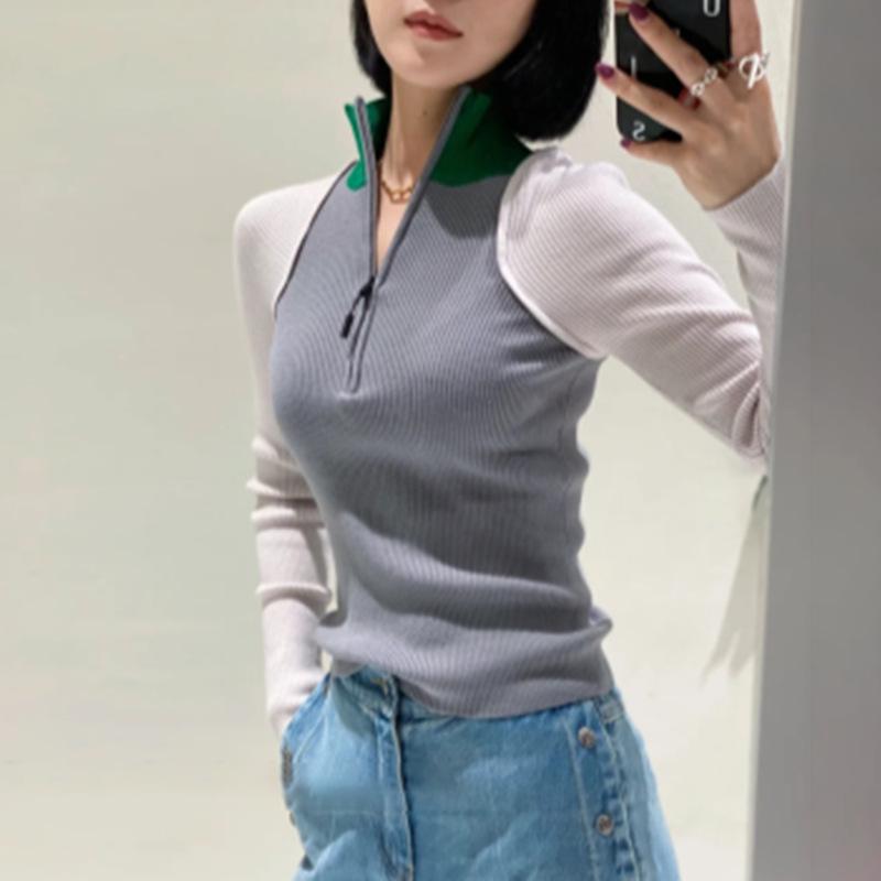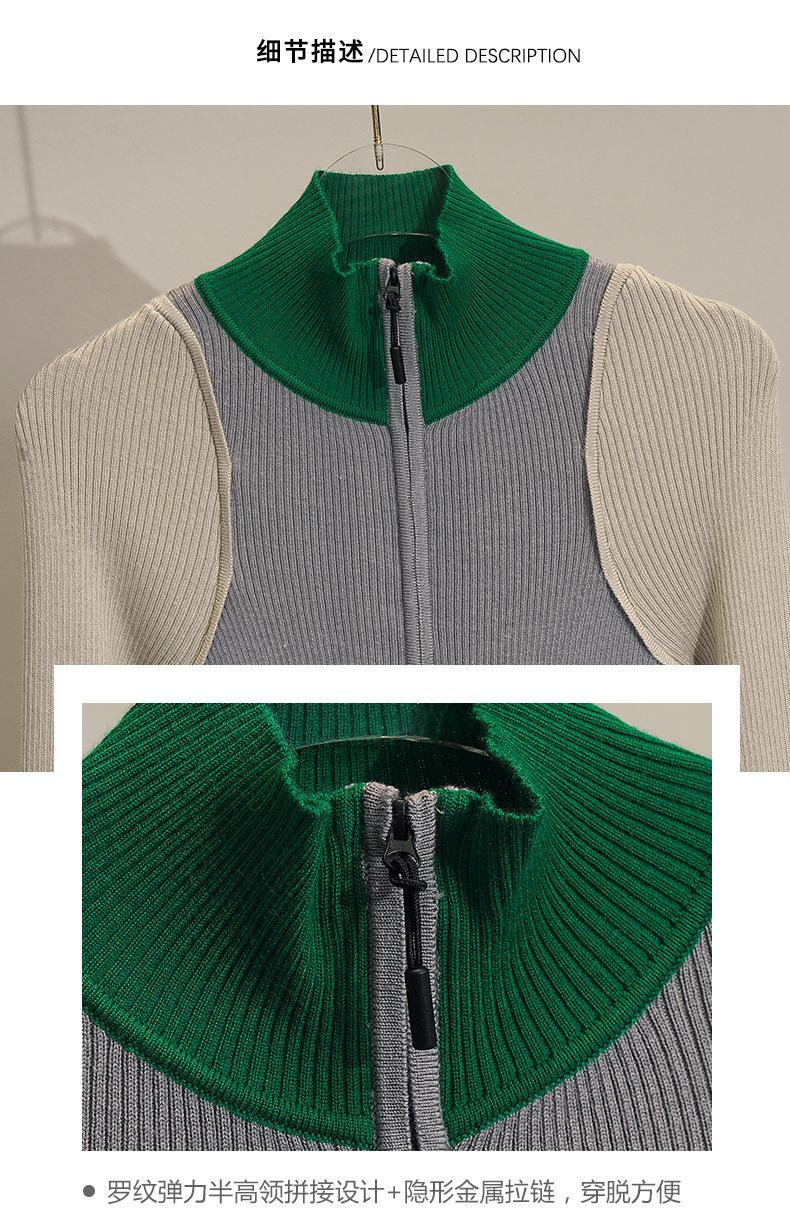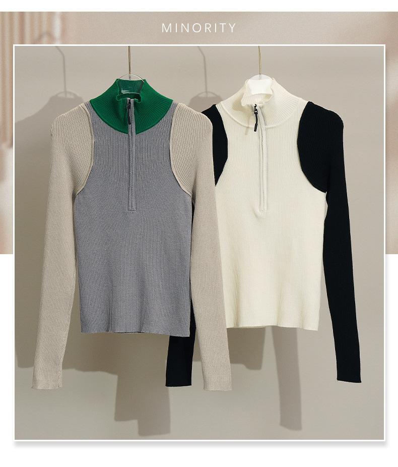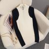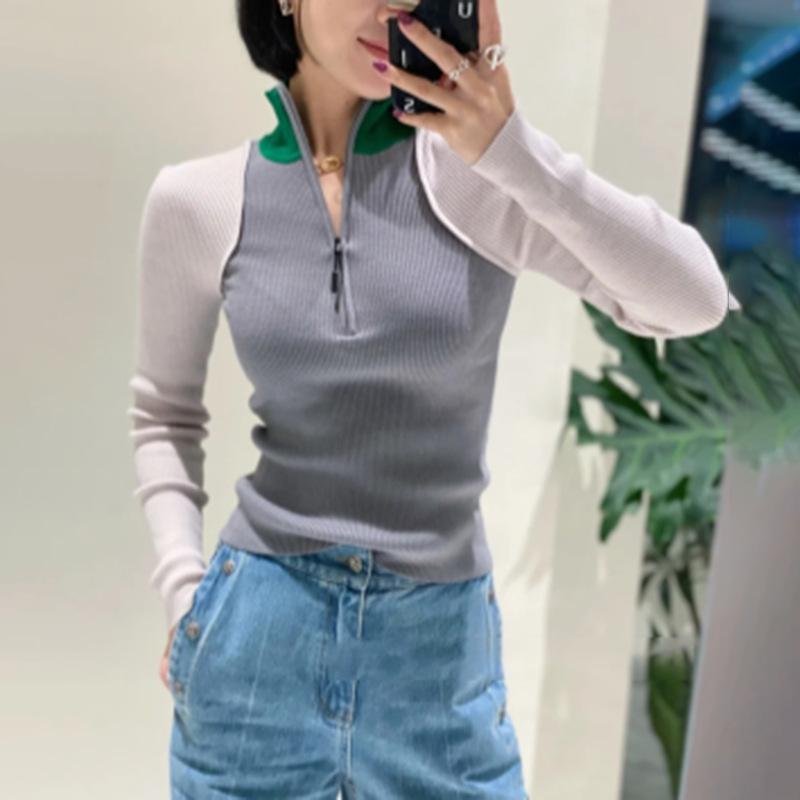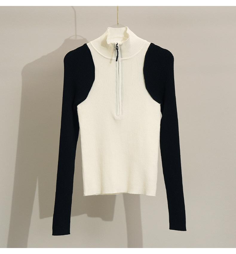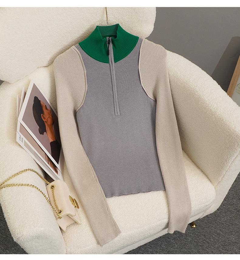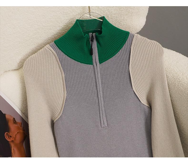 Nicho 2022 Otoño Nuevo Suéter de Punto de Moda Versátil Cuello Alto Costuras Ajustado para Mujer