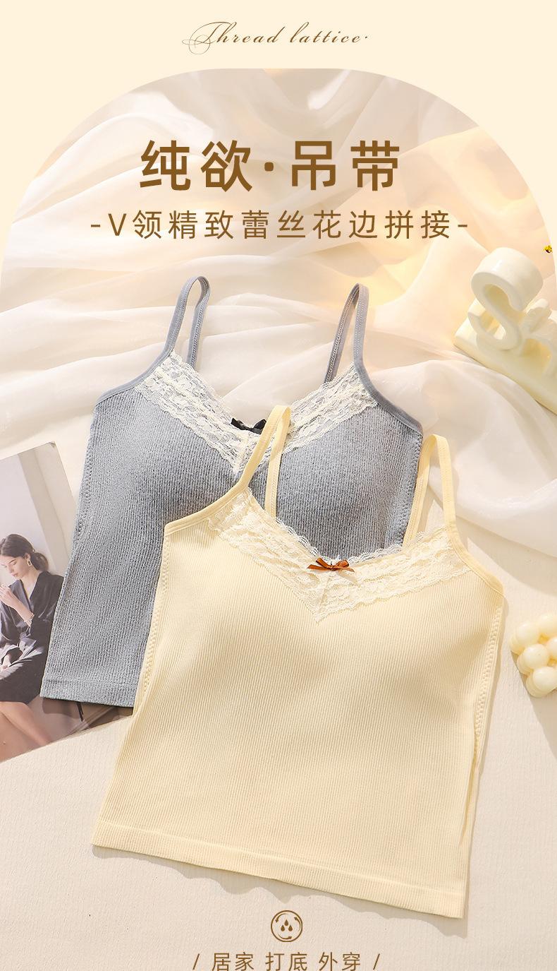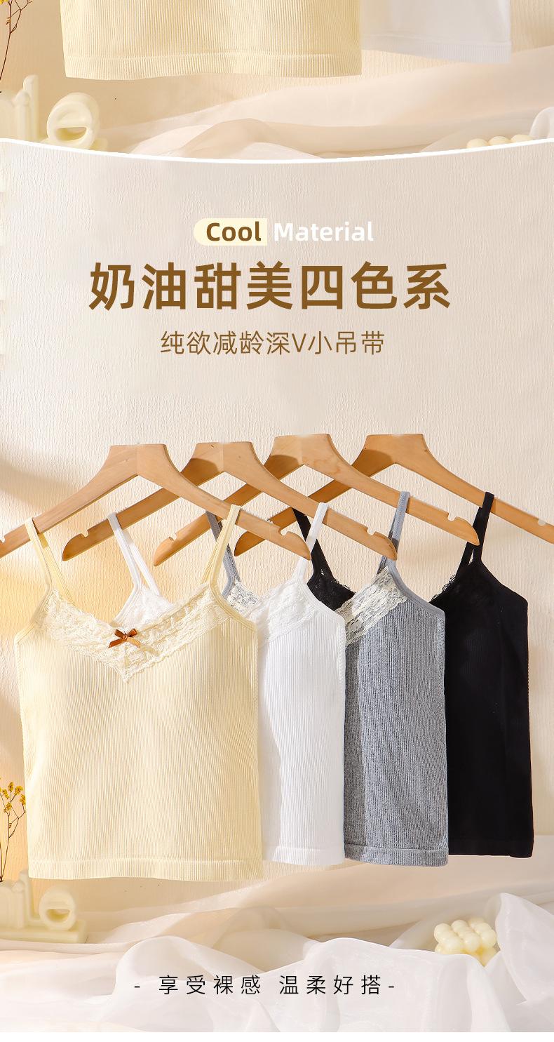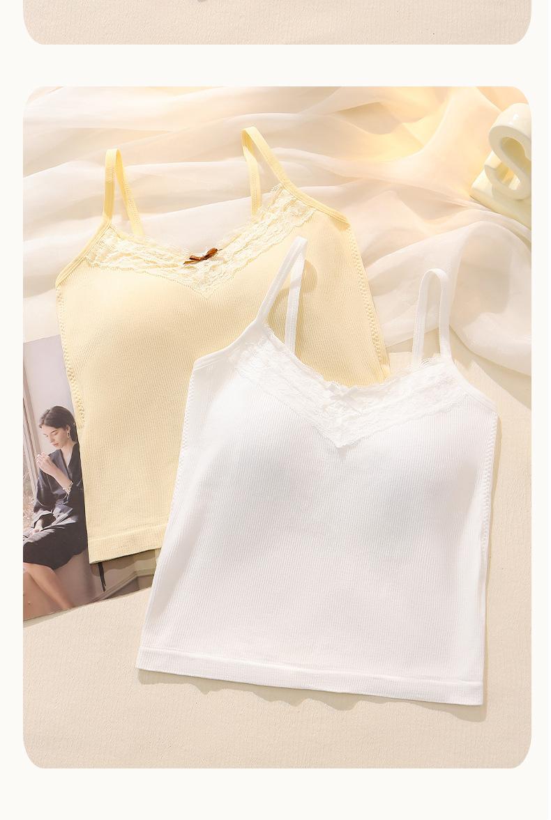Encaje Espalda Descubierta Ropa Interior de Mujer Primavera 2024 Nuevo Top Corto Camisola sin Mangas Ajustado