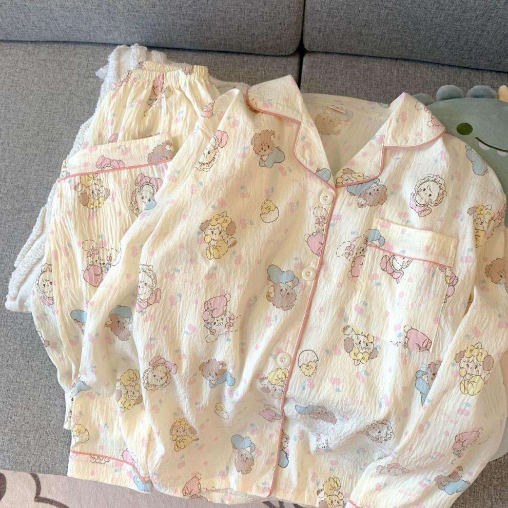 Pijama de Algodón Nube para Fiesta de Cachorros para Mujer Primavera y Otoño Manga Larga Pantalón Lindo Ropa de Casa para Estudiantes Conjunto de Dos Piezas Se Puede Usar Afuera
