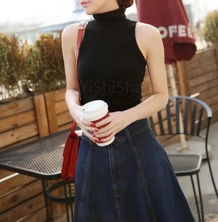 Chaleco Corto de Cuello Alto sin Mangas para Ropa Interior y Exterior, Top Ajustado de Cintura Alta que Deja al Descubierto el Ombligo, Elegante Camisa Básica con Tirantes de Jazz para Mujer