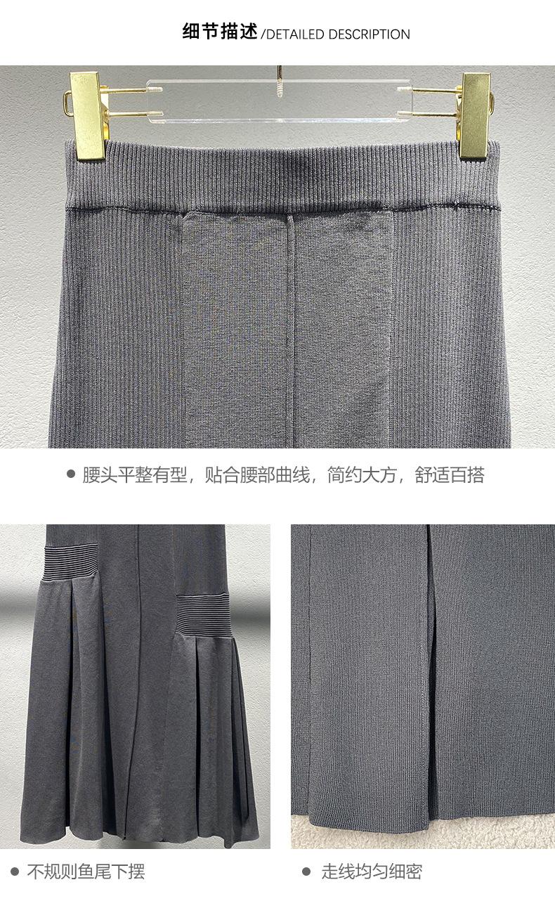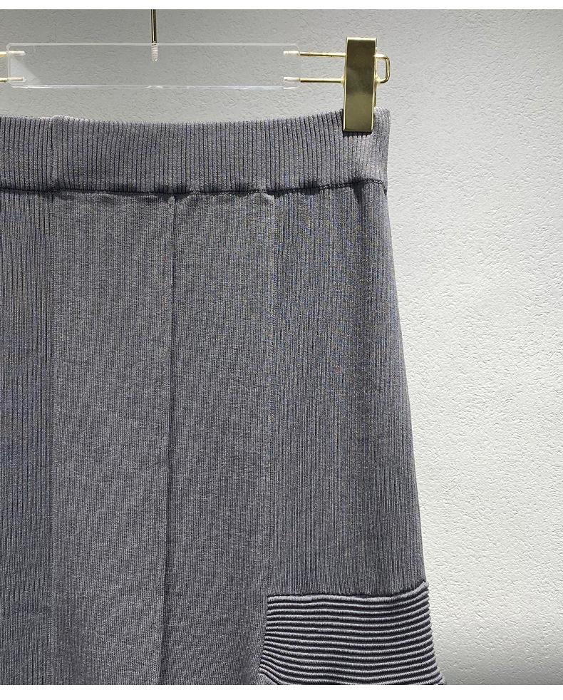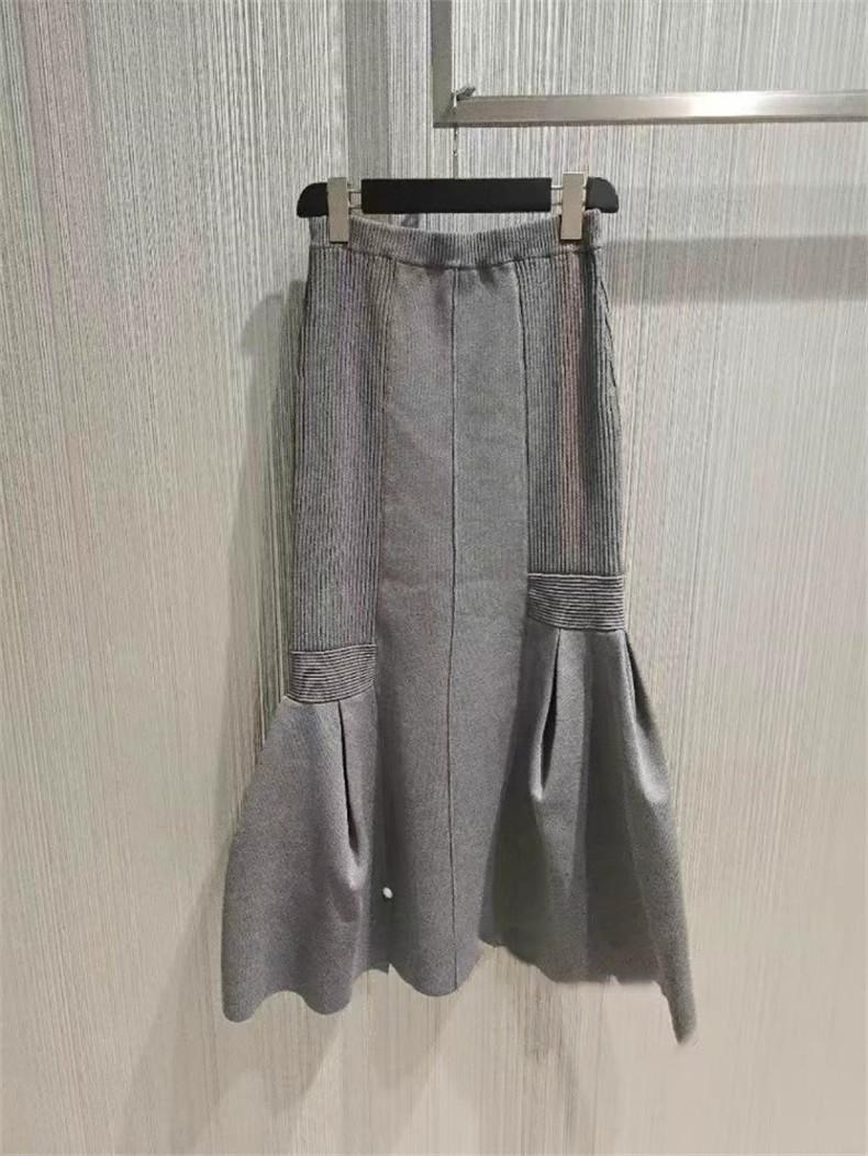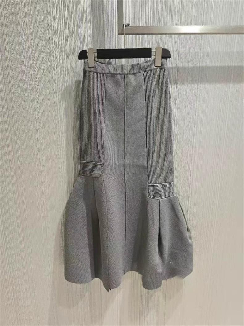 Ahora 2025 Primavera y Verano Nueva Falda Nicho Gris de Cintura Alta con Cola de Pescado Falda Irregular a Rayas para Mujer