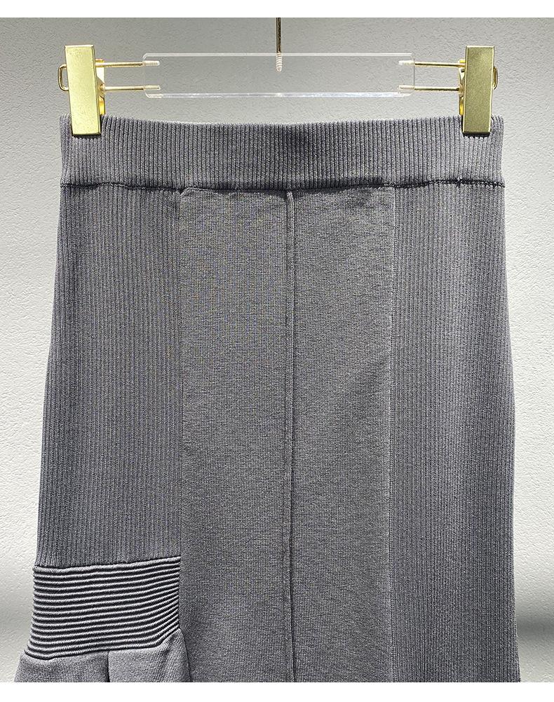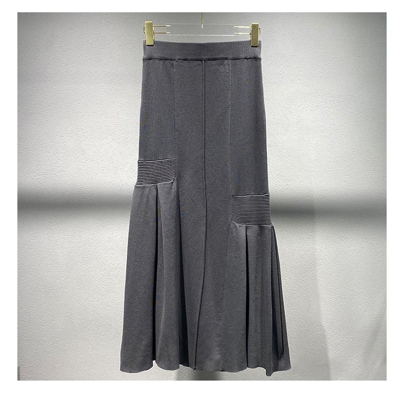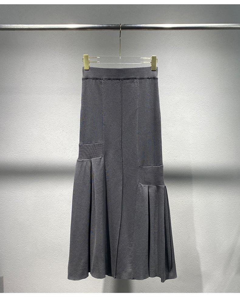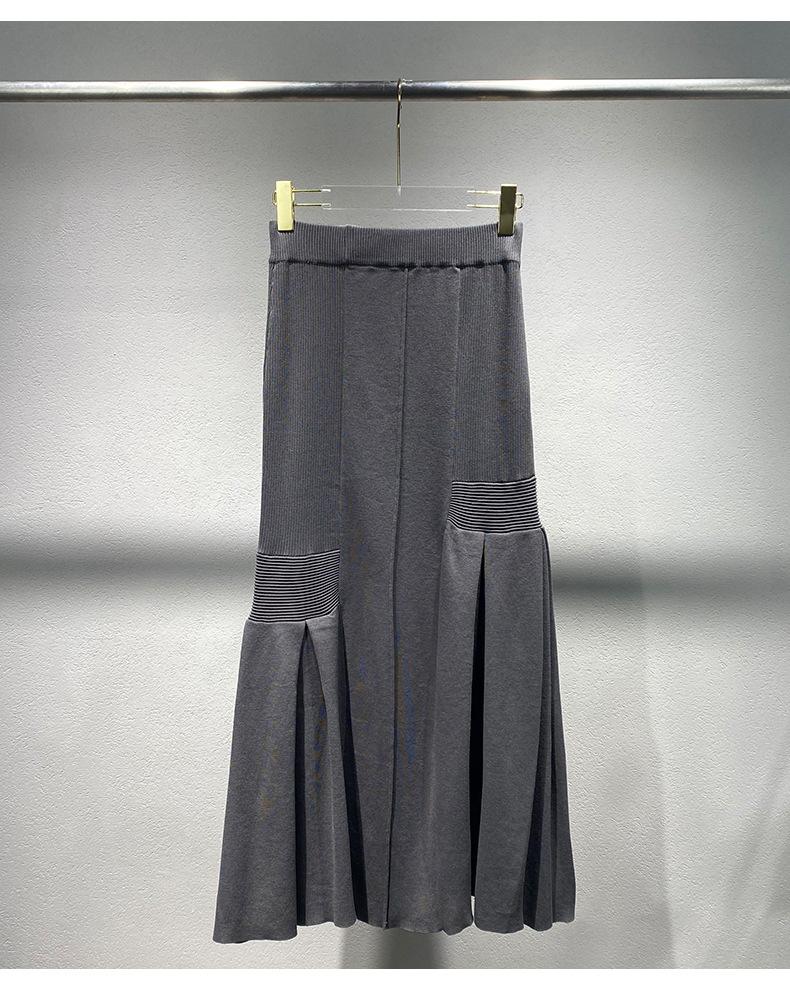 Ahora 2025 Primavera y Verano Nueva Falda Nicho Gris de Cintura Alta con Cola de Pescado Falda Irregular a Rayas para Mujer