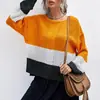 Bai Fen Zhi Yi Amazon Transfronterizo Otoño e Invierno Europeo y Americano Casual Holgado Suéter Cuello Redondo Manga Larga Tejido de Bloques de Color