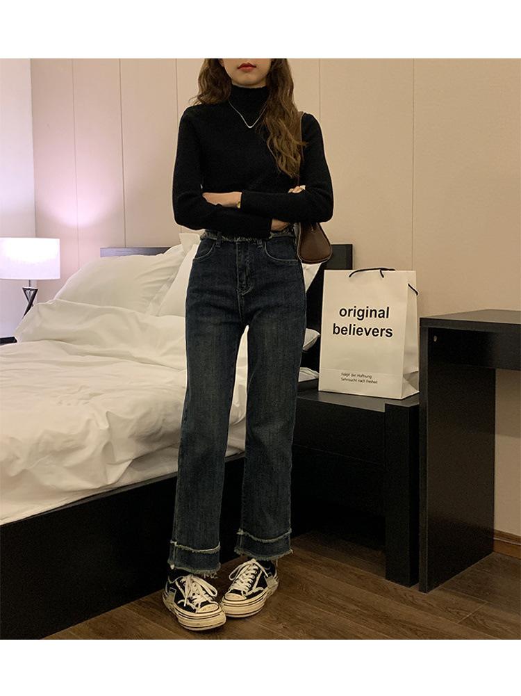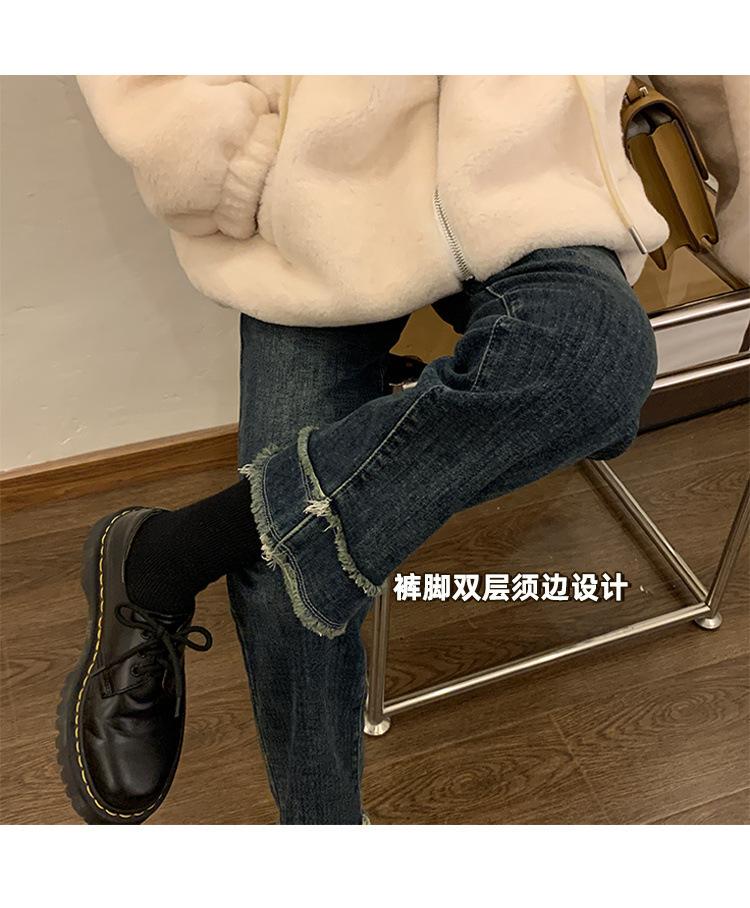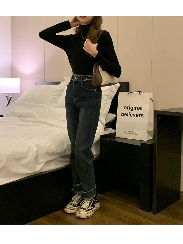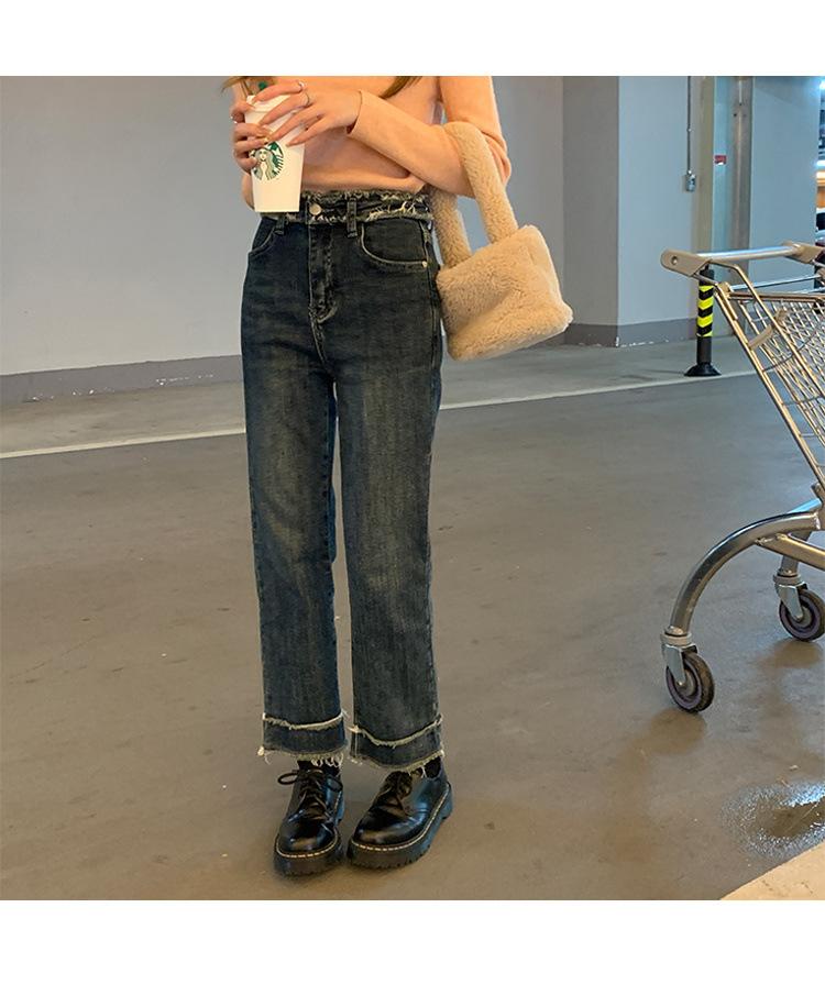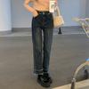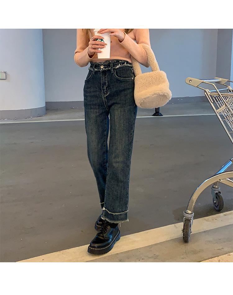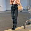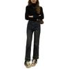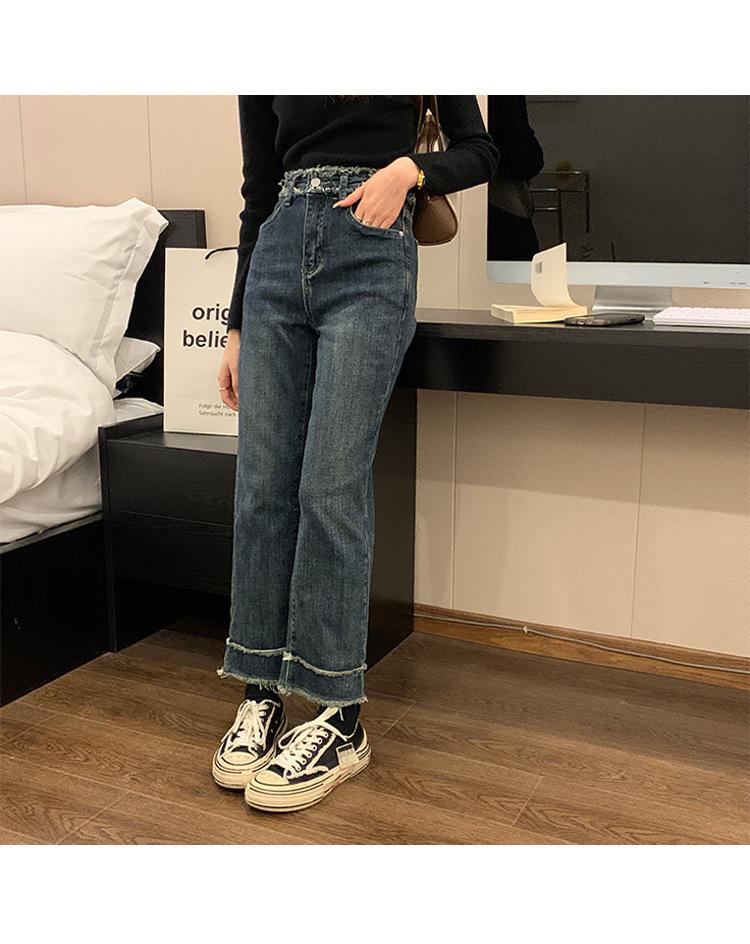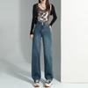 Jeans Rectos de Diseño Urbano de Vanguardia para Mujer, Rectos, Otoño e Invierno, Cintura Alta, Adelgazantes, Slim-Fit, Elásticos, Frescos, Recortados, Pantalones de Moda